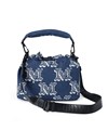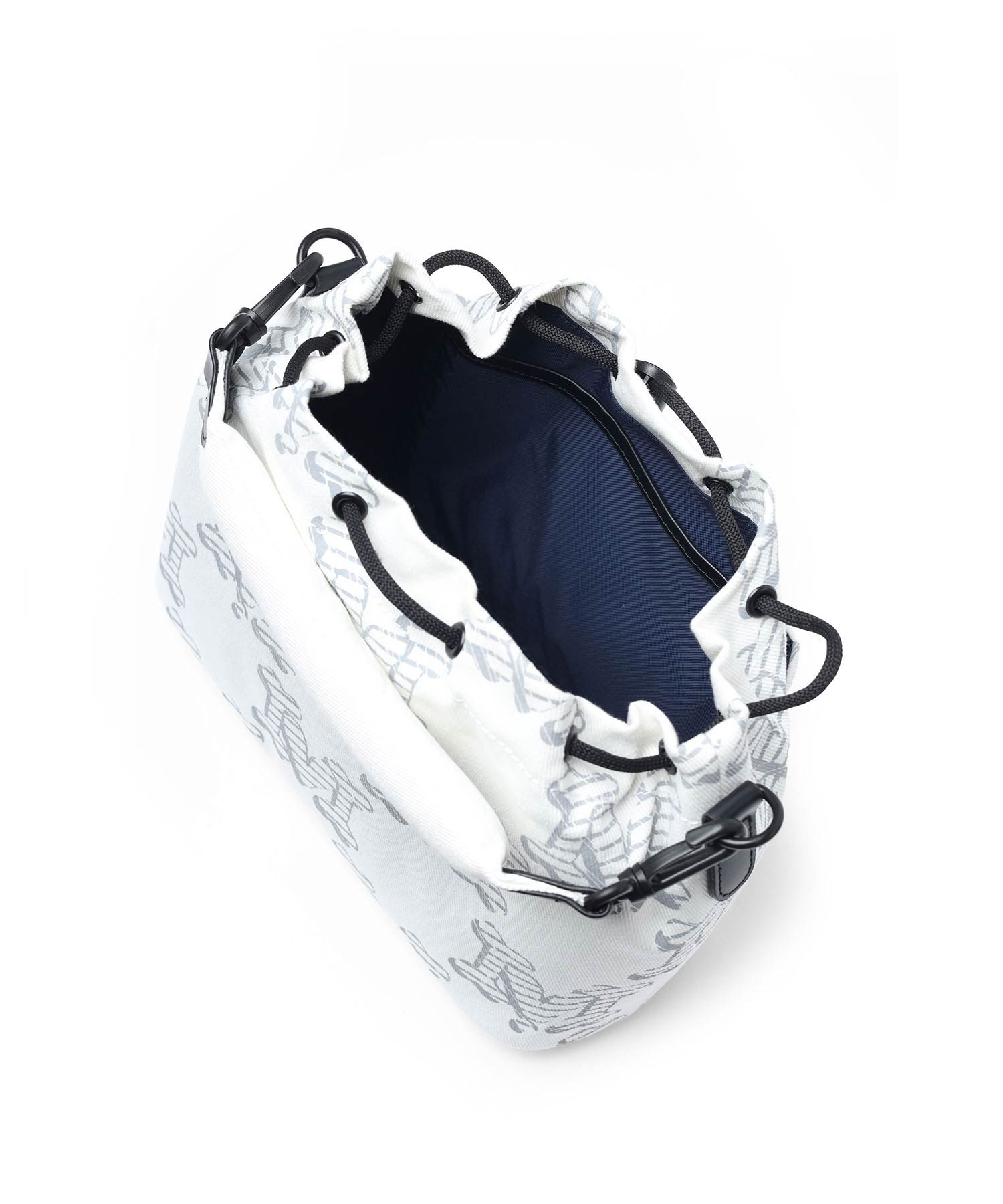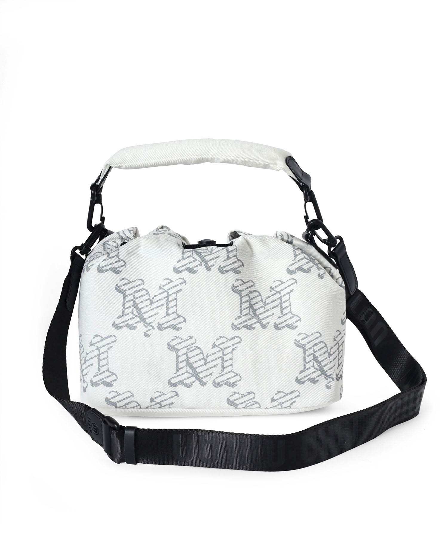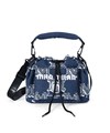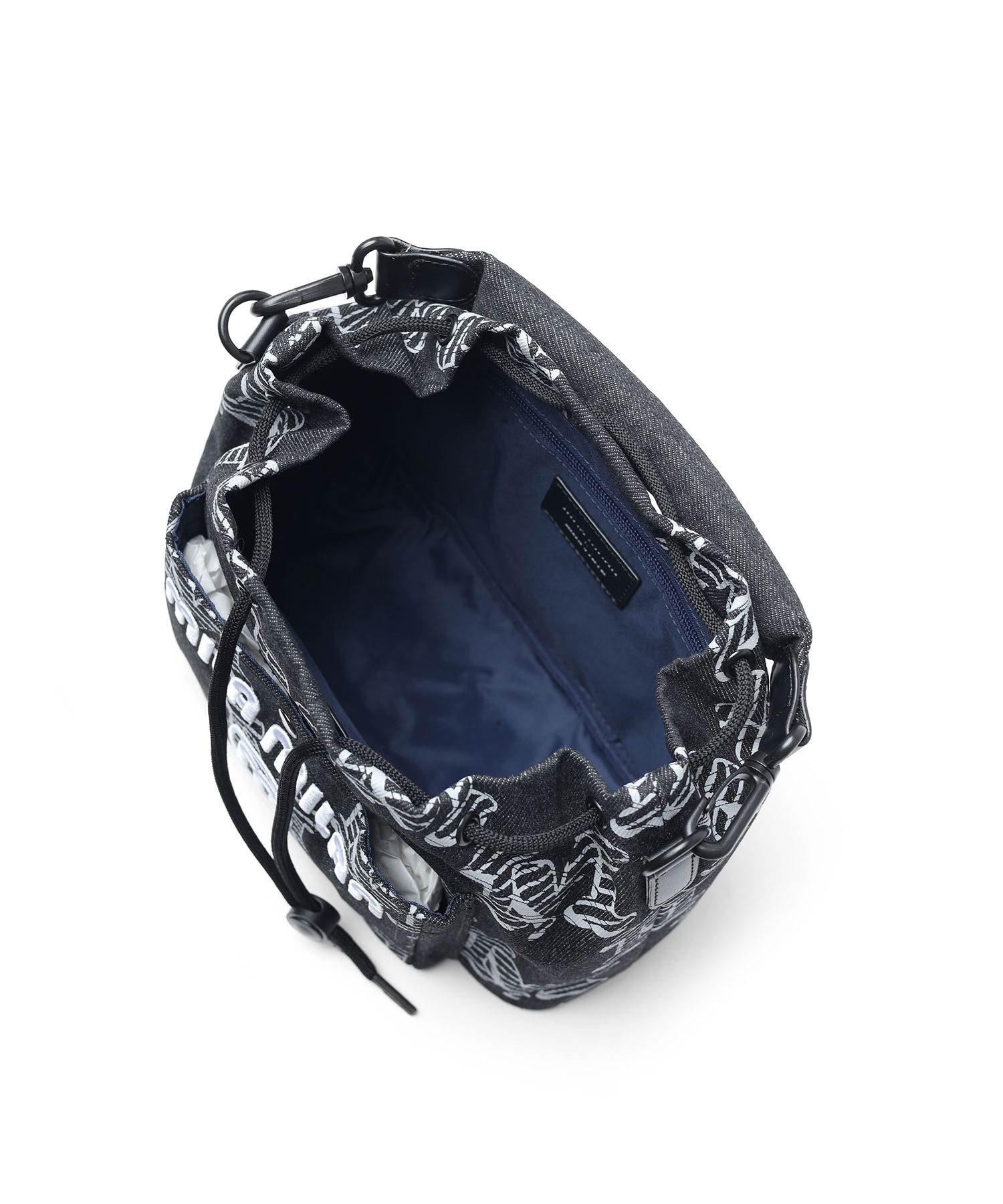 ミラミランの軽量デニムショルダーバッグ。口を絞る巾着タイプで手持ちも斜め掛けも可能です。洗いをかけて少しエイジングがかったような生地に、ジャガード風にプリントしたブランドモノグラム柄がポイントです。ポリエステル混紡素材なので、とても軽量に仕上がっています。