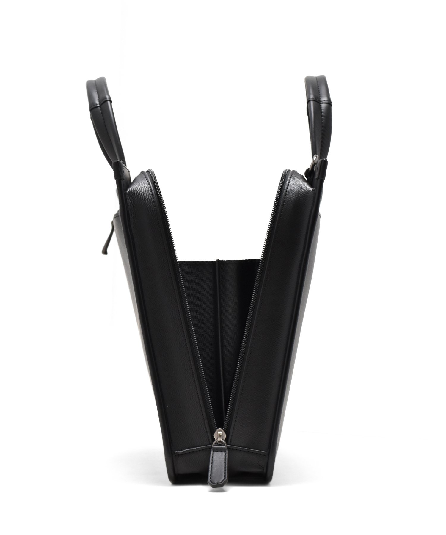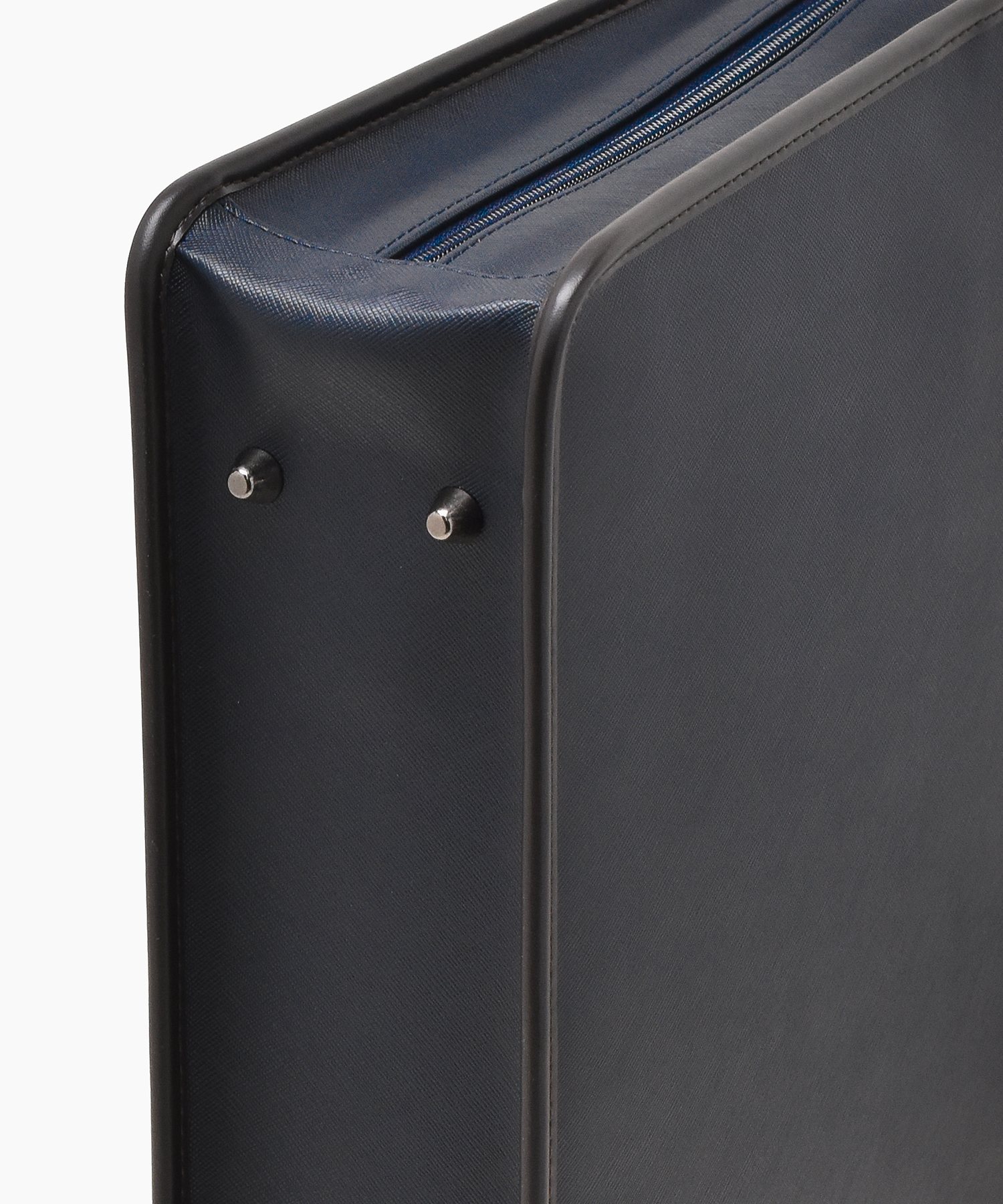 本体素材にはキズが付きにくく撥水力のある、革のような雰囲気の角シボ加工を施した、ポリ塩化ビニルを使用しています。ハンドルやポイントとなる部分にはソフト牛革を使用し、心地よい手触りにこだわりました。