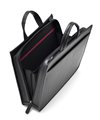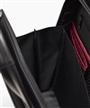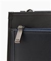 背面あおりポケットには、すぐに取り出したい小物の収納に便利です。オープンポケットが2つ、ペンホルダーが2つ備わっています。また、各ポケットが見えやすいようにワインカラーのグログランテープを使用しています。