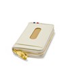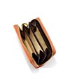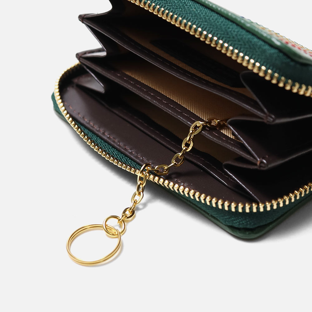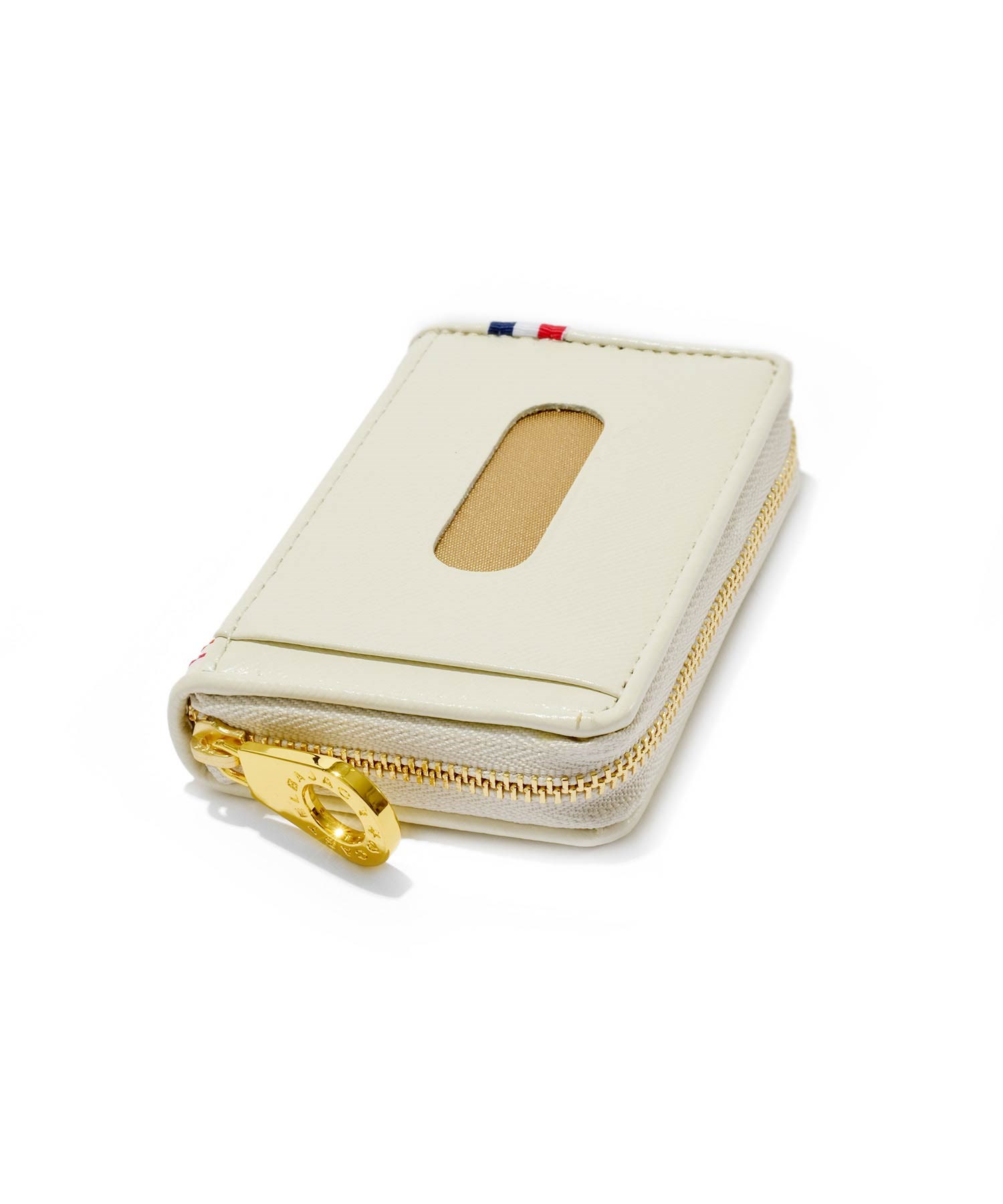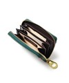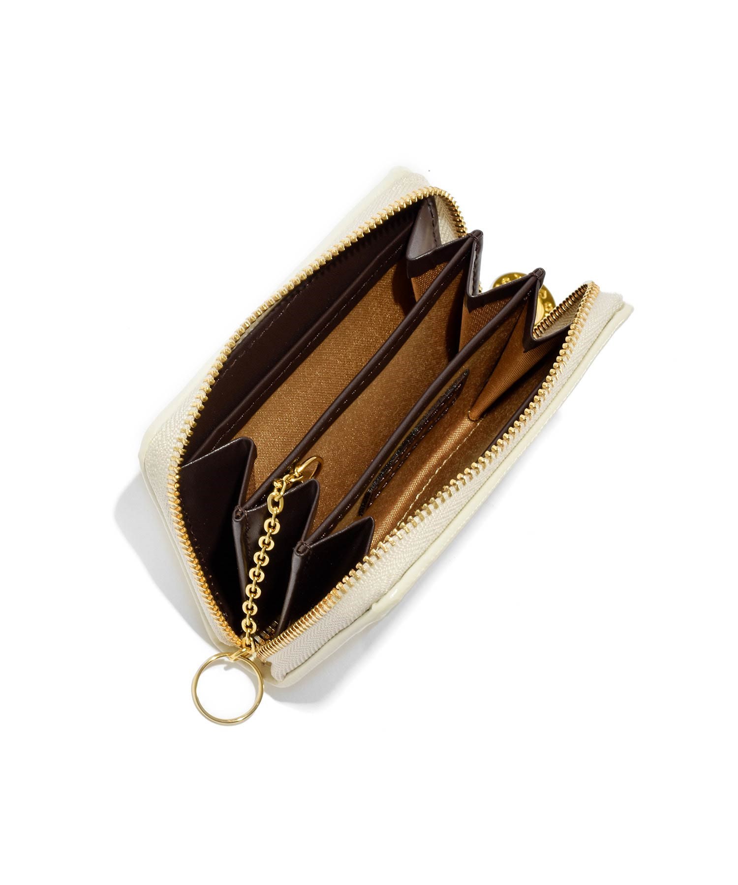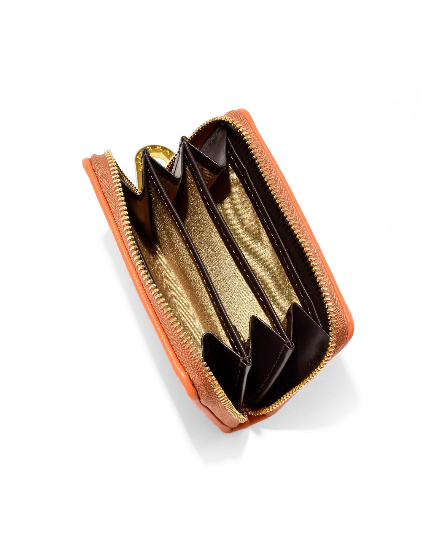 小銭入れ内は3層に分かれており、両サイドにはカードポケットがあります。中央には取り外し可能なキーチェーンが付いています。小銭入れ内側のサテン生地にはすべてのカラーでゴールド色使用し、ユニセックスな感覚に仕上げています。