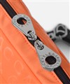 本体素材は軽くて使いやすいソフトなナイロン生地を使用しています。この生地は二重プリントの透かしを入れた本体全体を覆う大きなロゴが特徴です。ロゴの背面には上品に光るモノグラムのプリントが施されており、見る角度によって表情を変えることができます。