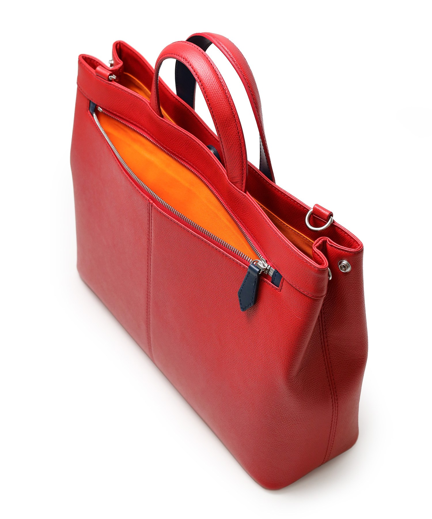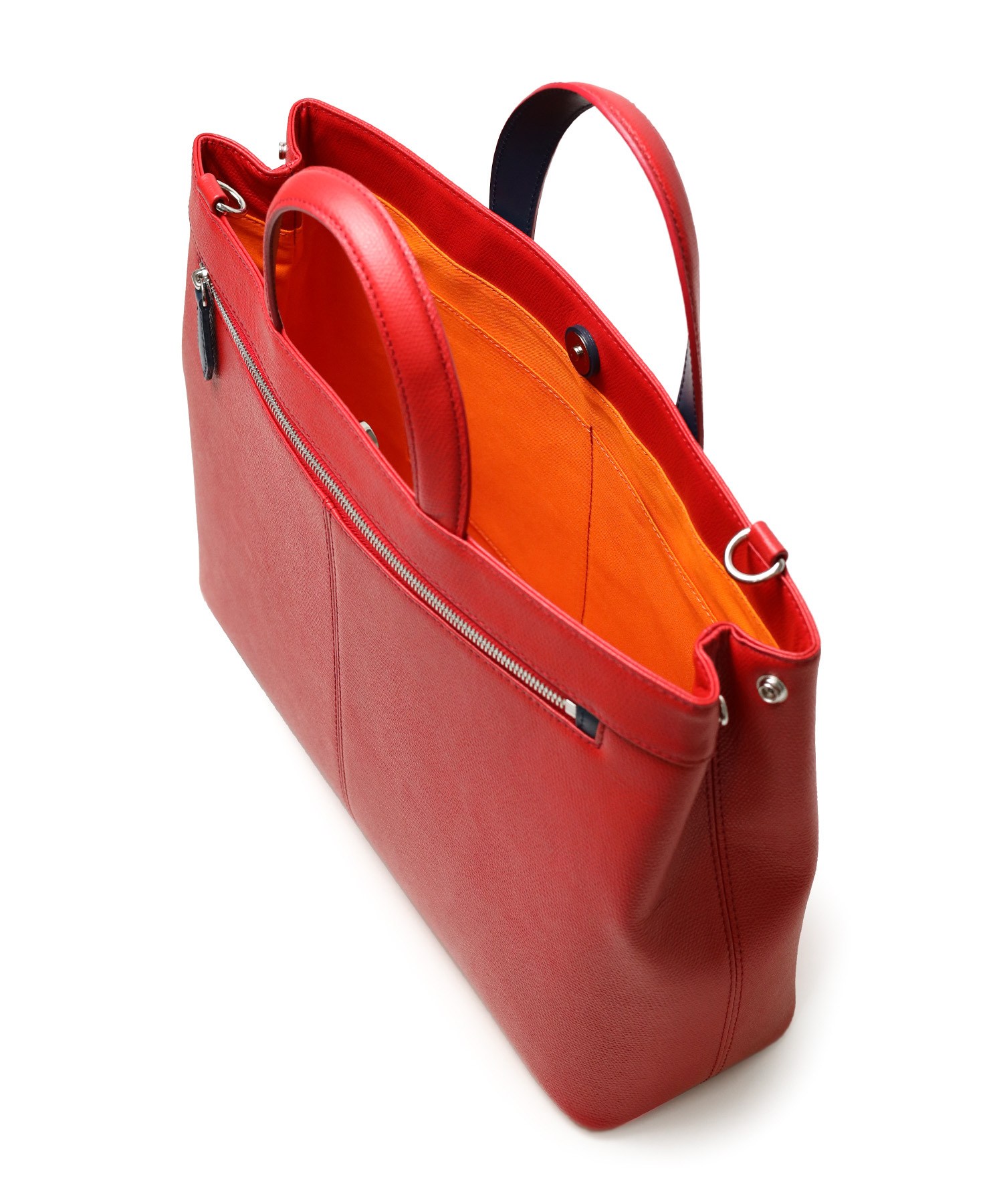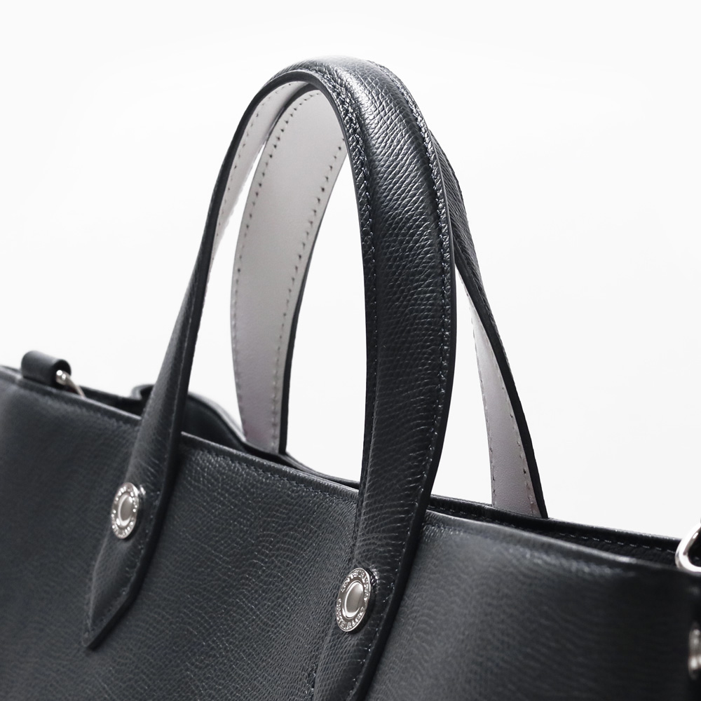 ハンドルは前後が重なるよう設計されており、手に馴染みが良く大変持ちやすくなっています。また、付属のショルダーベルトを付けて2wayでお使いいただけます。 |