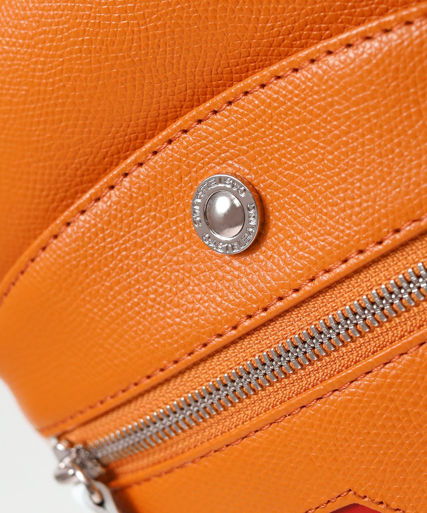 本体素材には良質な原皮を国内タンナーで丁寧に鞣し、長い時間をかけてミーリングを施したソフトな風合いの軽量オリジナル牛革を使用。カステルバジャックらしい発色で、堅牢度や耐光にも優れシンプルで高級感のあるエンボスは、傷が目立ちにくいのも魅力です。 |