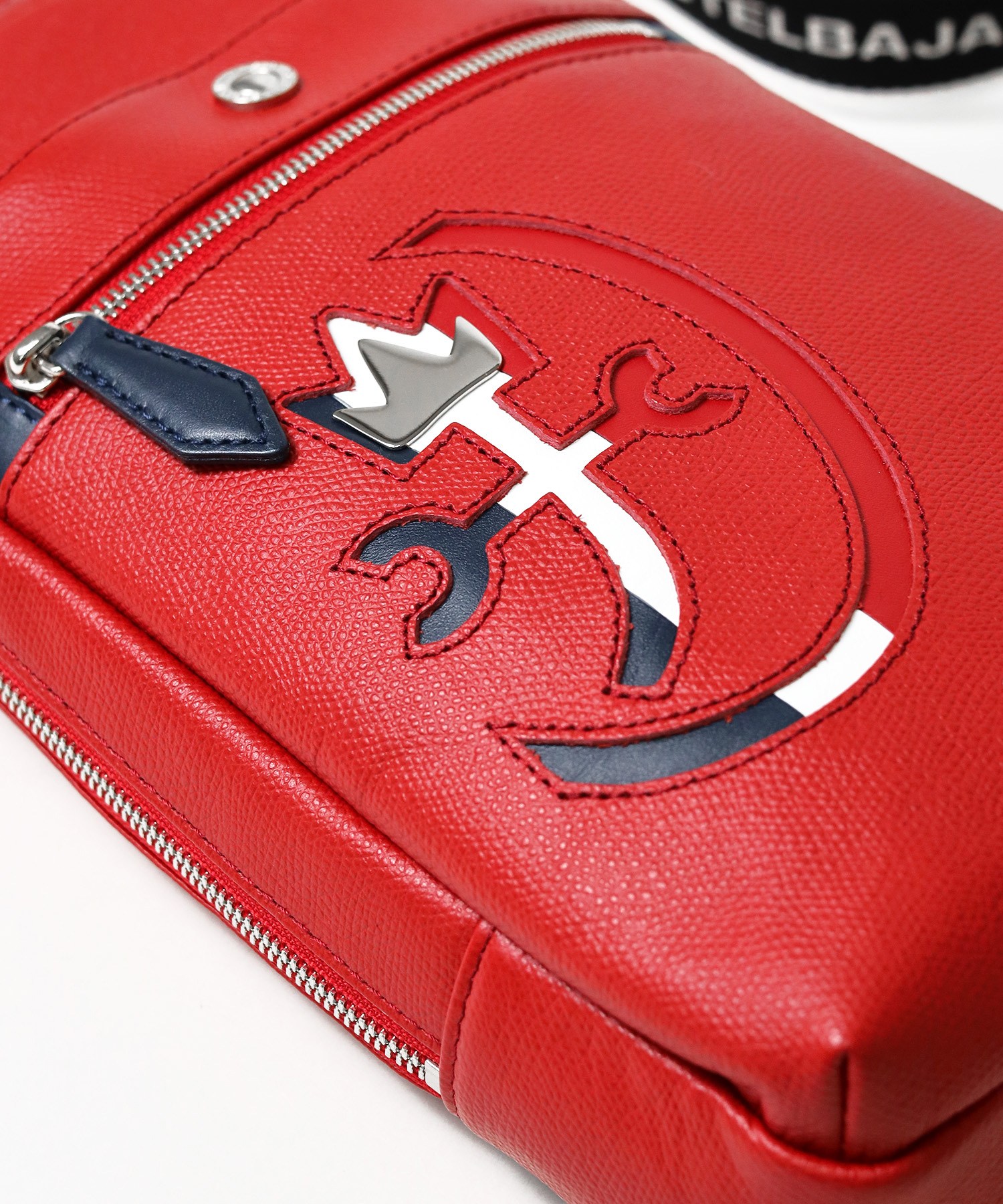 トリコロールカラーの家紋がポイント レザーワンショルダーバッグ