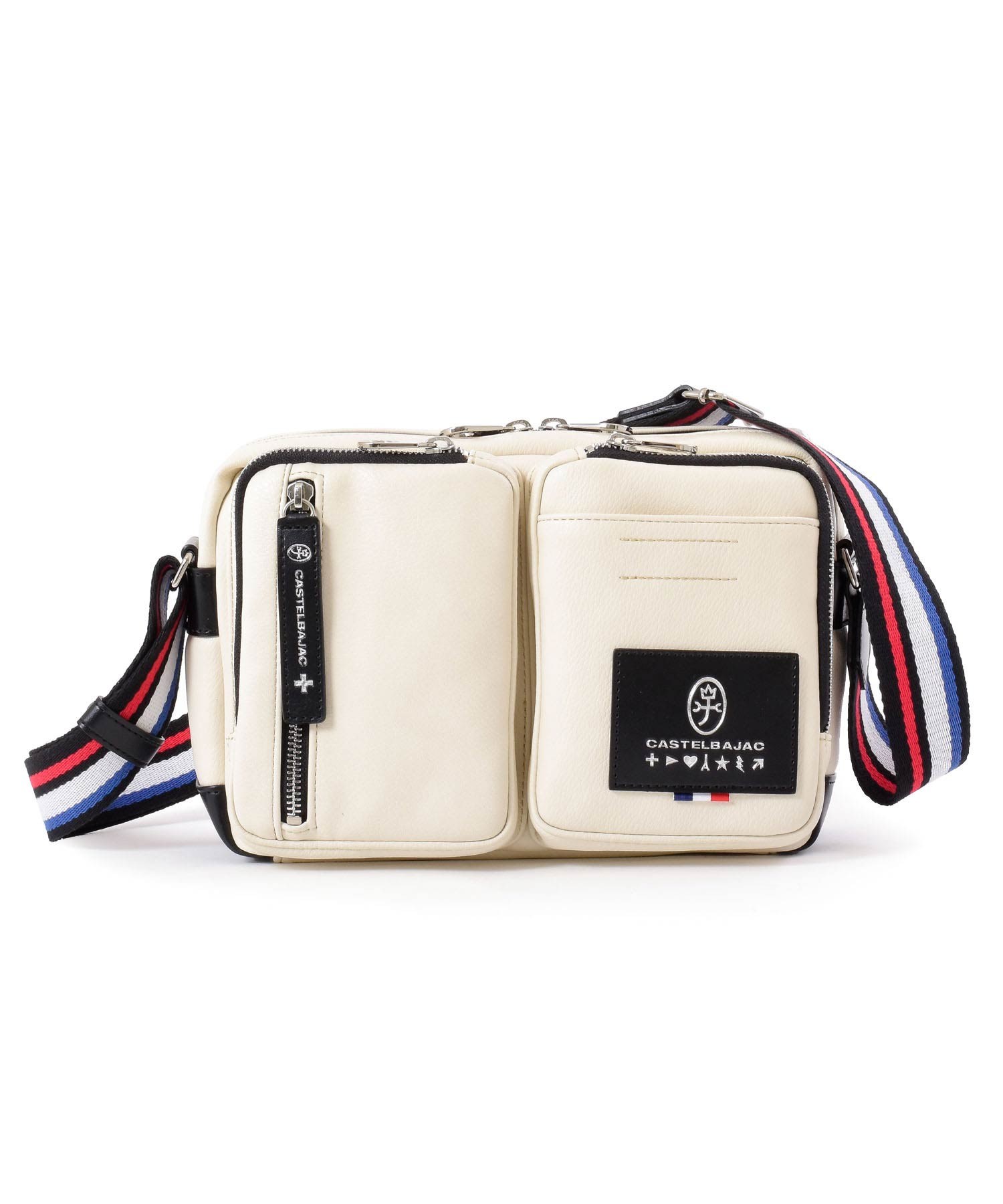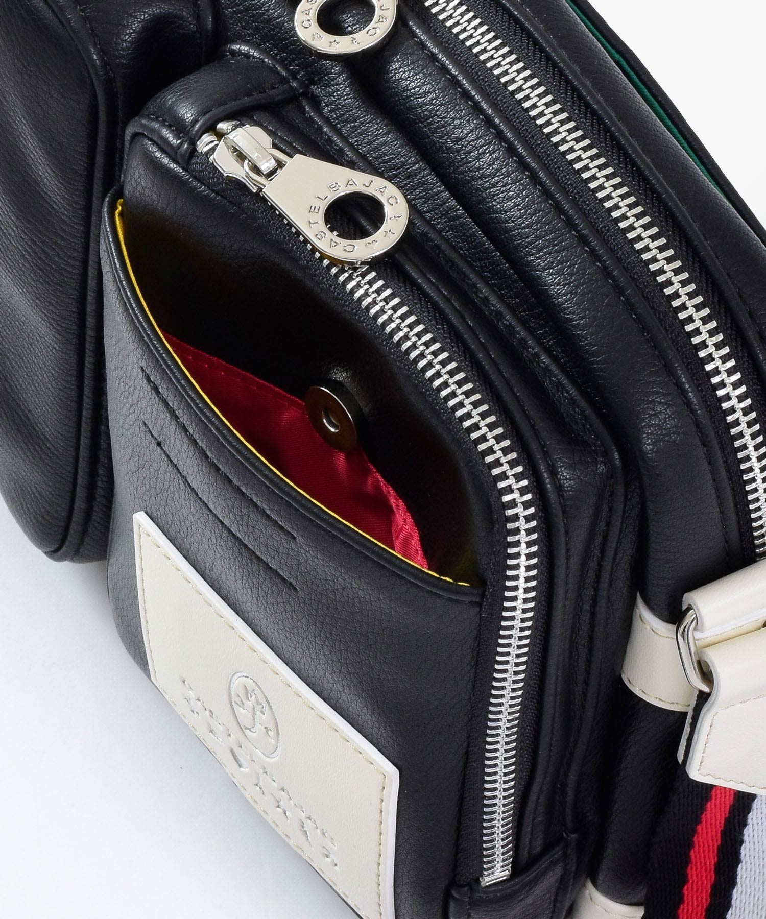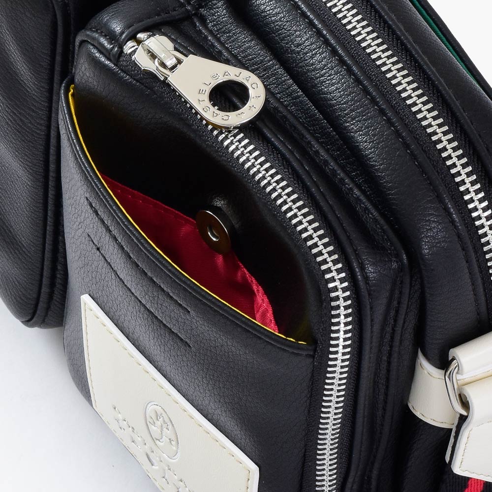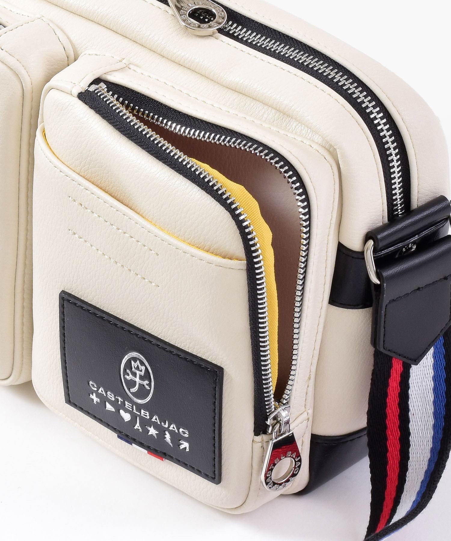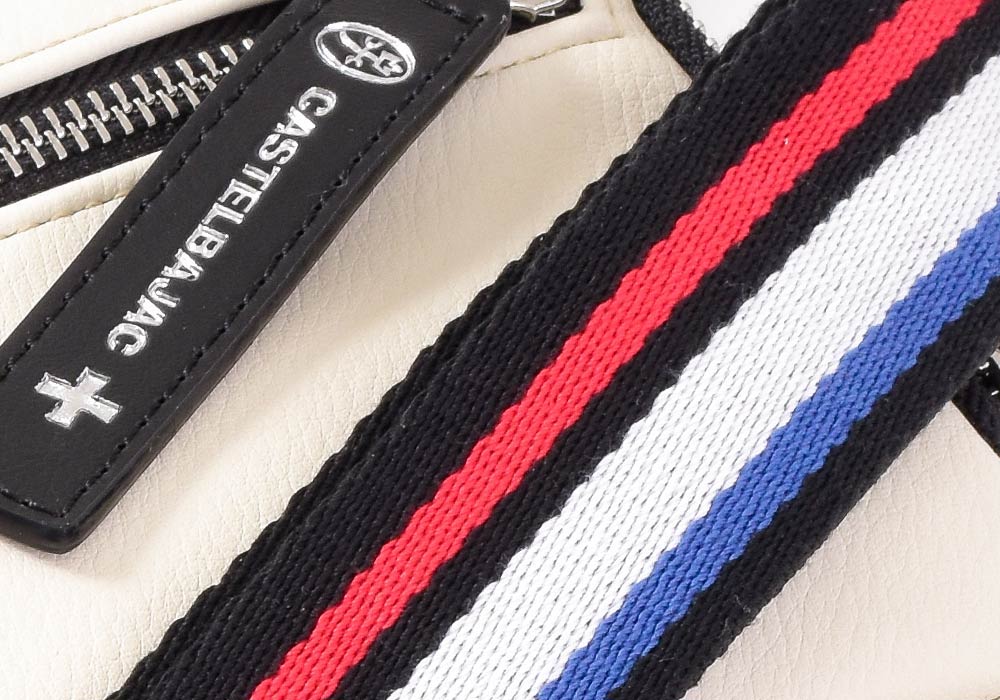 パッと目をひくロゴパッチは、本体カラーに合わせてクロとシロの2パターで表現しています。クロ、コンには「シロ」のロゴパッチを。シロとアカには「クロ」のロゴパッチでデザインのアクセントに。ブランドロゴとブランド名の他にも、CASTELBAJACのイメージ模様をあしらっておりちょっとした遊び心も忘れていません。