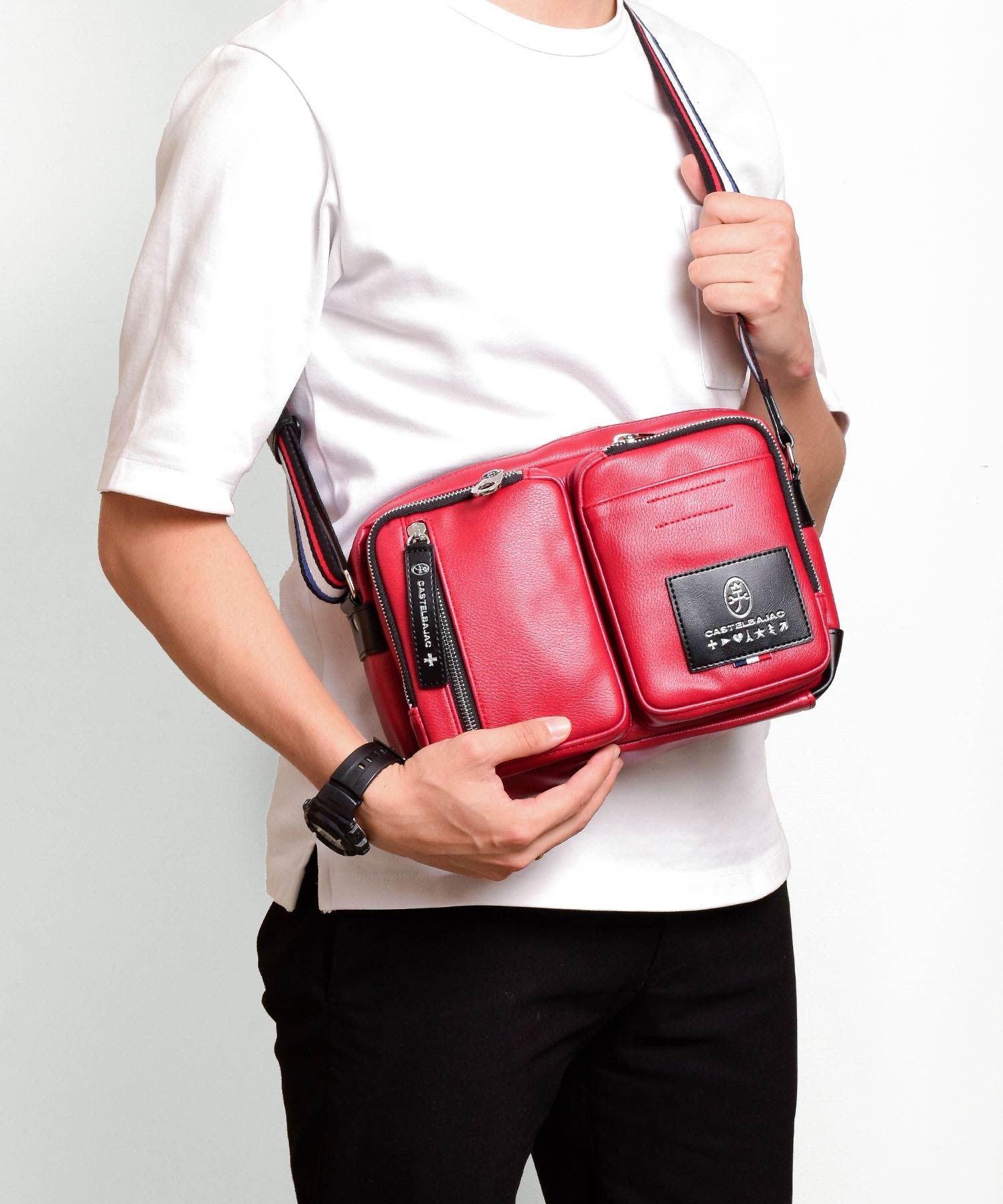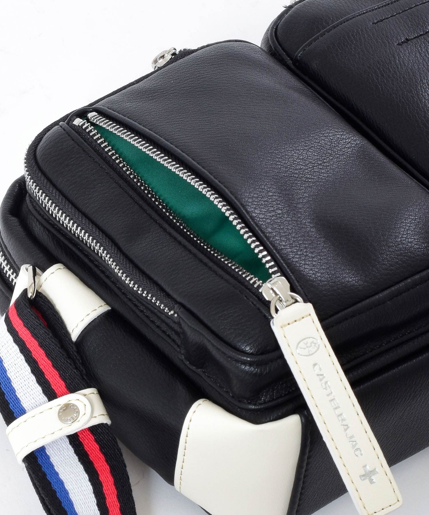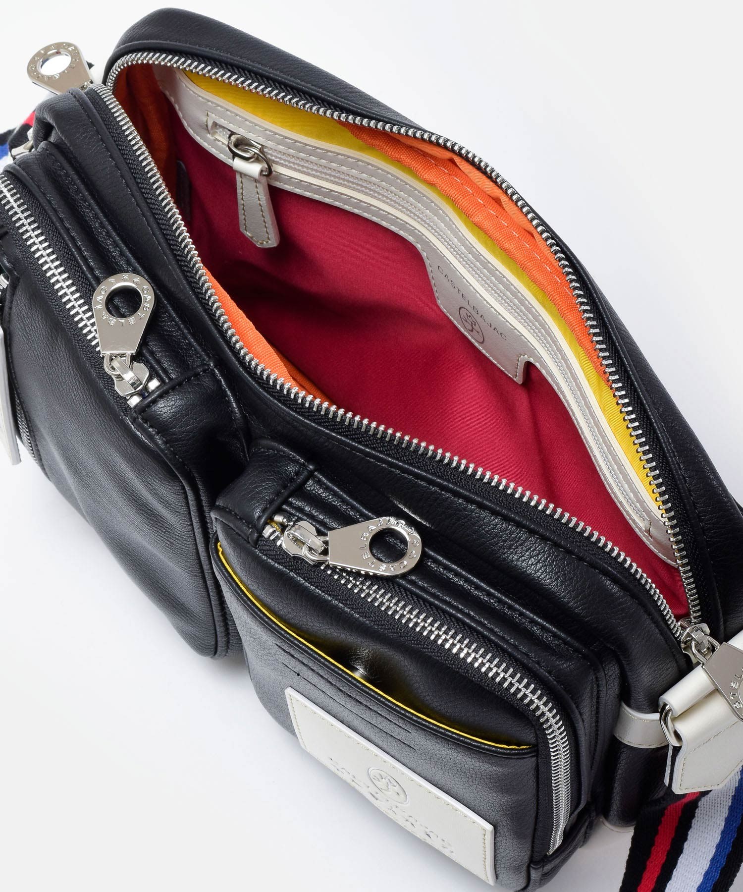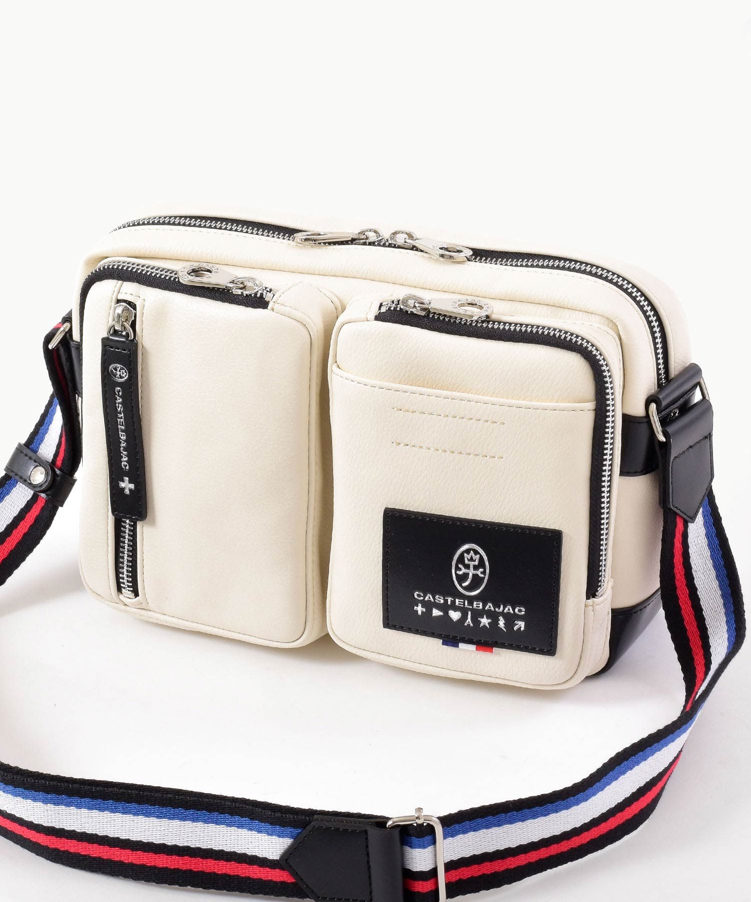パッと目をひくロゴパッチは、本体カラーに合わせてクロとシロの2パターで表現しています。クロ、コンには「シロ」のロゴパッチを。シロとアカには「クロ」のロゴパッチでデザインのアクセントに。ブランドロゴとブランド名の他にも、CASTELBAJACのイメージ模様をあしらっておりちょっとした遊び心も忘れていません。