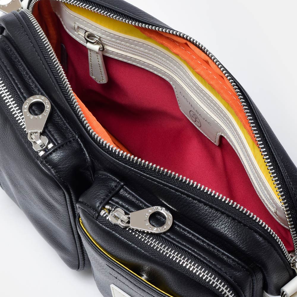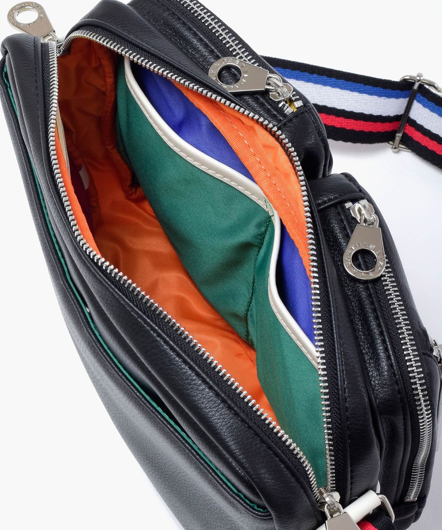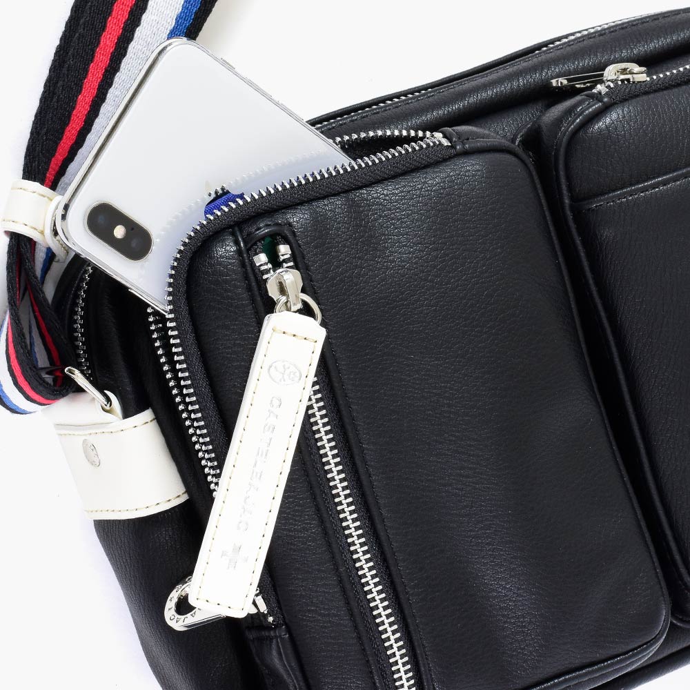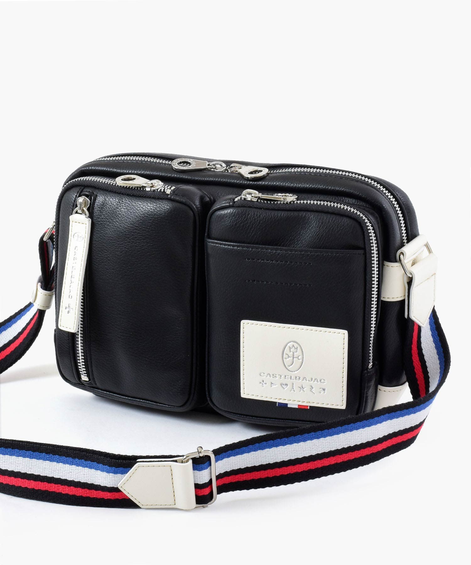 パッと目をひくロゴパッチは、本体カラーに合わせてクロとシロの2パターで表現しています。クロ、コンには「シロ」のロゴパッチを。シロとアカには「クロ」のロゴパッチでデザインのアクセントに。ブランドロゴとブランド名の他にも、CASTELBAJACのイメージ模様をあしらっておりちょっとした遊び心も忘れていません。