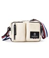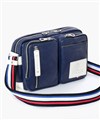 大き目のロゴパッチや引手、トリコロールカラーのショルダーベルトがブランドらしさを表現したカジュアルミニショルダーバッグ。収納機能に特化したデザインになっており、スポーツライクに仕上げています。レジャーでも大活躍すること間違いなしです。