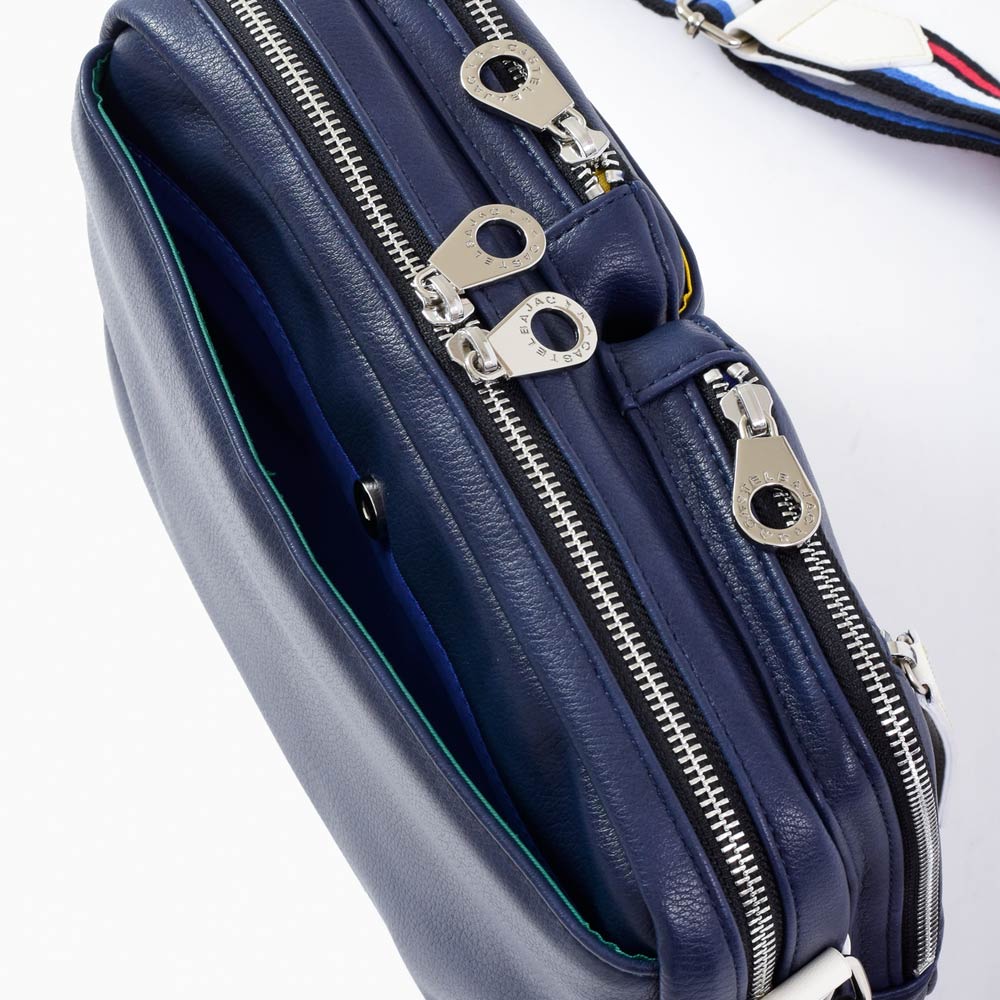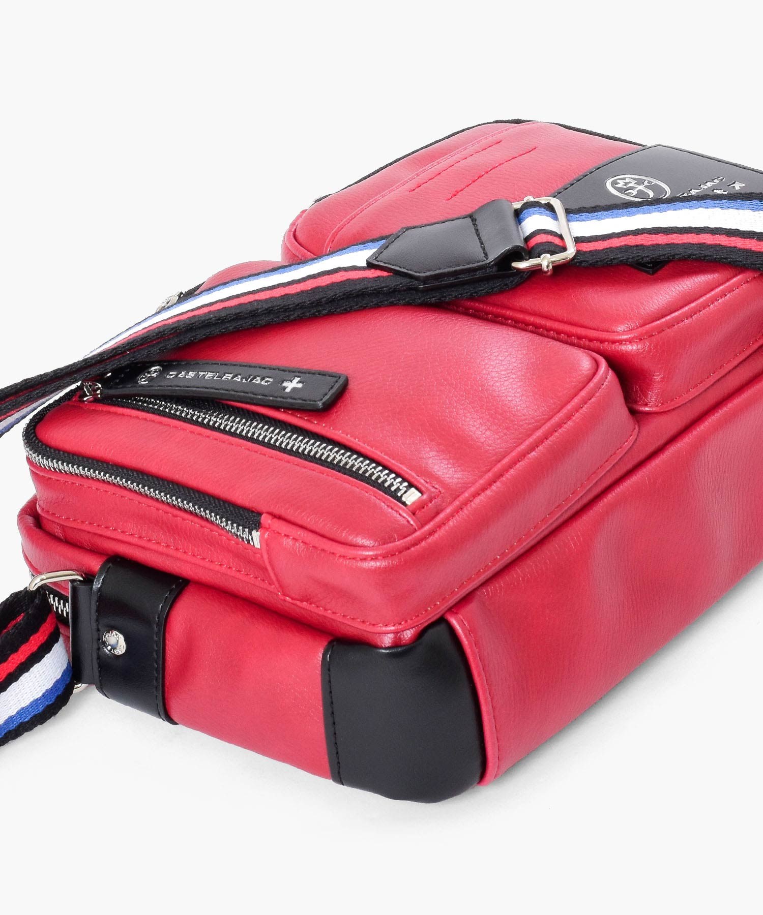 ショルダーベルトは、フランスの国旗をイメージし、アカ・シロ・アオの3色で表現しました。