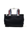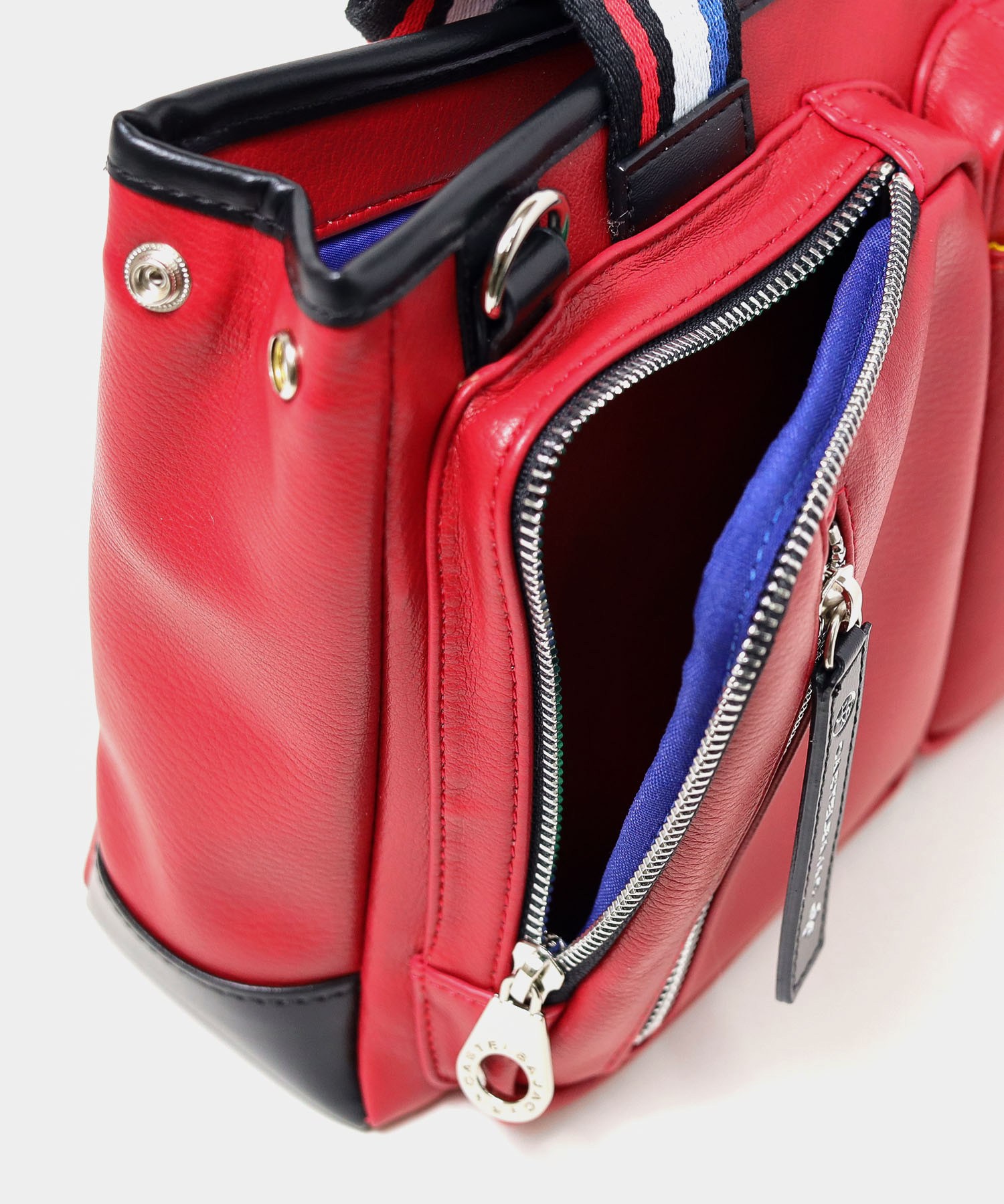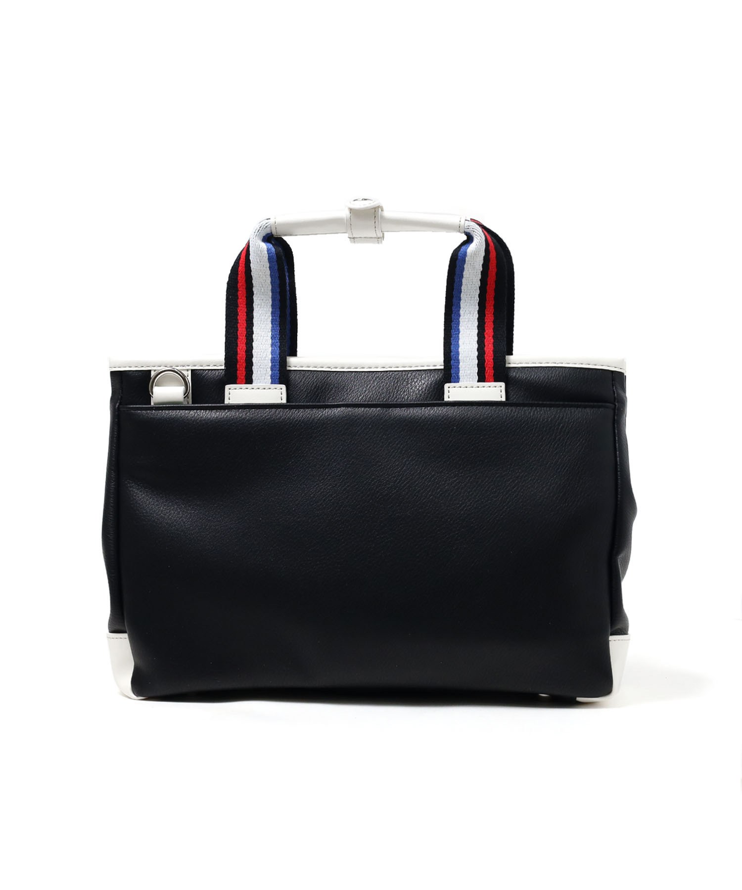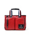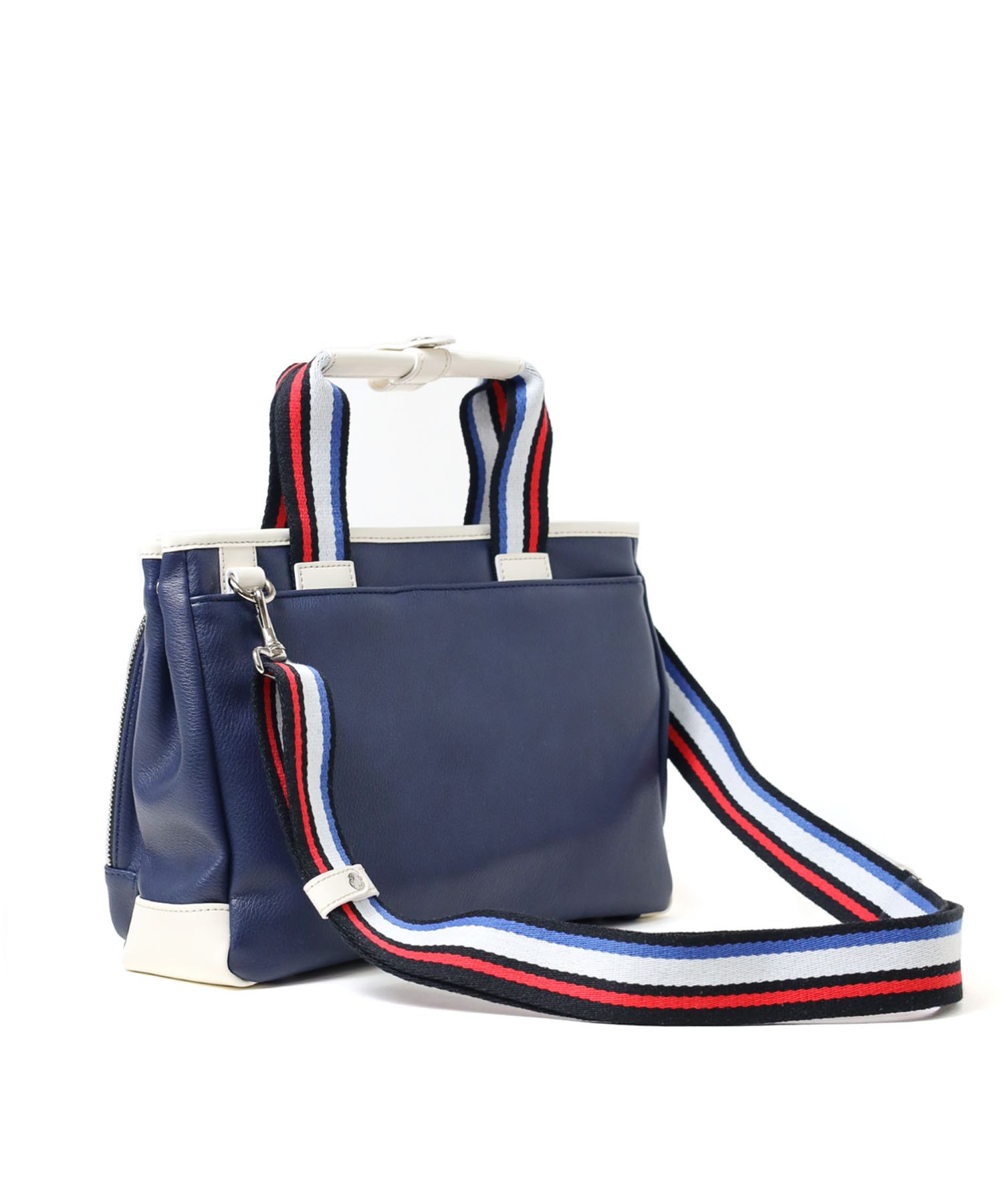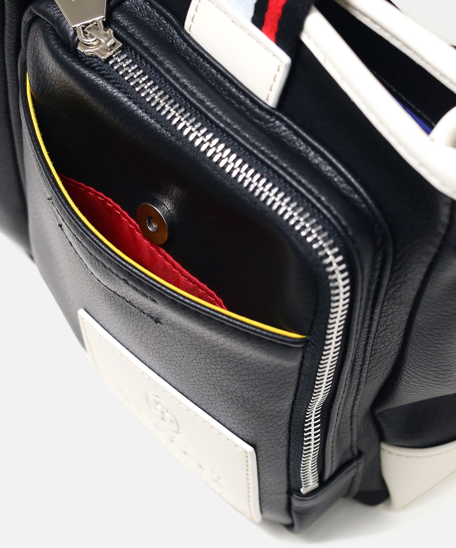 大き目のロゴパッチや引手、トリコロールカラーのショルダーベルトがブランドらしさを表現したカジュアルミニトートバッグ。収納機能に特化したデザインになっており、スポーツライクに仕上げています。レジャーでも大活躍すること間違いなしです。