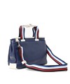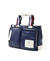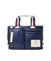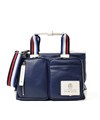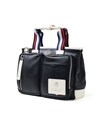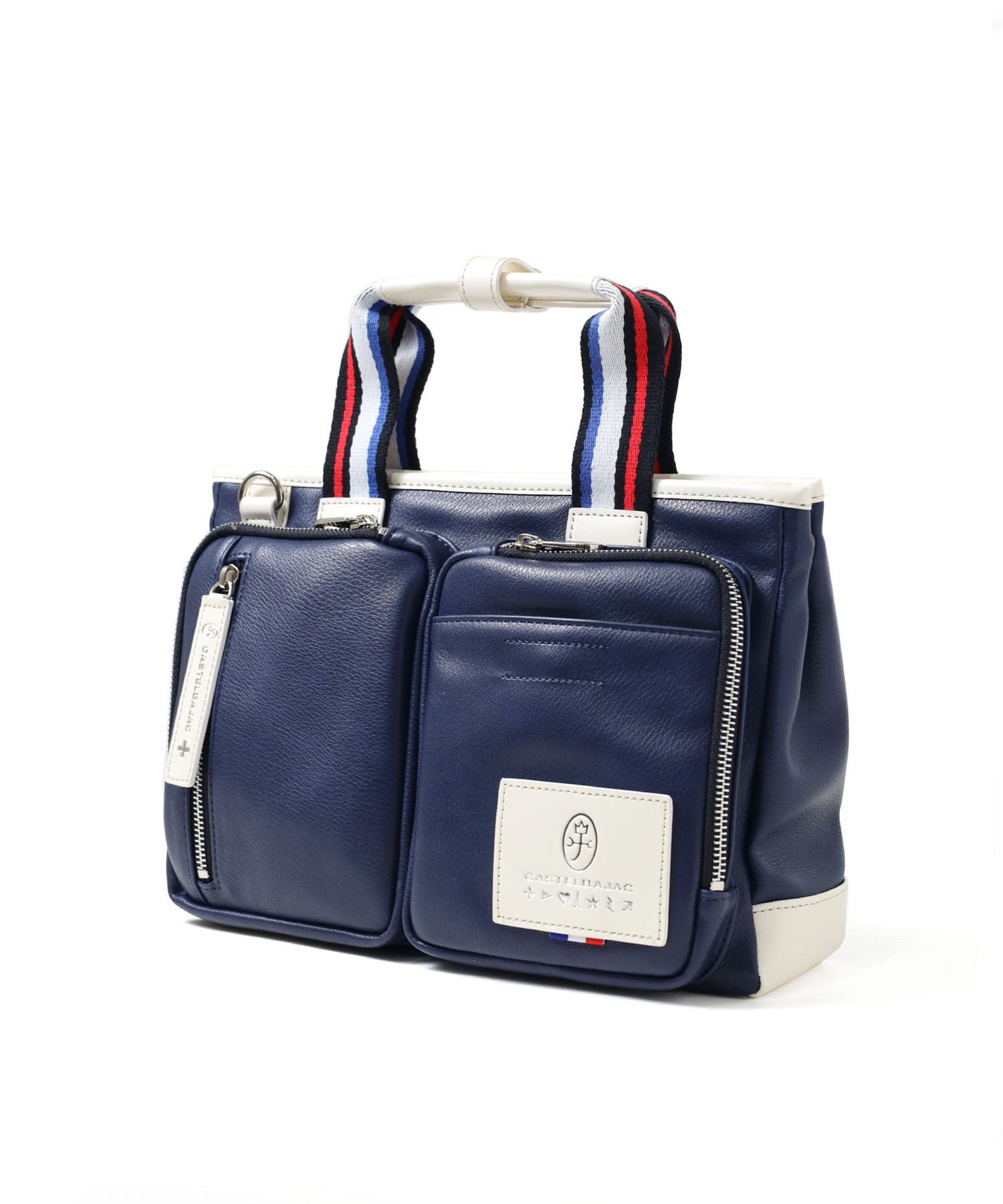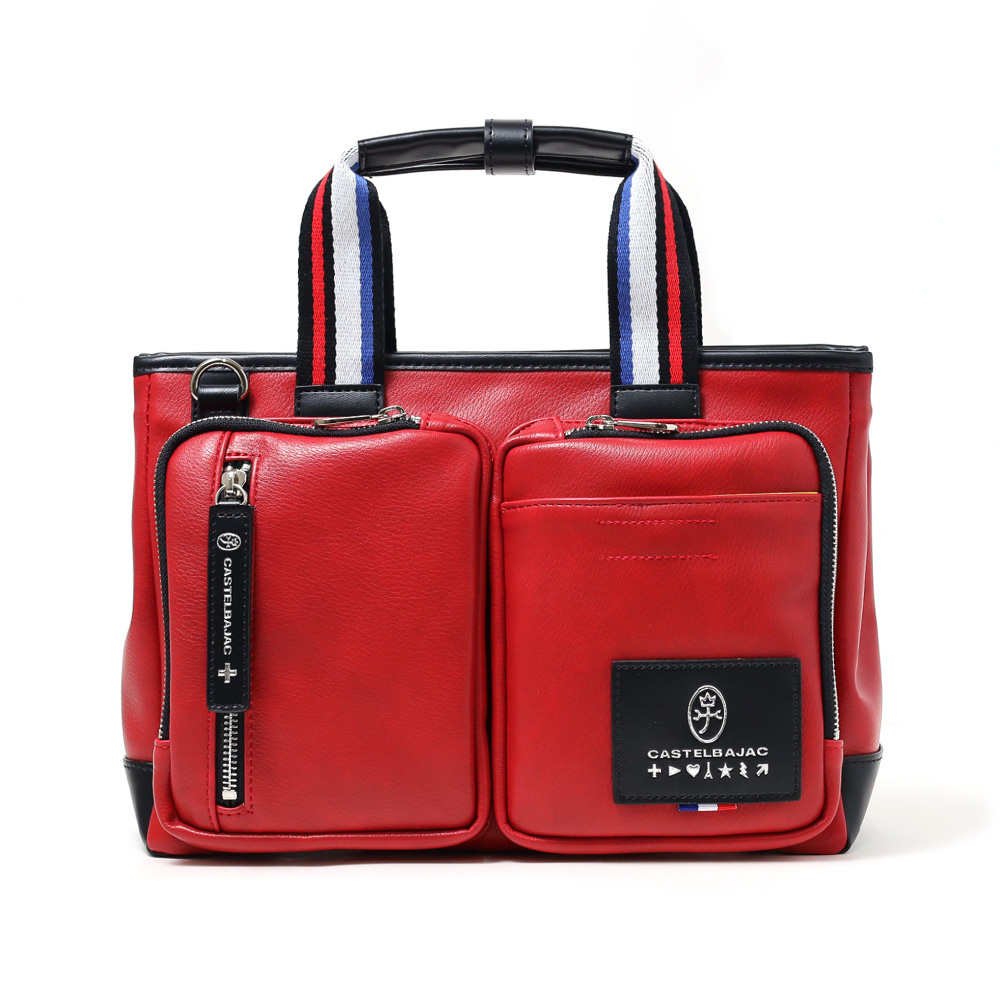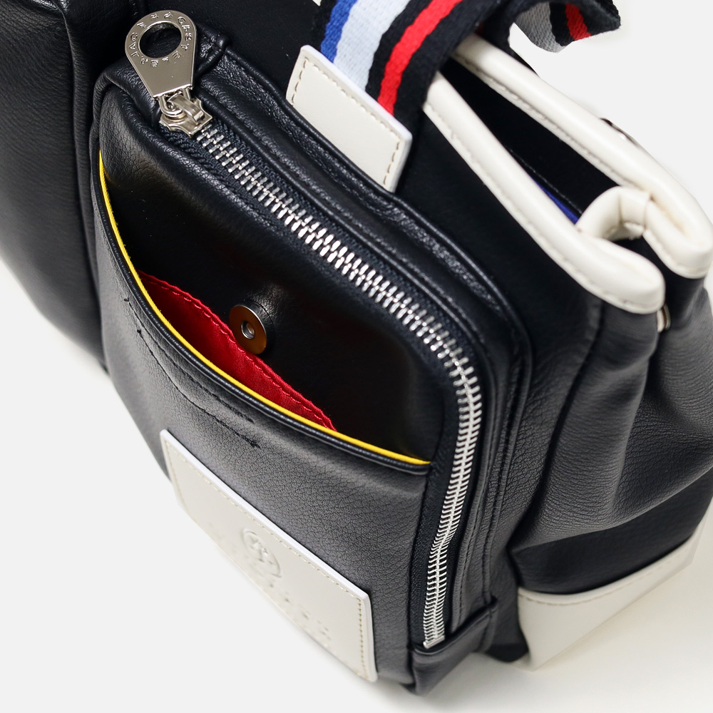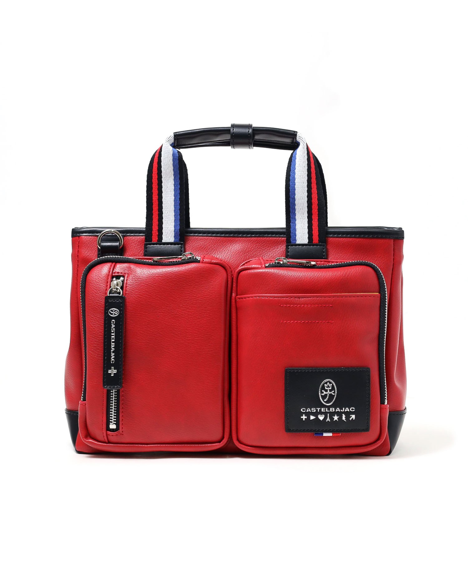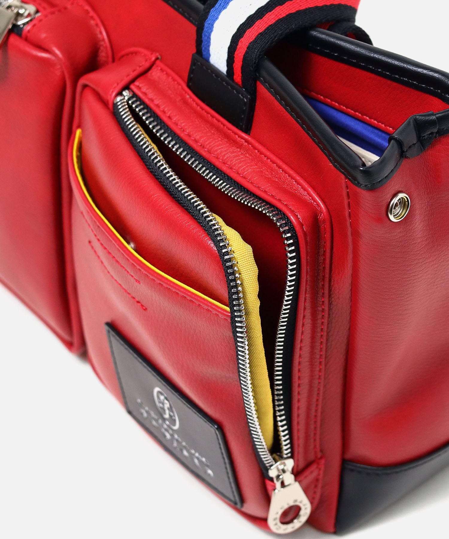 大き目のロゴパッチや引手、トリコロールカラーのショルダーベルトがブランドらしさを表現したカジュアルミニトートバッグ。収納機能に特化したデザインになっており、スポーツライクに仕上げています。レジャーでも大活躍すること間違いなしです。