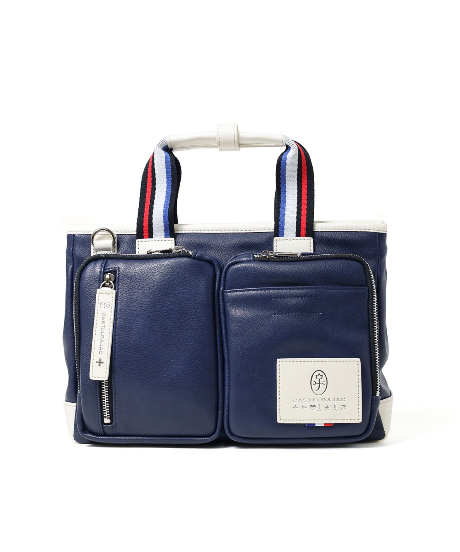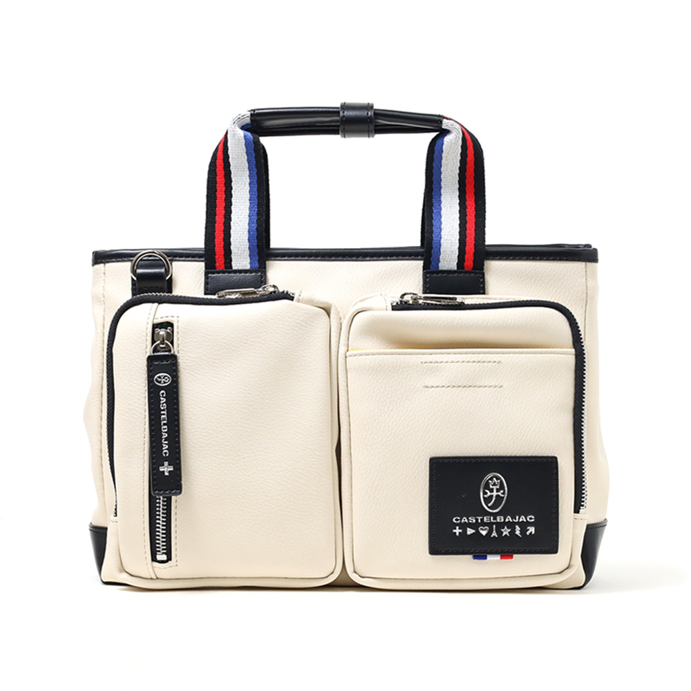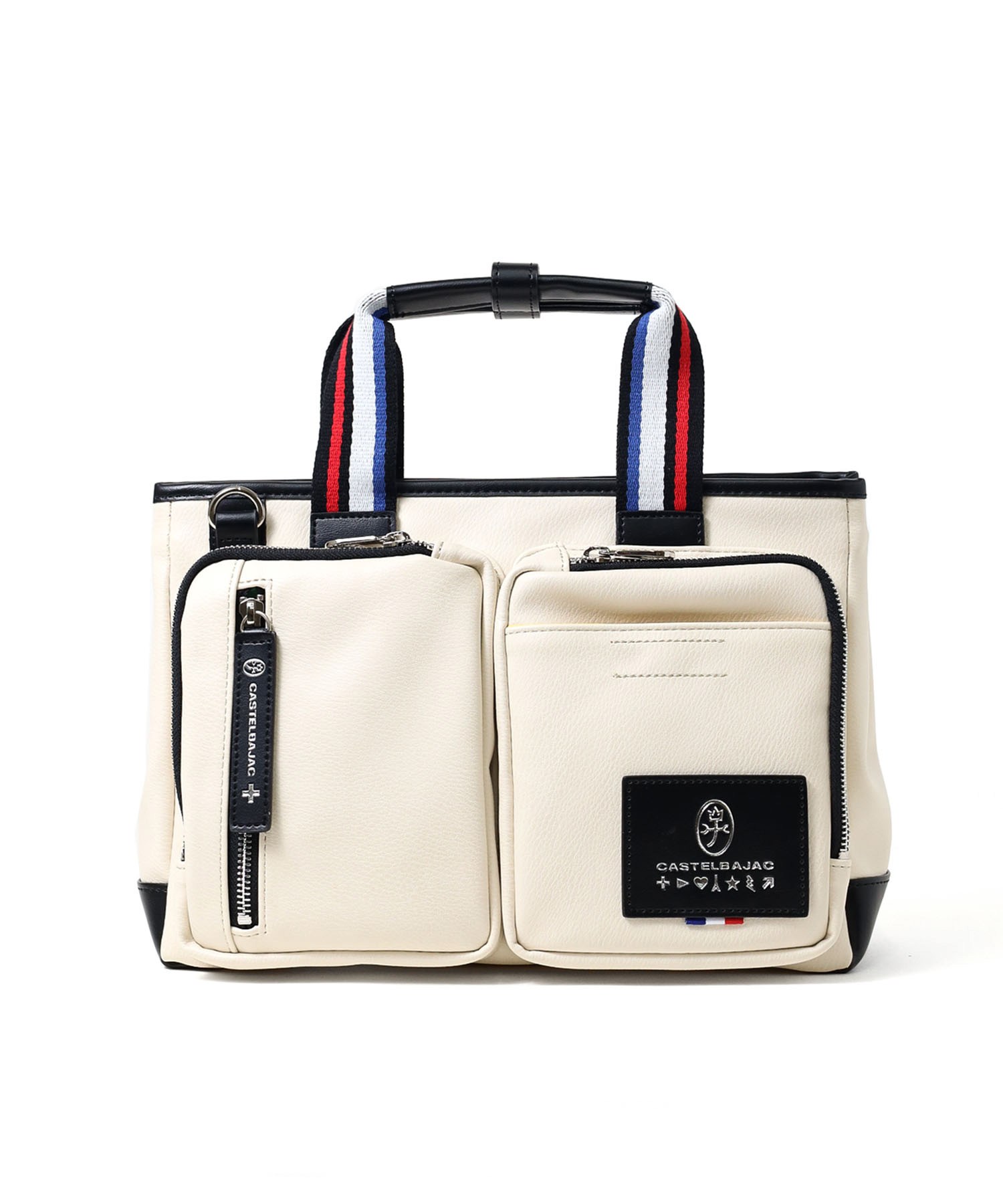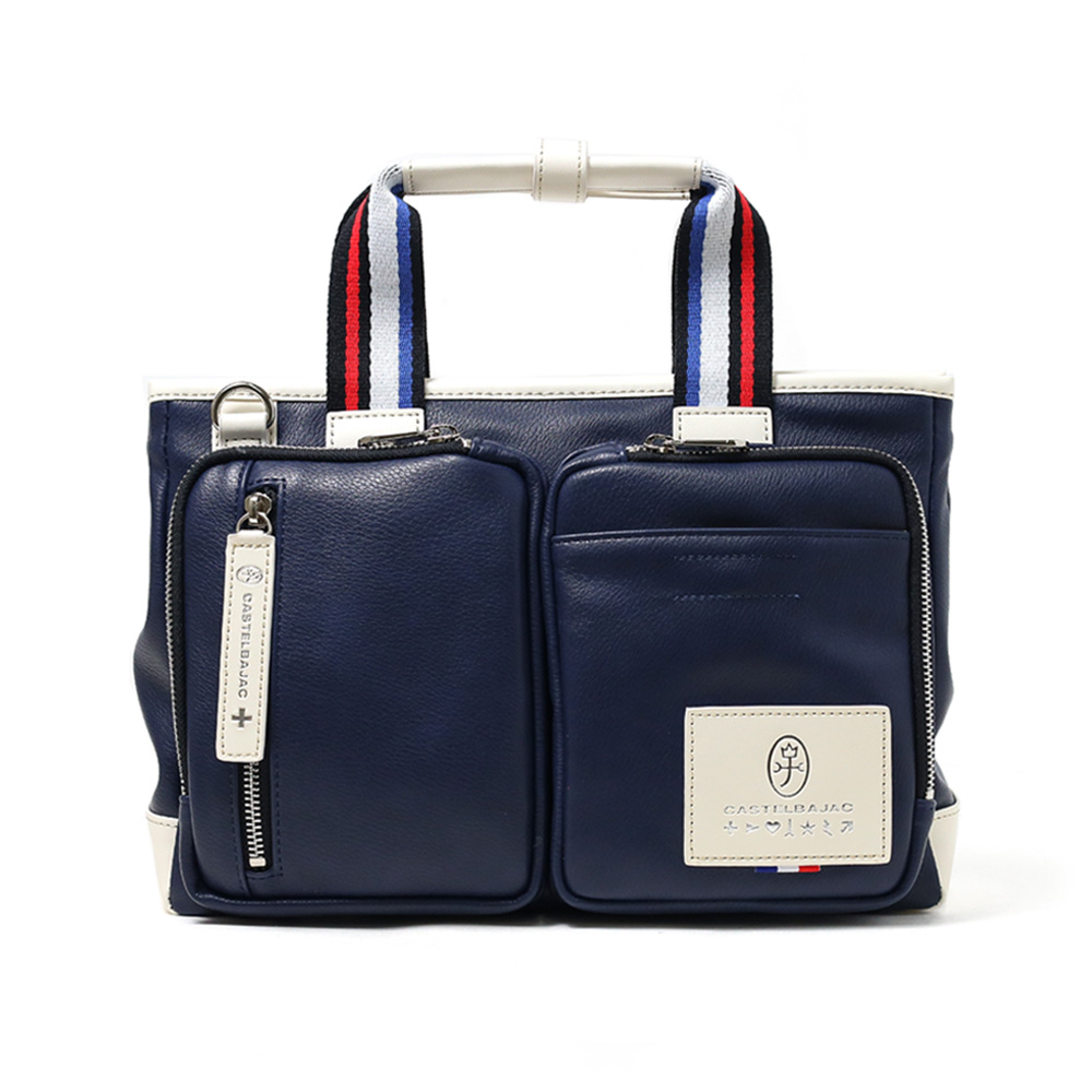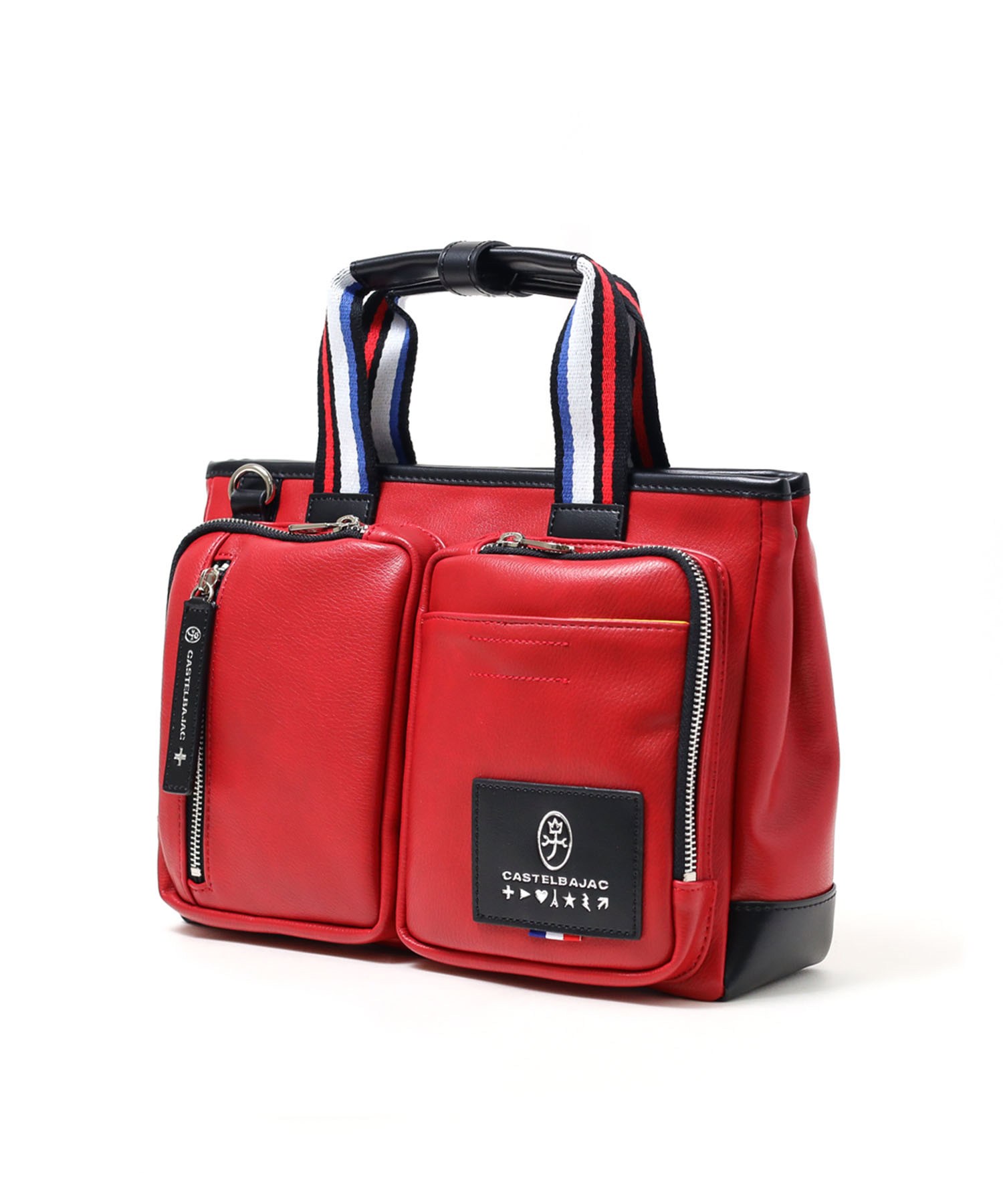 ファスナー使いやポケットのディティール等でスポーツ・ユニセックス的なテイストを表現したシリーズ。大きめロゴパッチやトリコロールカラーのリボンとテープ、引き手のネーム表現等でのカステルバジャックらしいブランド表現がポイントです。デイリーに使いやすいサイズ感と内外装共に機能性が充実のアイテムで、細かいものなど整理整頓しての収納に対応します。ショルダーベルト付属のため、2WAYでお使いいただけます。