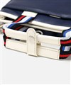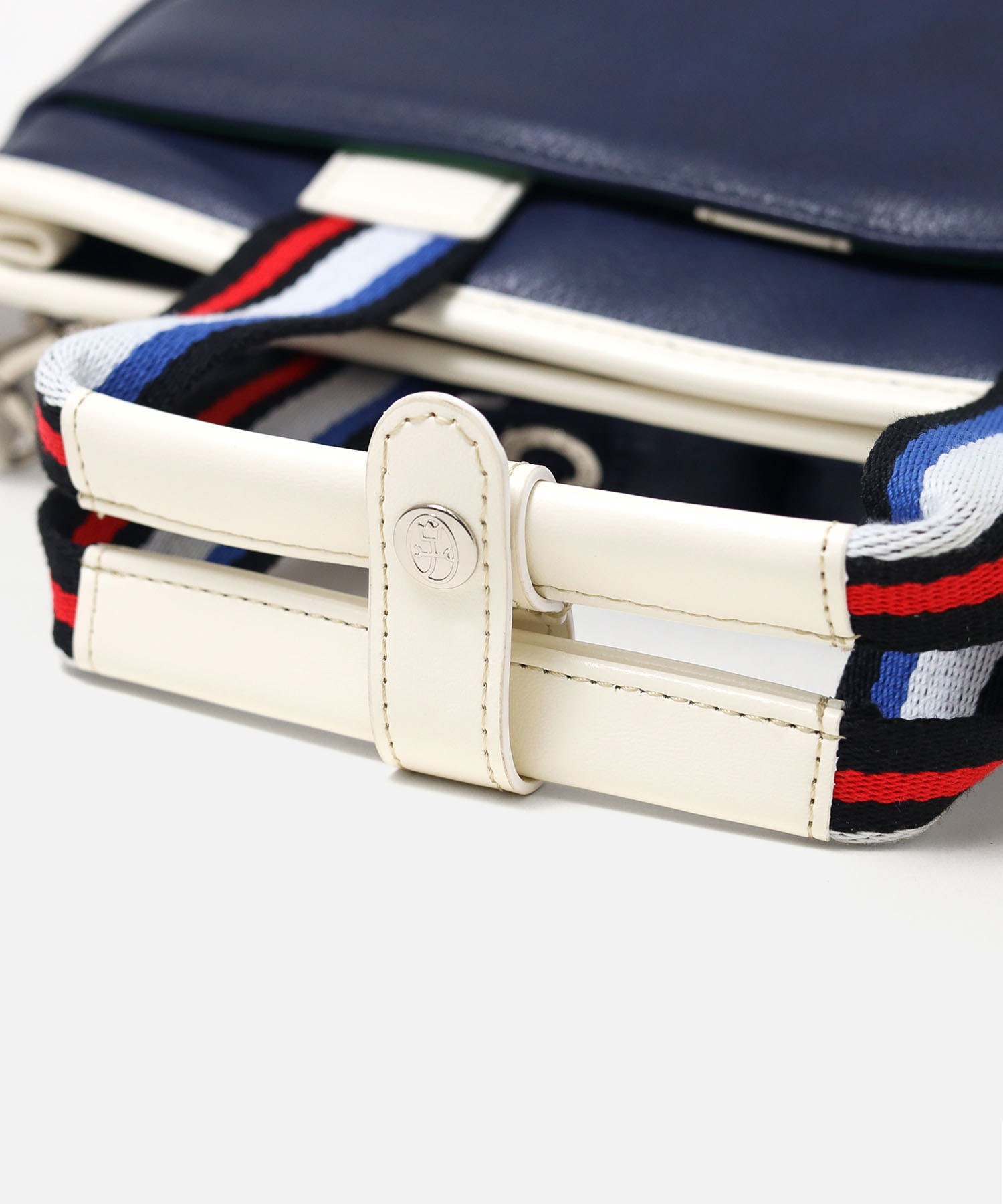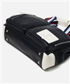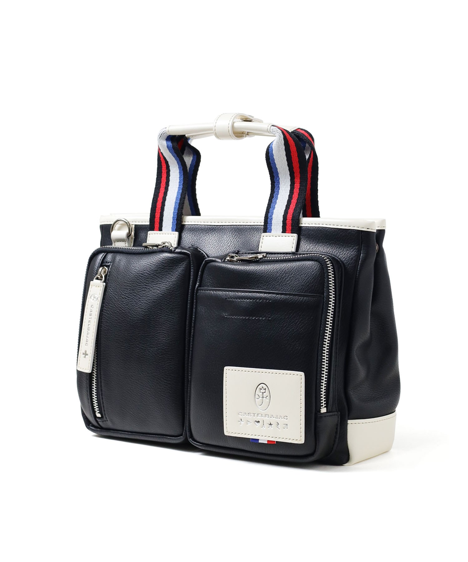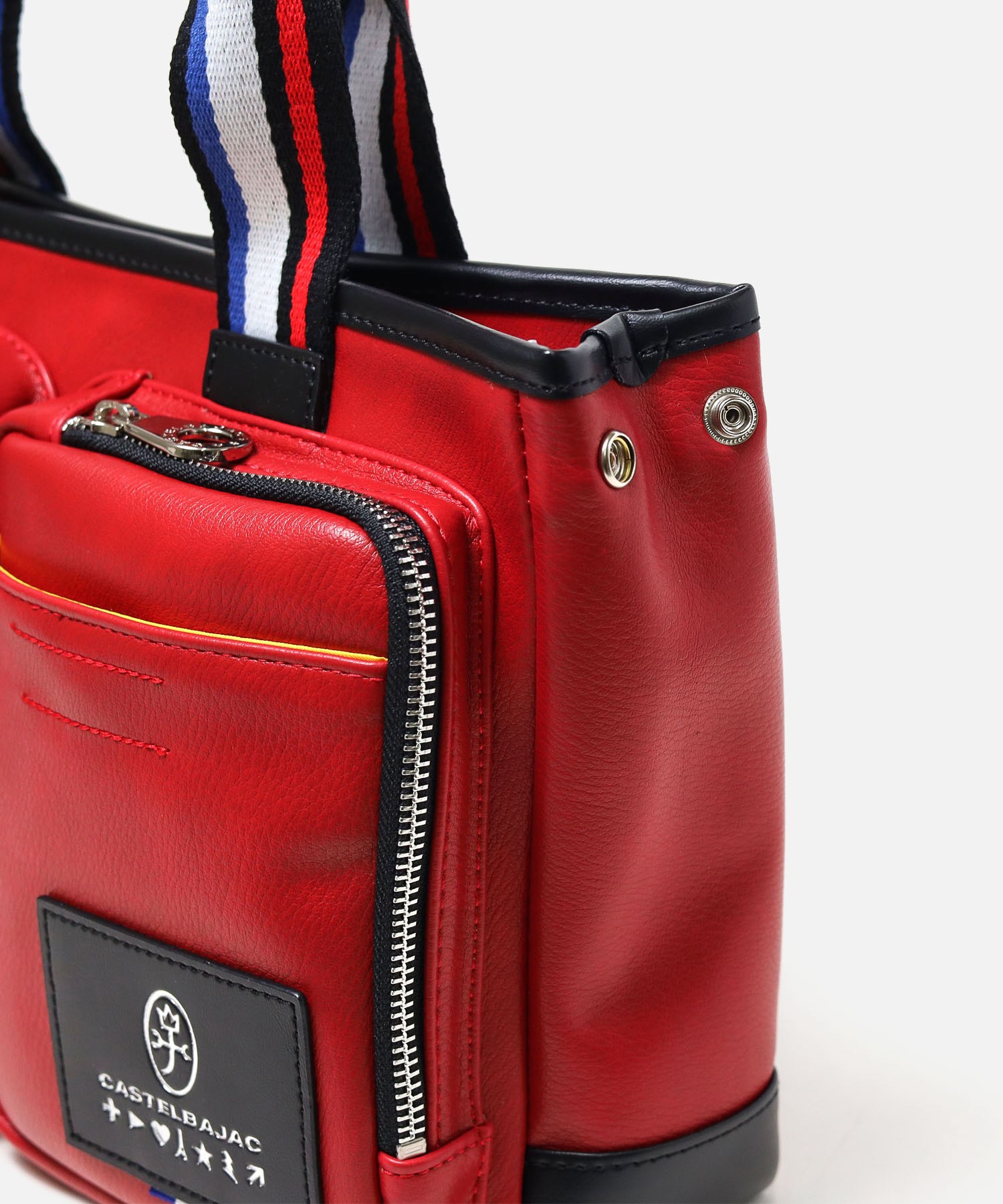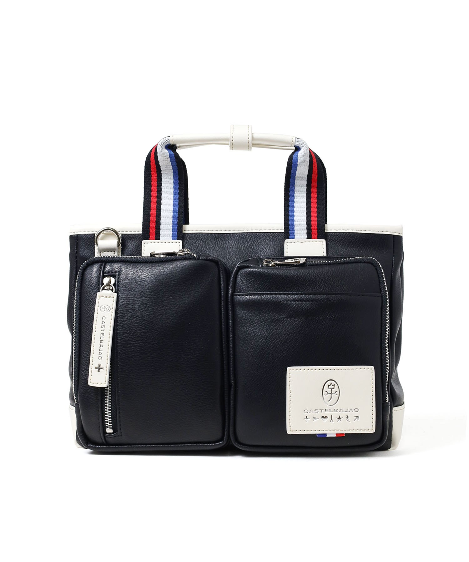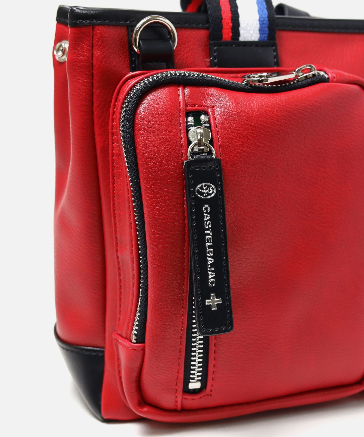 ファスナー使いやポケットのディティール等でスポーツ・ユニセックス的なテイストを表現したシリーズ。大きめロゴパッチやトリコロールカラーのリボンとテープ、引き手のネーム表現等でのカステルバジャックらしいブランド表現がポイントです。デイリーに使いやすいサイズ感と内外装共に機能性が充実のアイテムで、細かいものなど整理整頓しての収納に対応します。ショルダーベルト付属のため、2WAYでお使いいただけます。