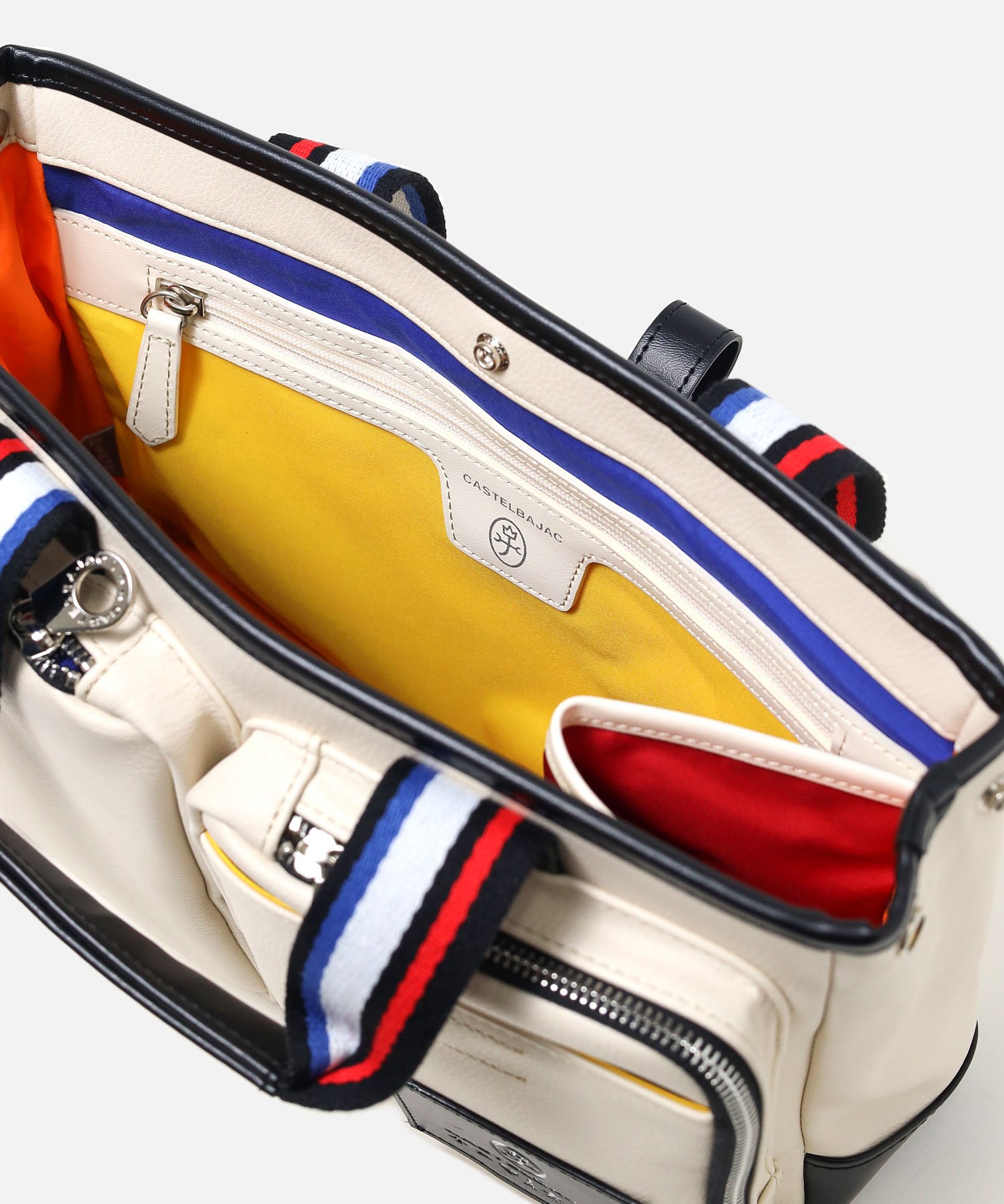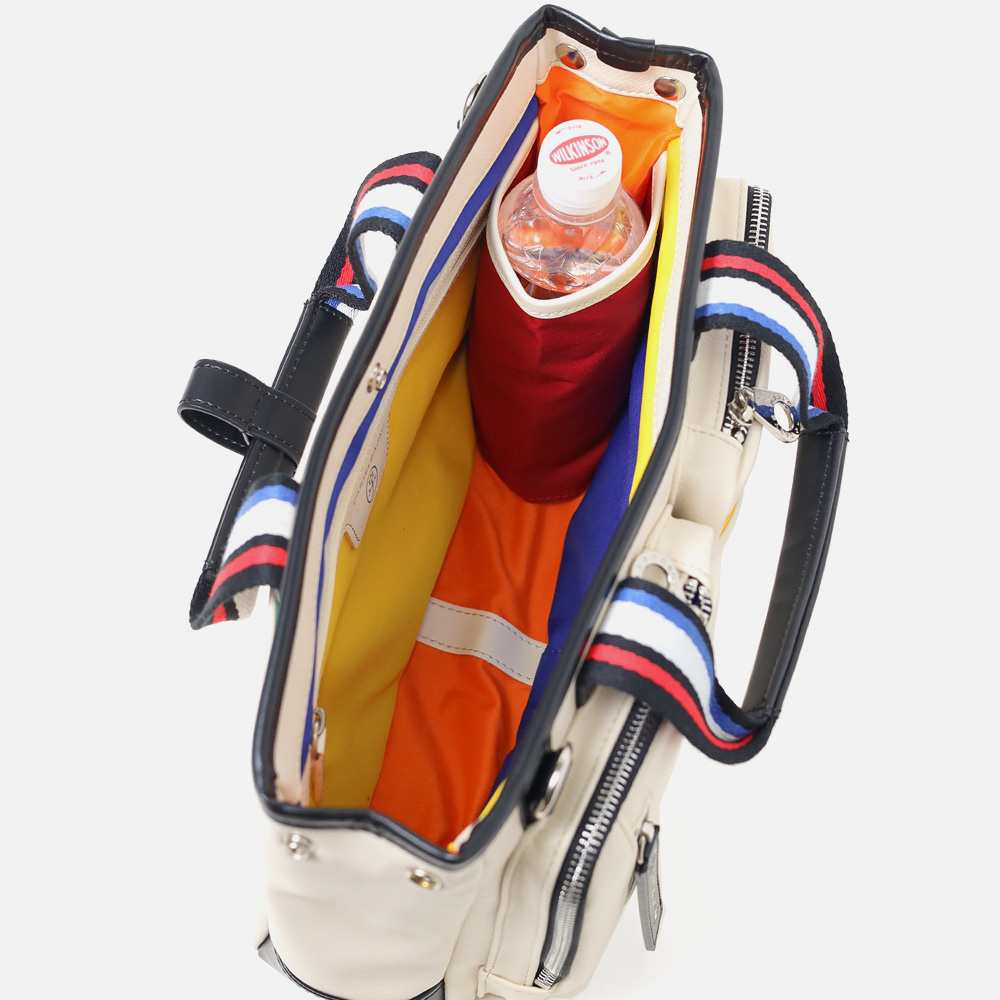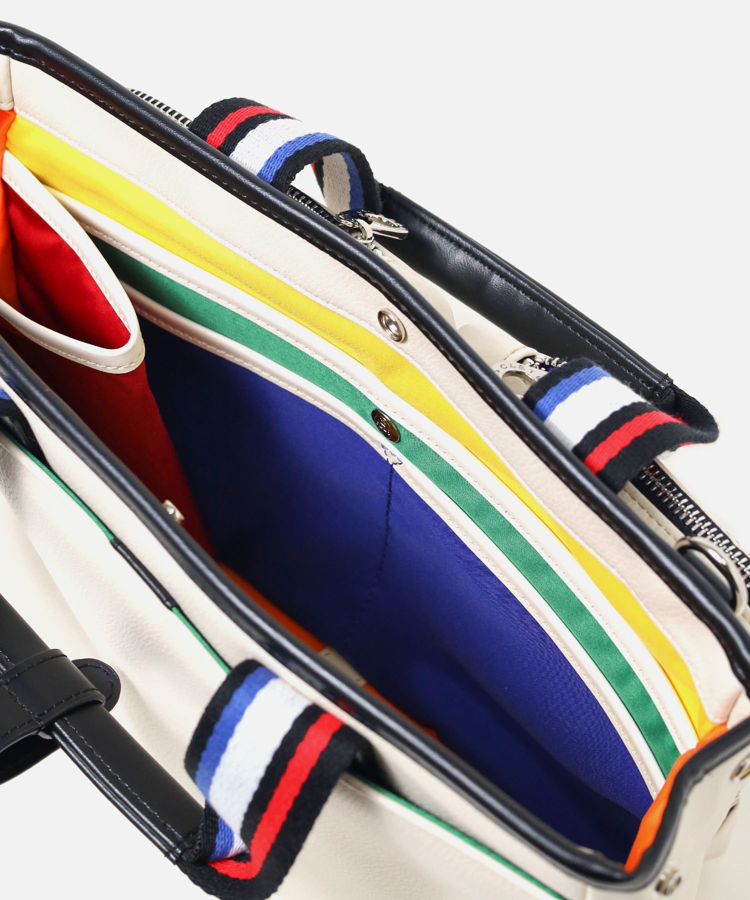 内装には特徴的な4原色をコンビネーションで使用して、バッグを開けた時のインパクトもブランドらしい魅力となっています。ペットボトルホルダーや豊富なポケットで、鞄の中身が散らかる心配を解消してくれます。