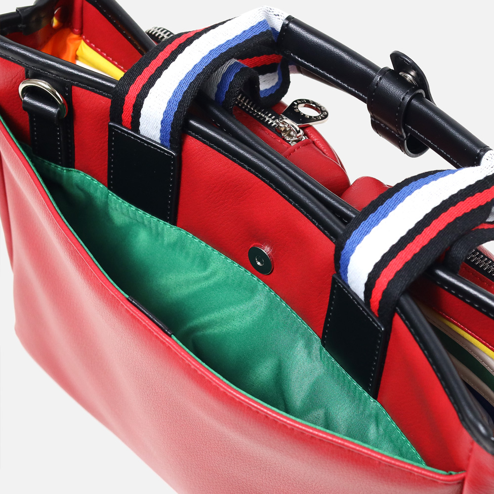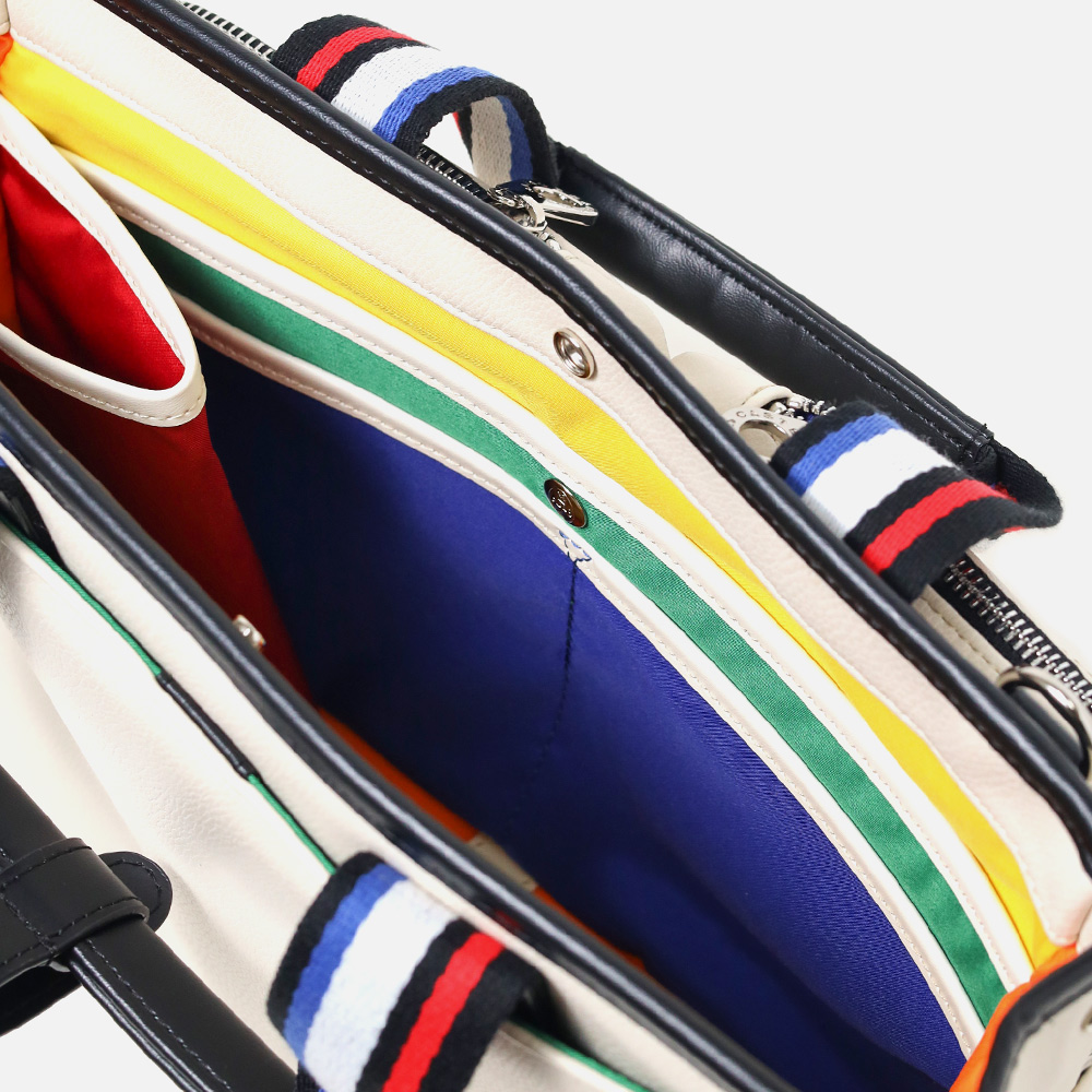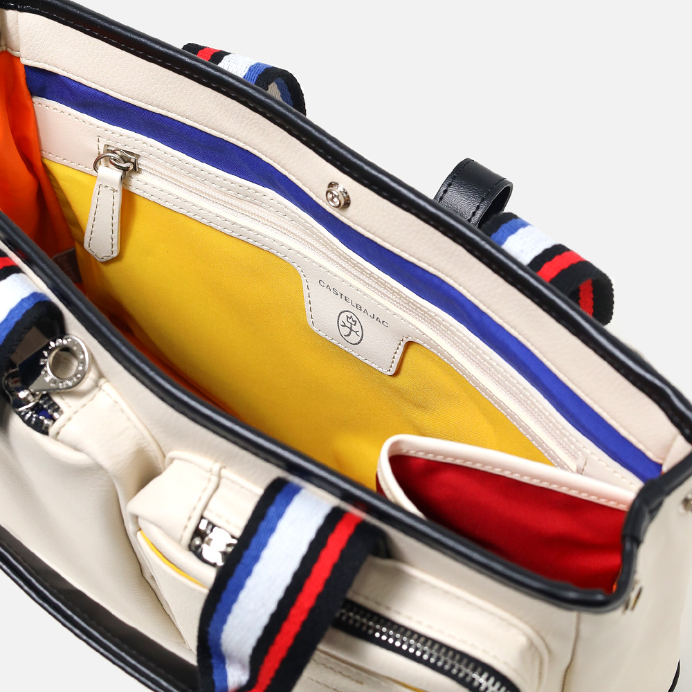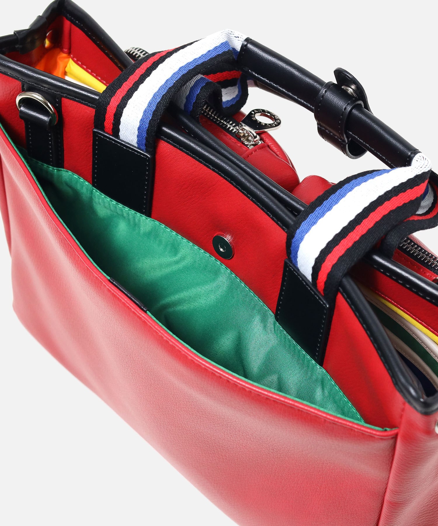 内装には特徴的な4原色をコンビネーションで使用して、バッグを開けた時のインパクトもブランドらしい魅力となっています。ペットボトルホルダーや豊富なポケットで、鞄の中身が散らかる心配を解消してくれます。