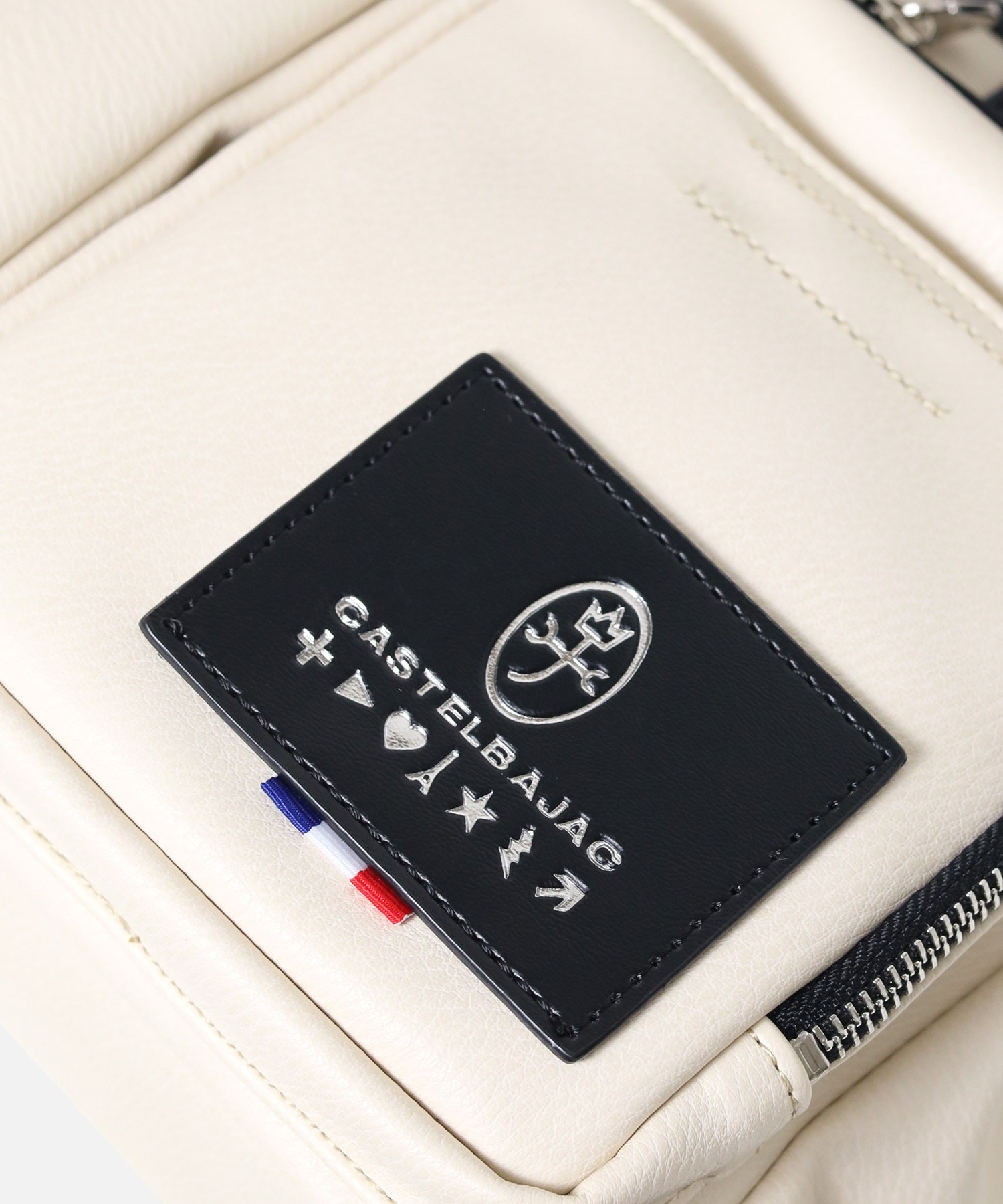 パッと目をひくロゴパッチは、本体カラーに合わせてクロとシロの2パターンで表現しています。クロ、コンには「シロ」のロゴパッチを。シロとアカには「クロ」のロゴパッチでデザインのアクセントに。ブランドロゴとブランド名の他にも、CASTELBAJACのイメージ模様をあしらっておりちょっとした遊び心も忘れていません。