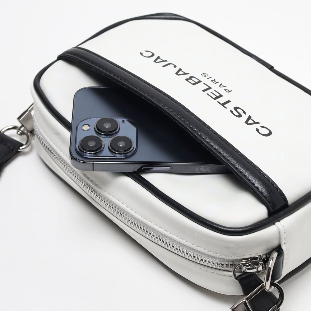 軽量で使いやすい、カステルバジャックのヨコ型カジュアルショルダーバッグ。マットな質感のラバー素材をソフトに仕上げることで、モードな雰囲気を演出しています。日常使いしやすいスタイリッシュなデザインです。