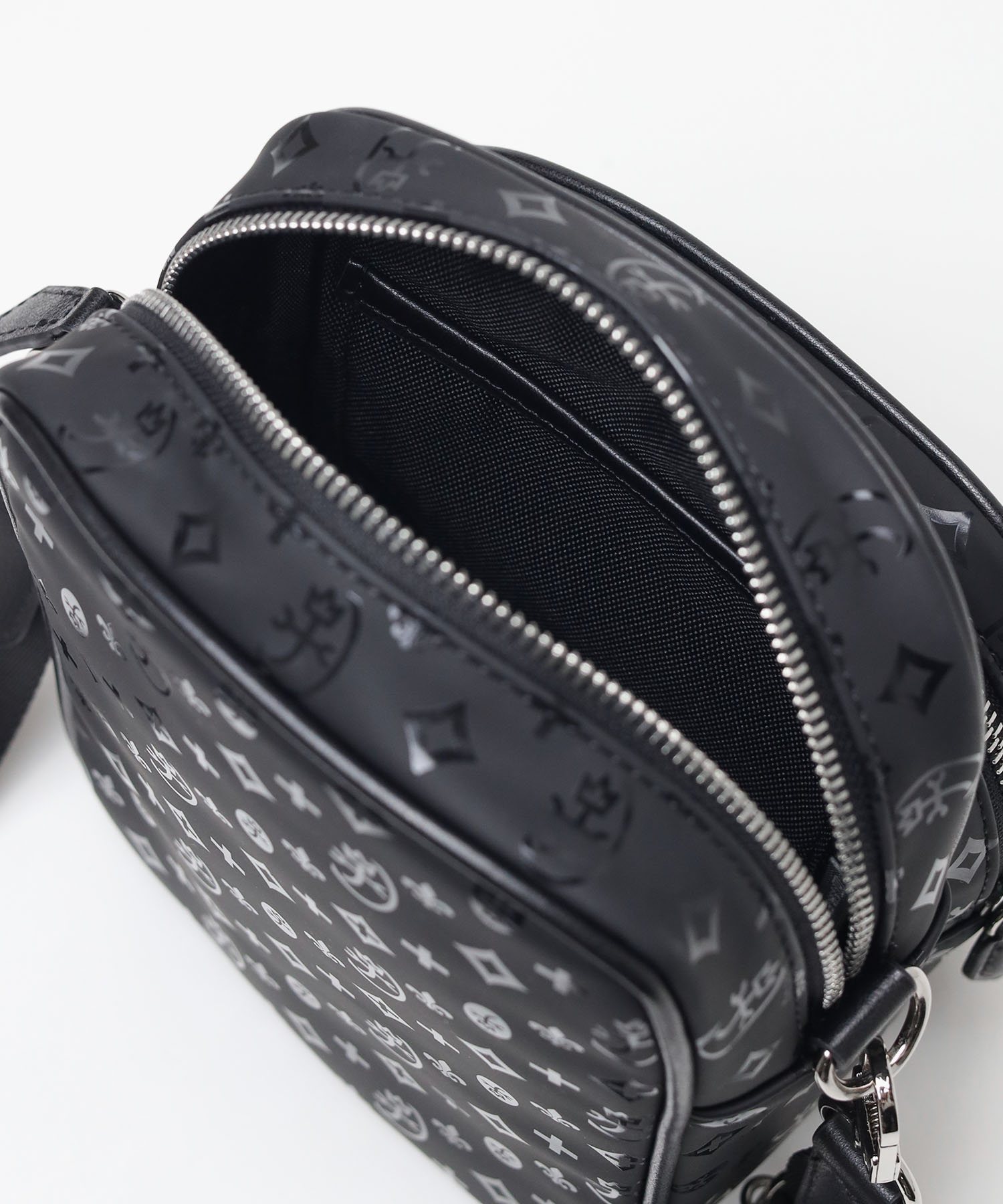 光沢のあるモノグラム柄