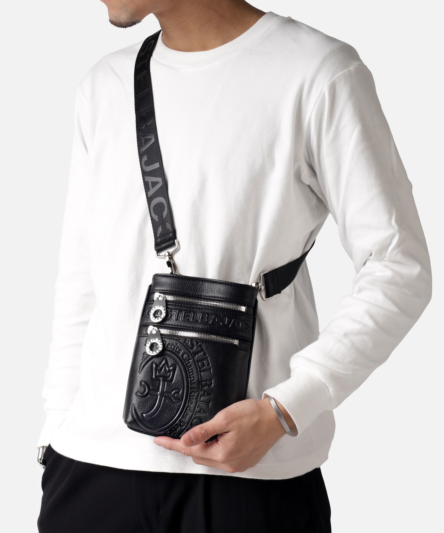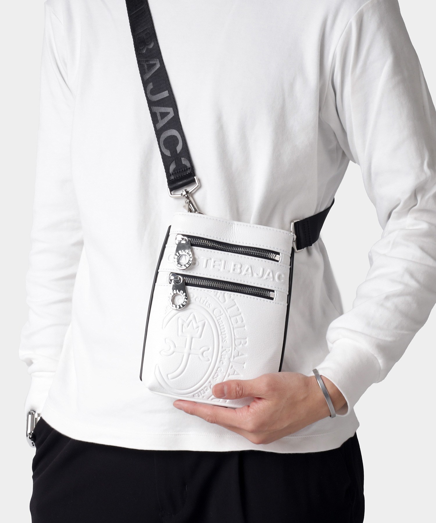 ロゴを大きくもり上げてブランド感を 出したスマホショルダーバッグ