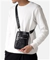 大きくを浮き立たせたようなブランドロゴ。シンプルなデザインながらも、大胆で存在感のあるロゴが際立ち、スタイリッシュな雰囲気を醸し出しています。またショルダーベルトにもブランドロゴが織り込まれており、見る角度によって浮き出るデザインです。
