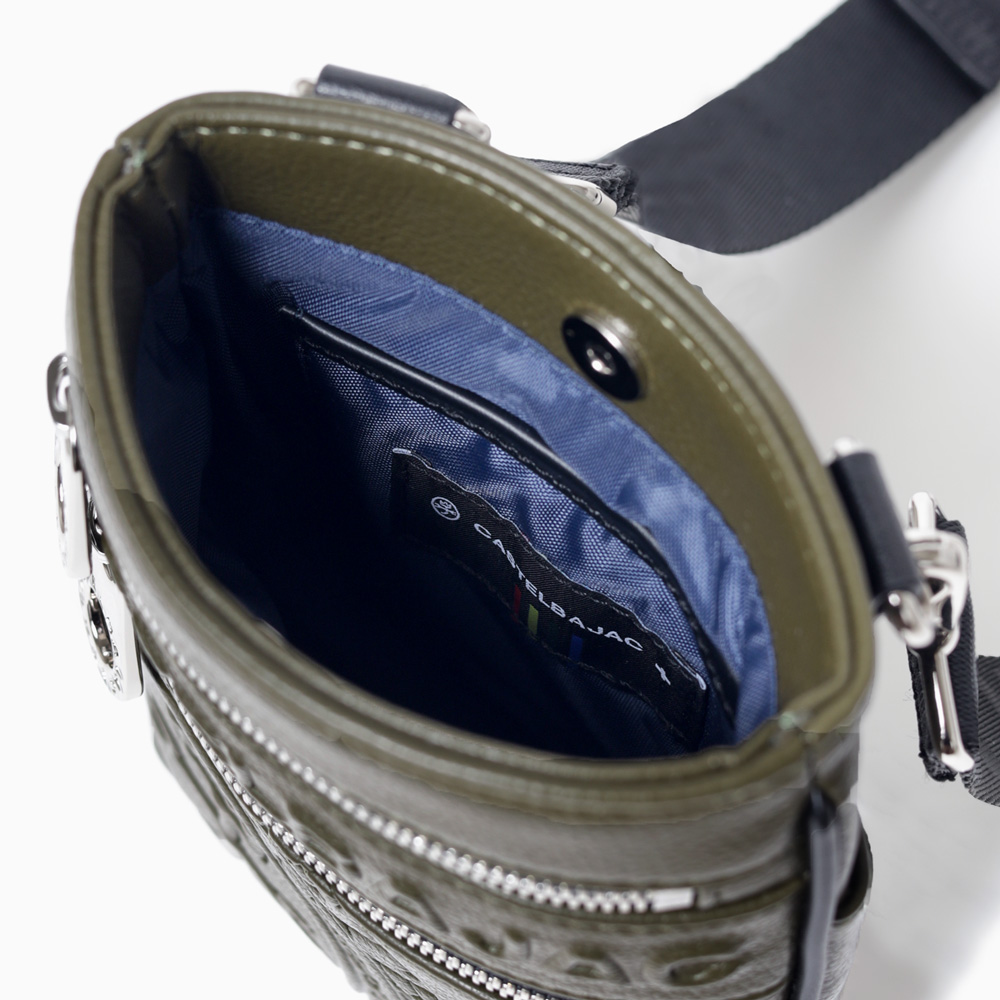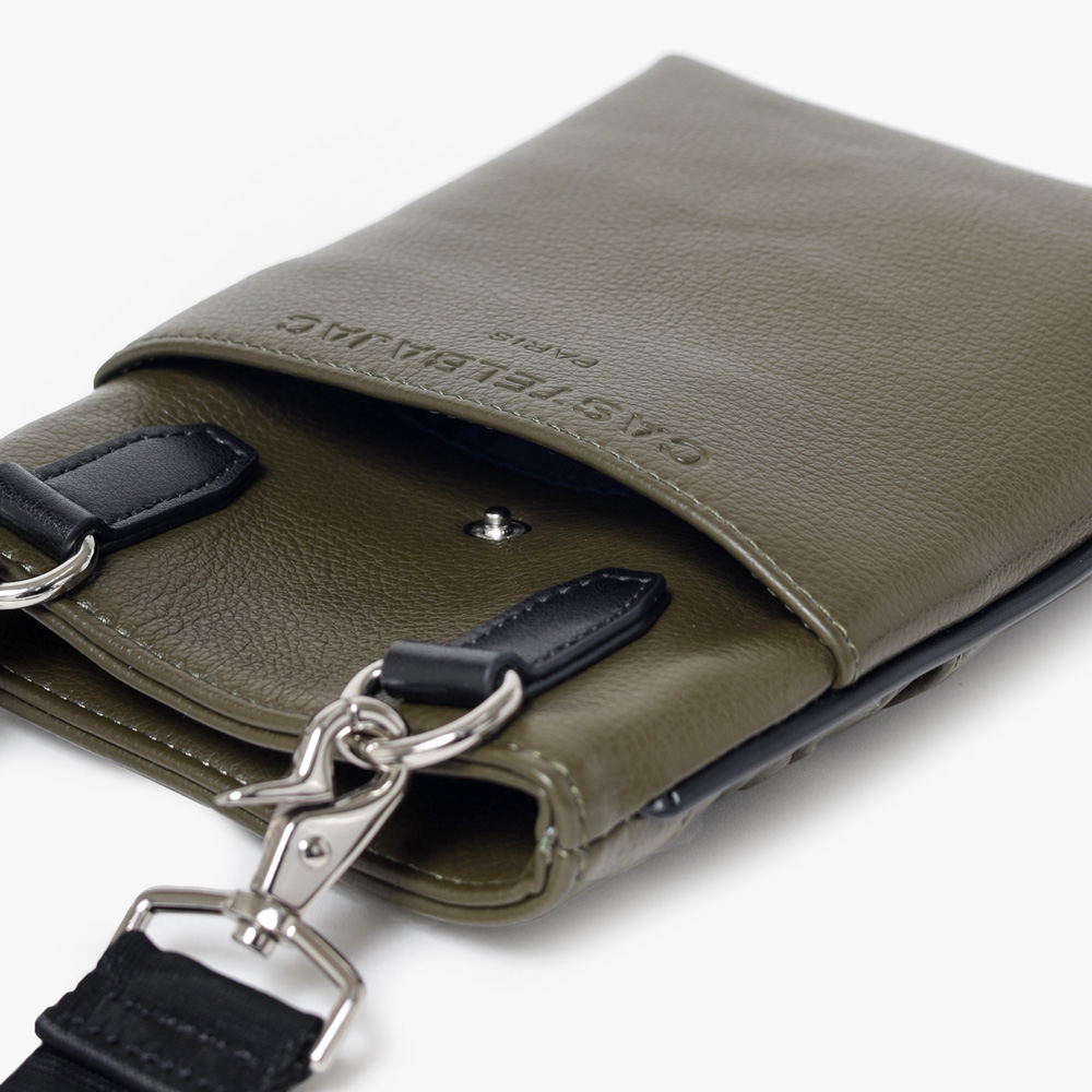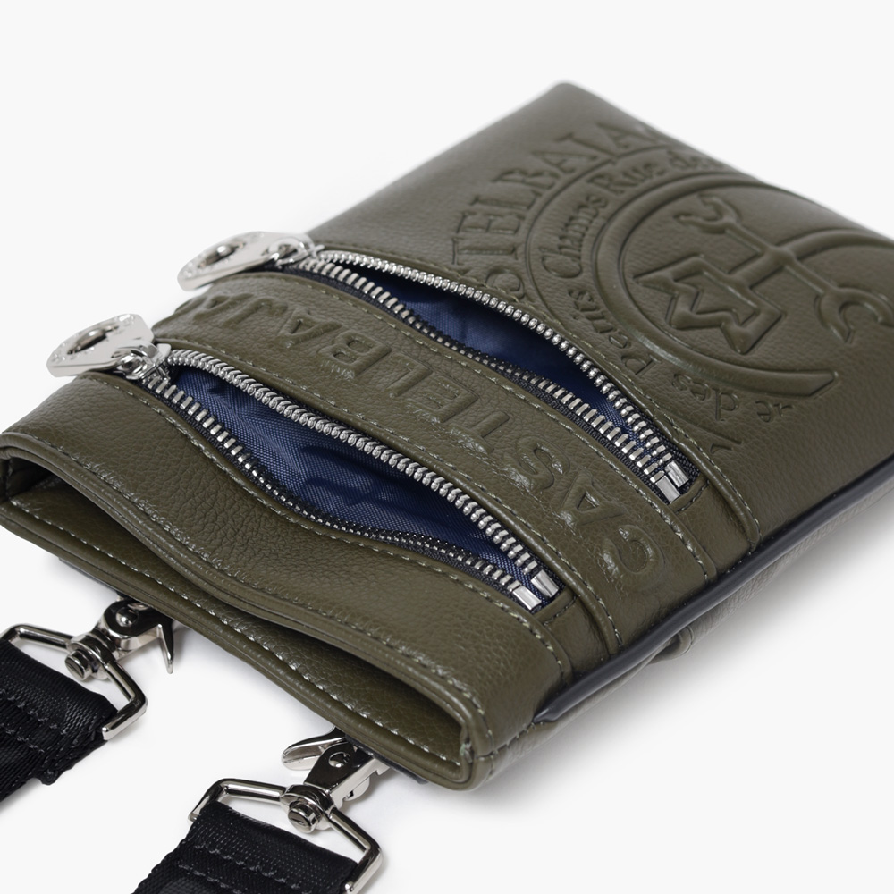 まるで革のような質感の合成皮革に、大きなロゴを浮き立たせブランド感を漂わせた、カステルバジャックのスマホショルダーバッグ。シンプルなデザインながらも、大胆で存在感のあるロゴが際立ち、スタイリッシュな雰囲気を醸し出しています。クロ、シロ、カーキの使いやすい色展開は、日常のスタイリングにさりげないアクセントをプラス。洗練されたデザインと実用性を兼ね備え、普段使いに最適です。