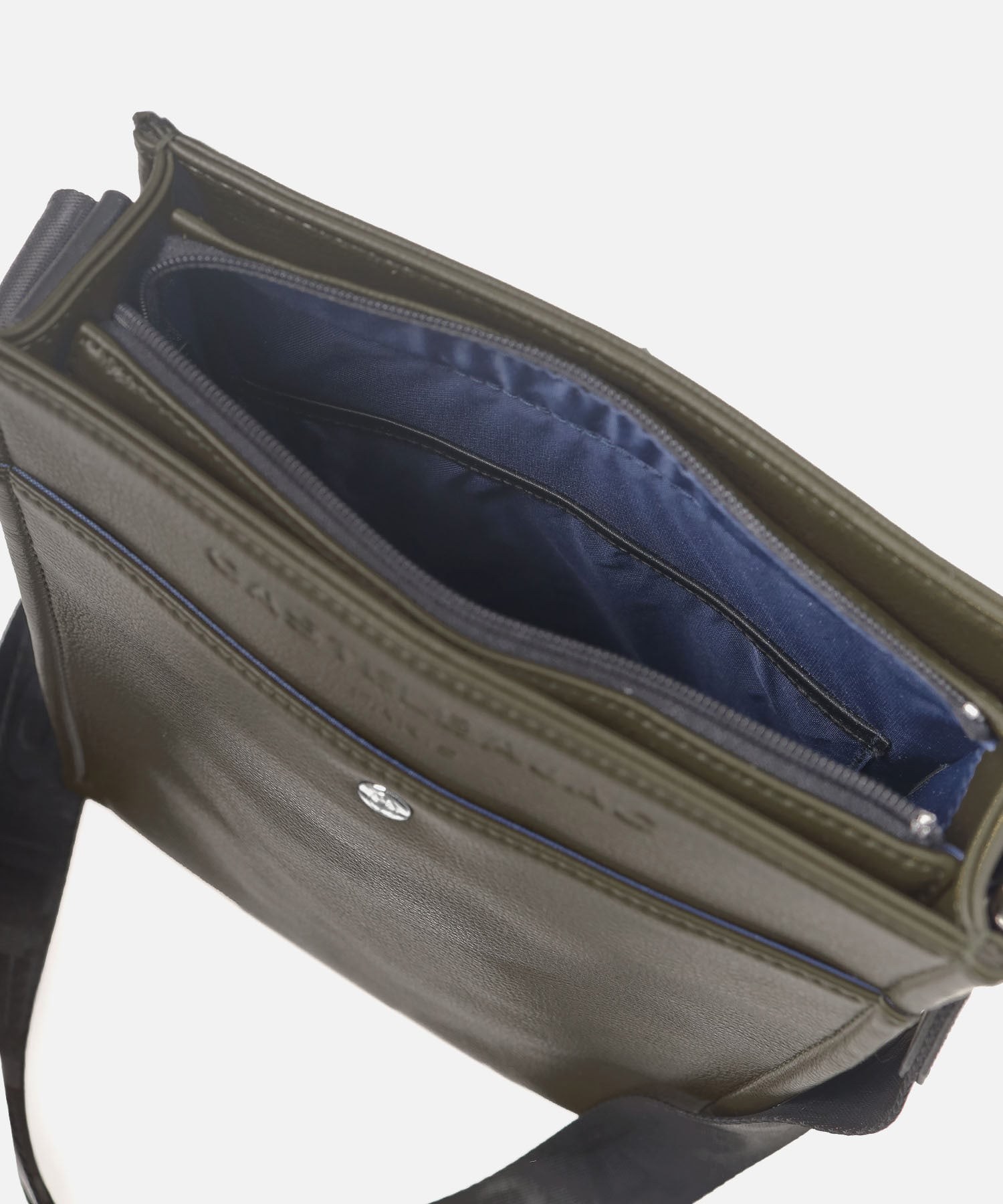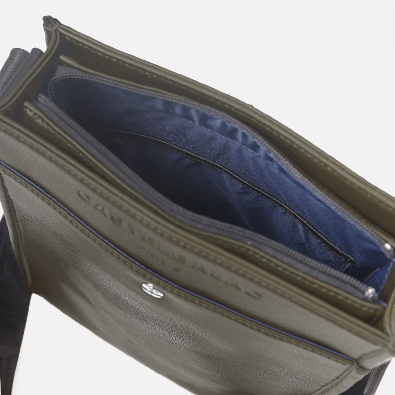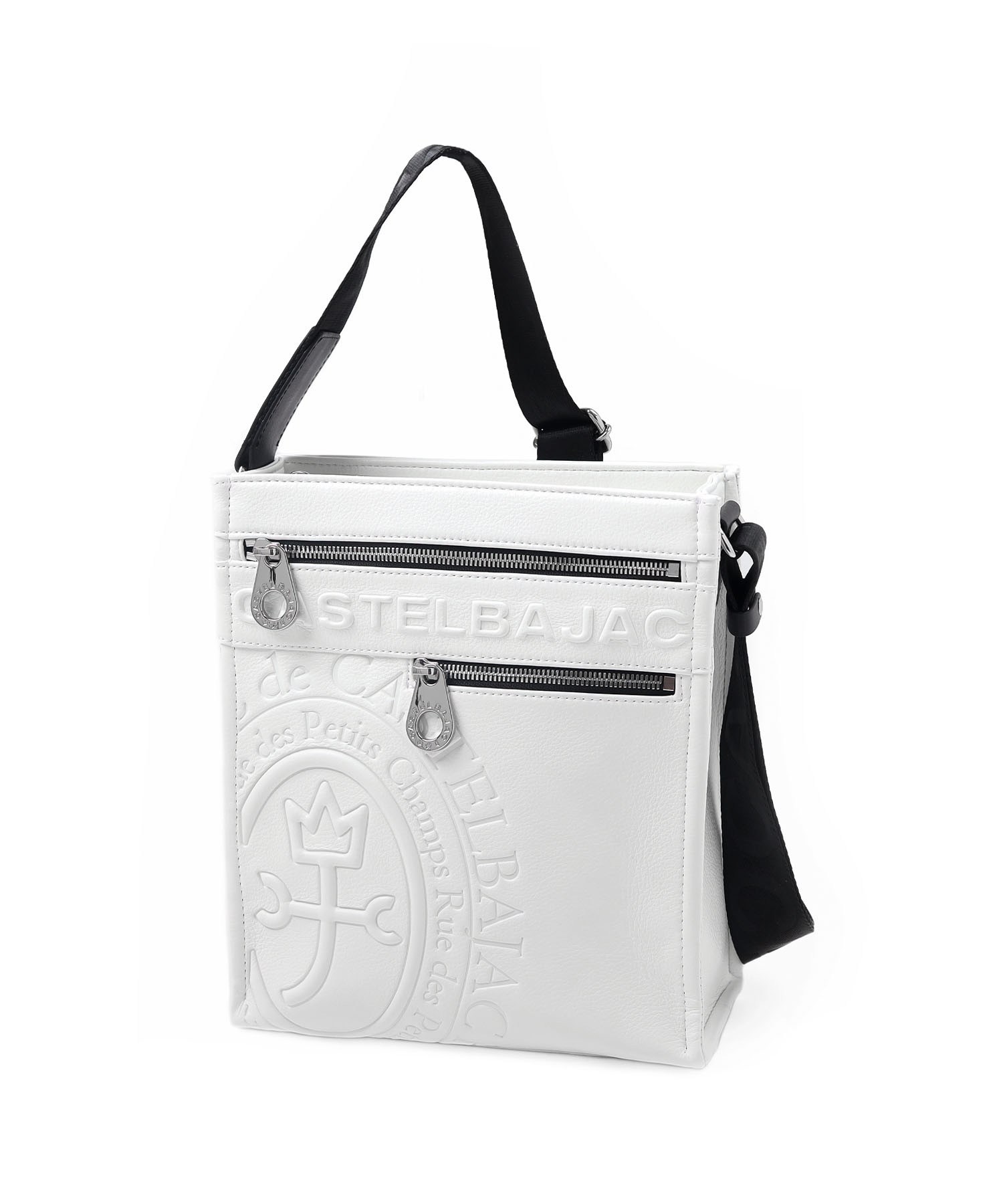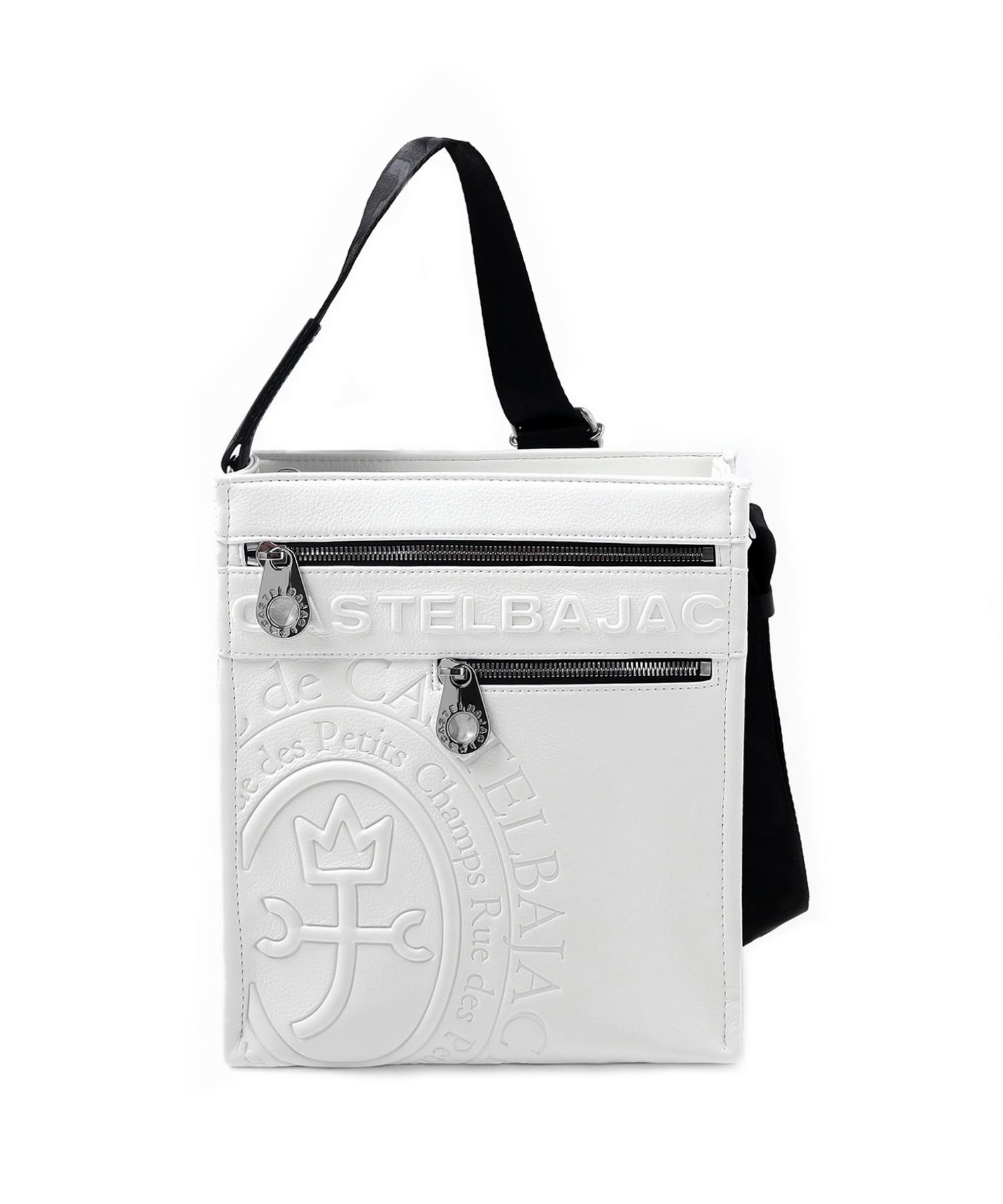 まるで革のような質感の合成皮革に、大きなロゴを浮き立たせブランド感を漂わせた、カステルバジャックのショルダーバッグ。シンプルなデザインながらも、大胆で存在感のあるロゴが際立ち、スタイリッシュな雰囲気を醸し出しています。クロ、シロ、カーキの使いやすい色展開は、日常のスタイリングにさりげないアクセントをプラス。洗練されたデザインと実用性を兼ね備え、普段使いに最適です。