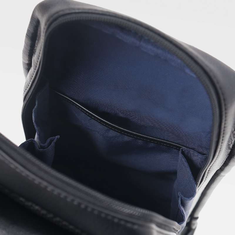 収納機能は、外側の前面にファスナーポケット2つ、そして内側にファスナーポケットとオープンポケットが2個ございます。500mlペットボトルがすっぽりと入るサイズ感です。両手を塞ぐことなくお持ちいただけるワンショルダーバッグは、お出かけや旅行などに大活躍間違いなしのアイテムです。