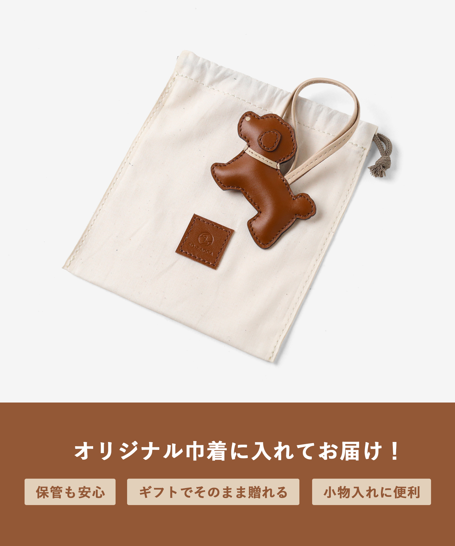 いつものバッグにつけるだけで上品さをプラスする、イヌモチーフのレザーバッグチャーム。シンプルなバッグのアクセントとして、思わず目を引く本革仕立てのチャームです。好みに合わせて選べる2カラー展開です。