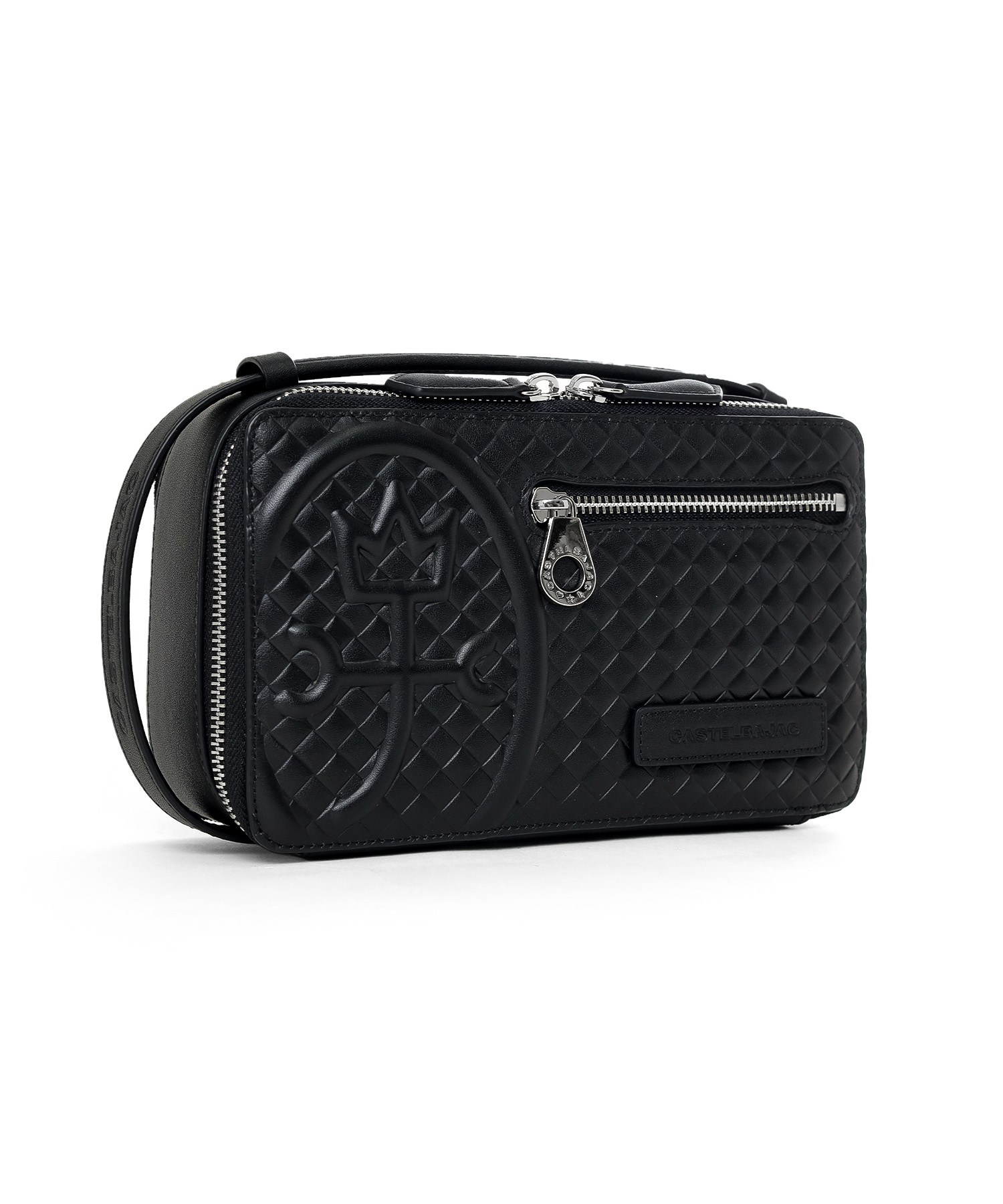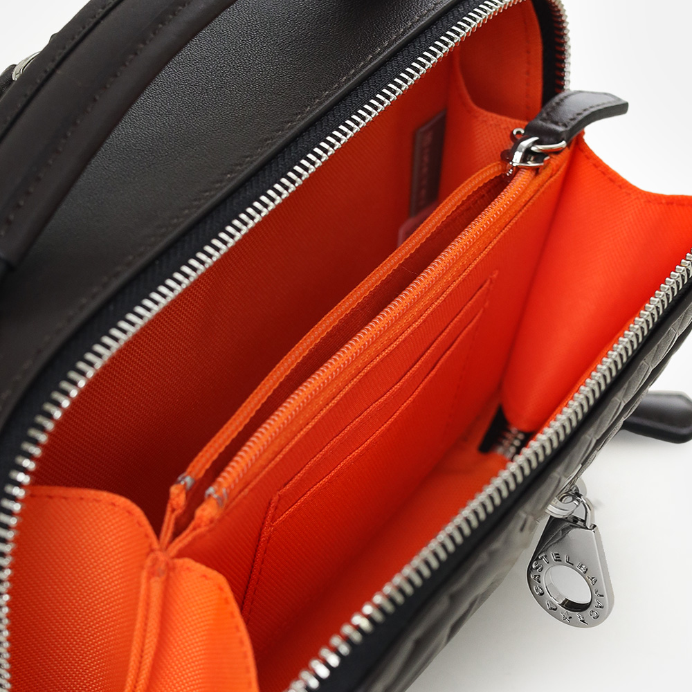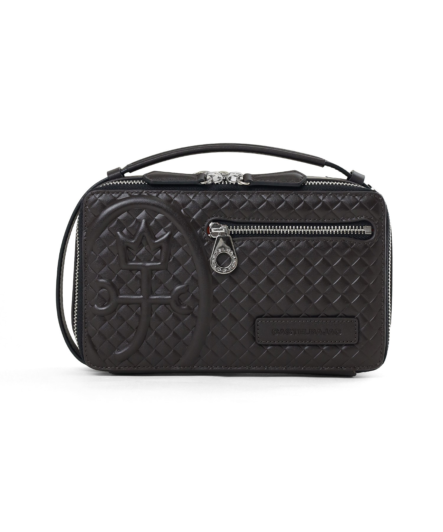 大人の落ち着きを持ったシックなデザインのレザーメンズバッグ。カステルバジャックらしい存在感のある大きな家紋を本体正面にあしらえブランドイメージを表現しています。