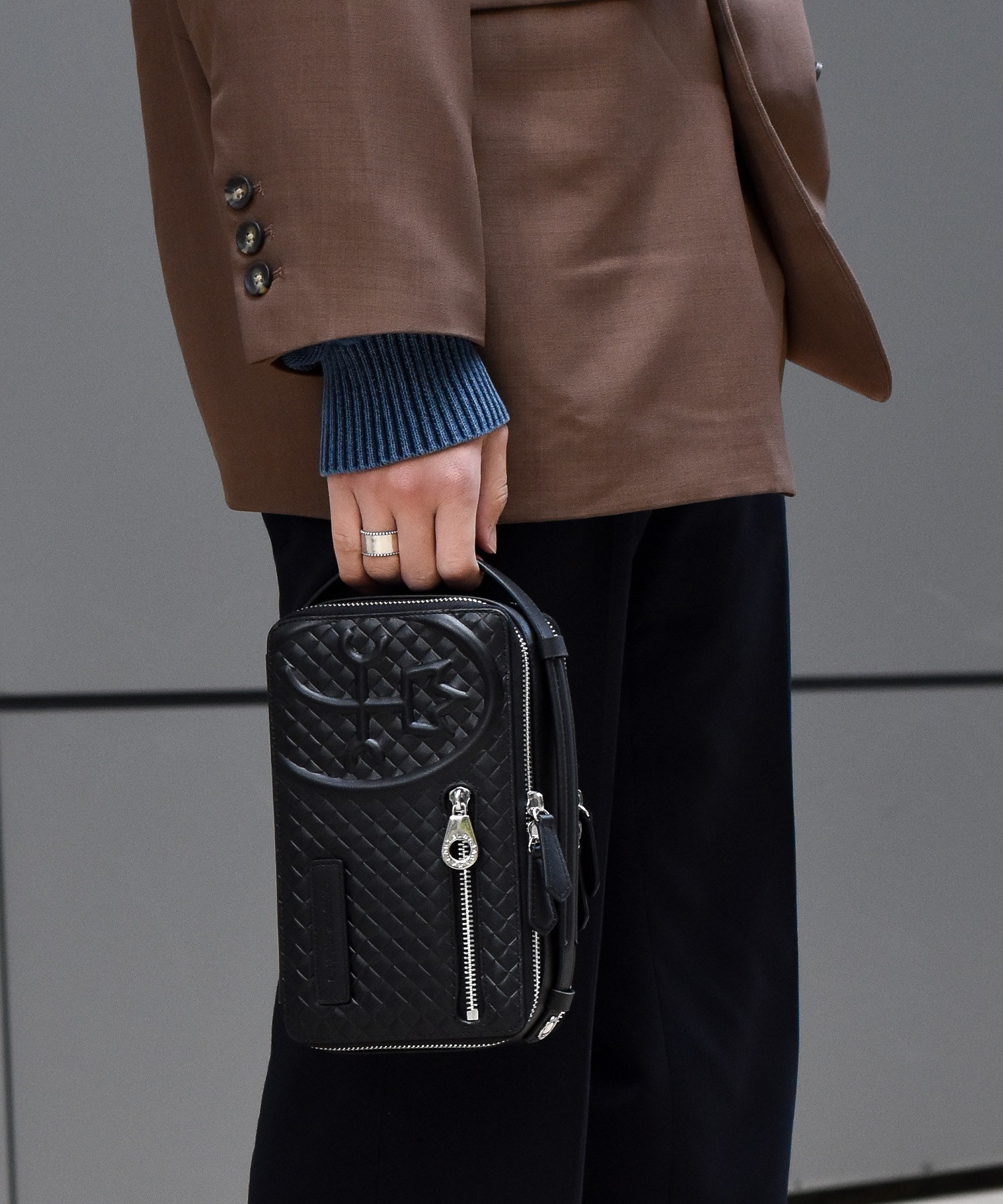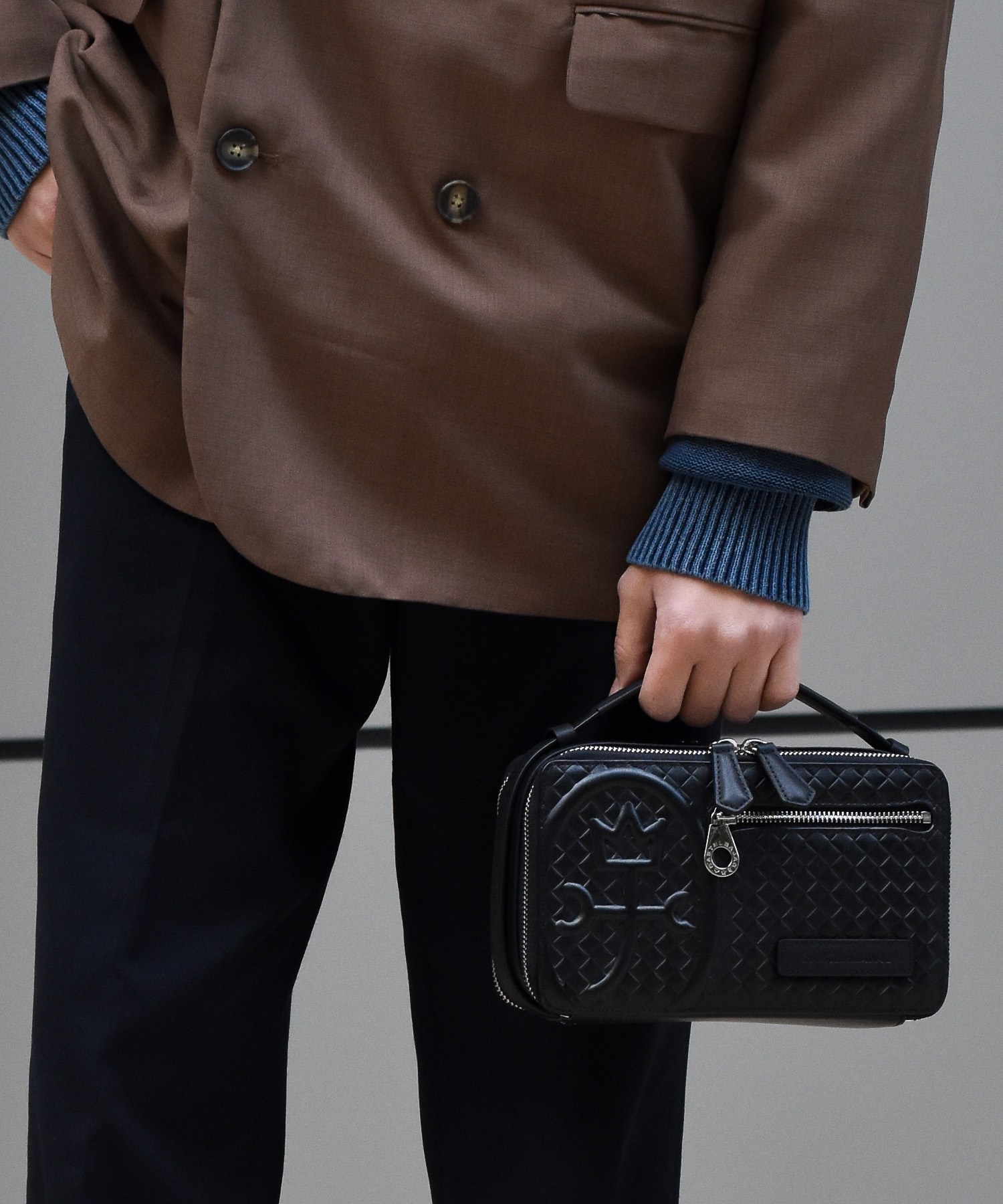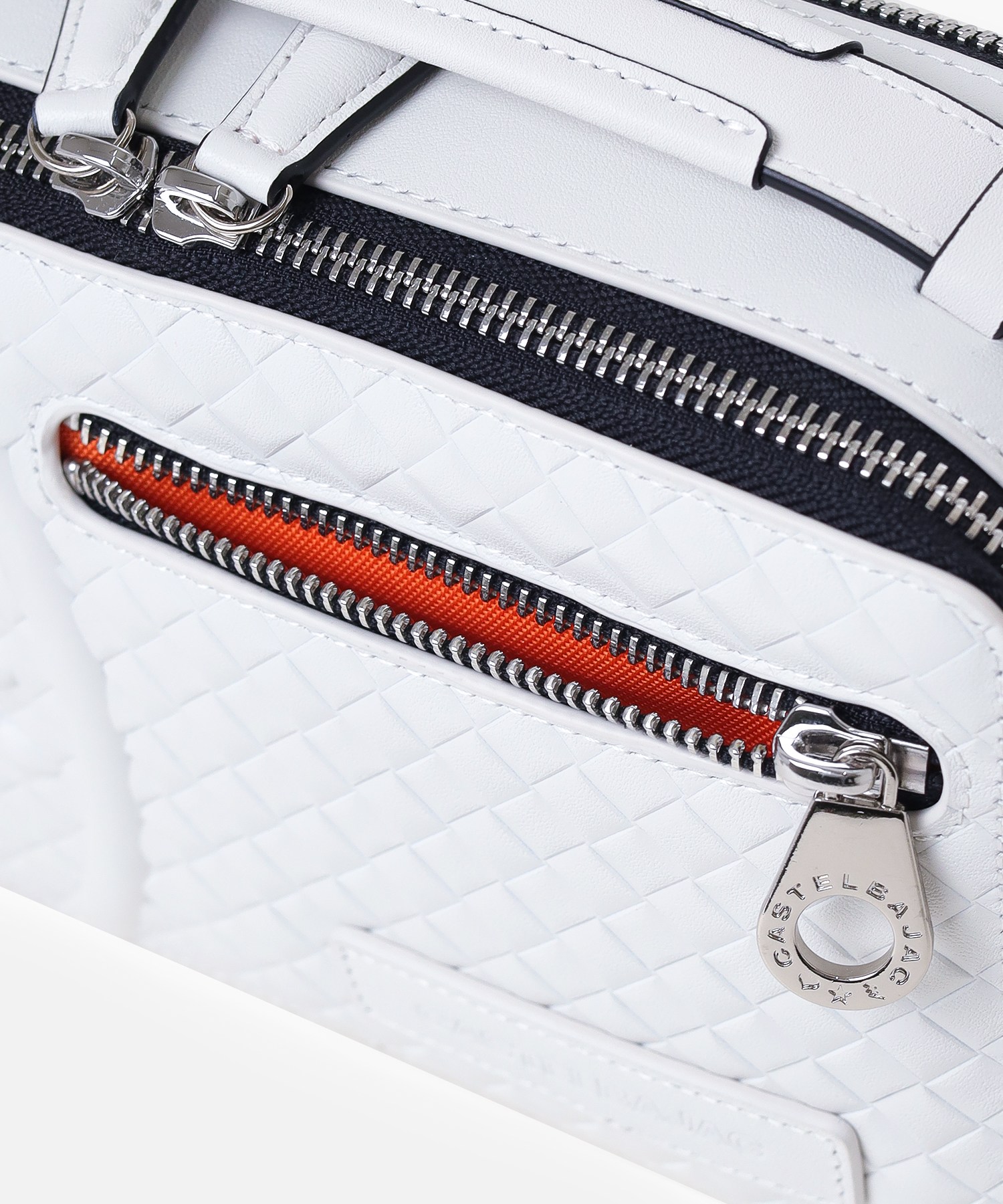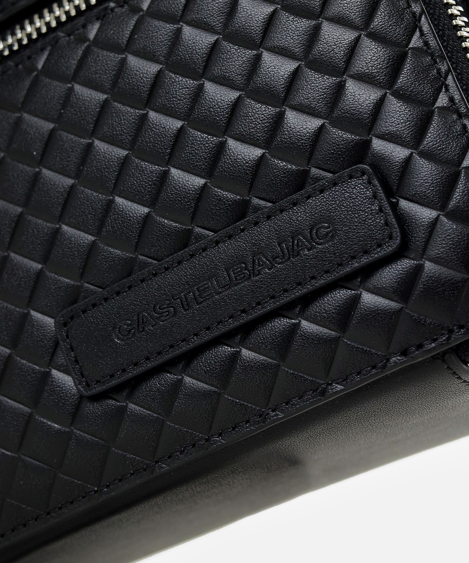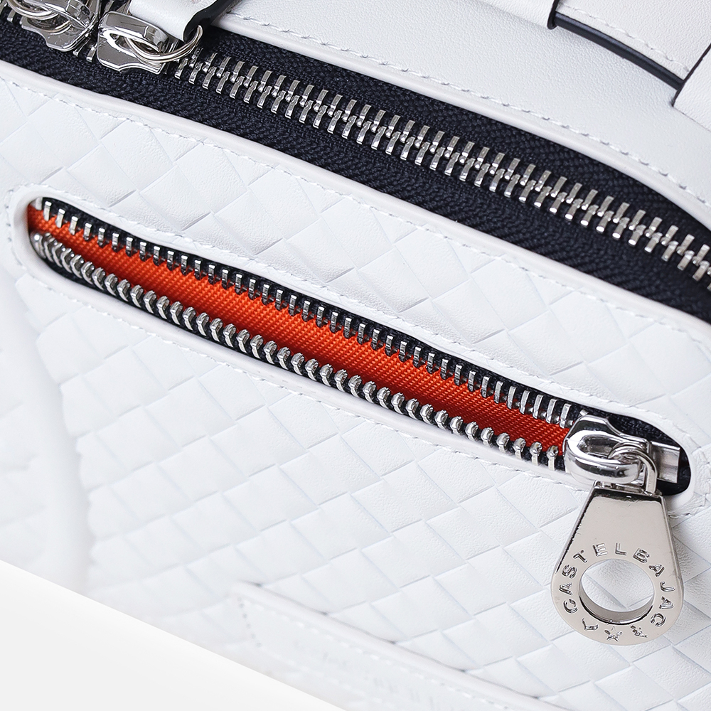 本体素材に使われているレザーには、型押しでメッシュを表現したソフトなレザーを使用しています。凹凸のある柔らかなこの型押しは、バッグを高級感のあるデザインに印象付けます。