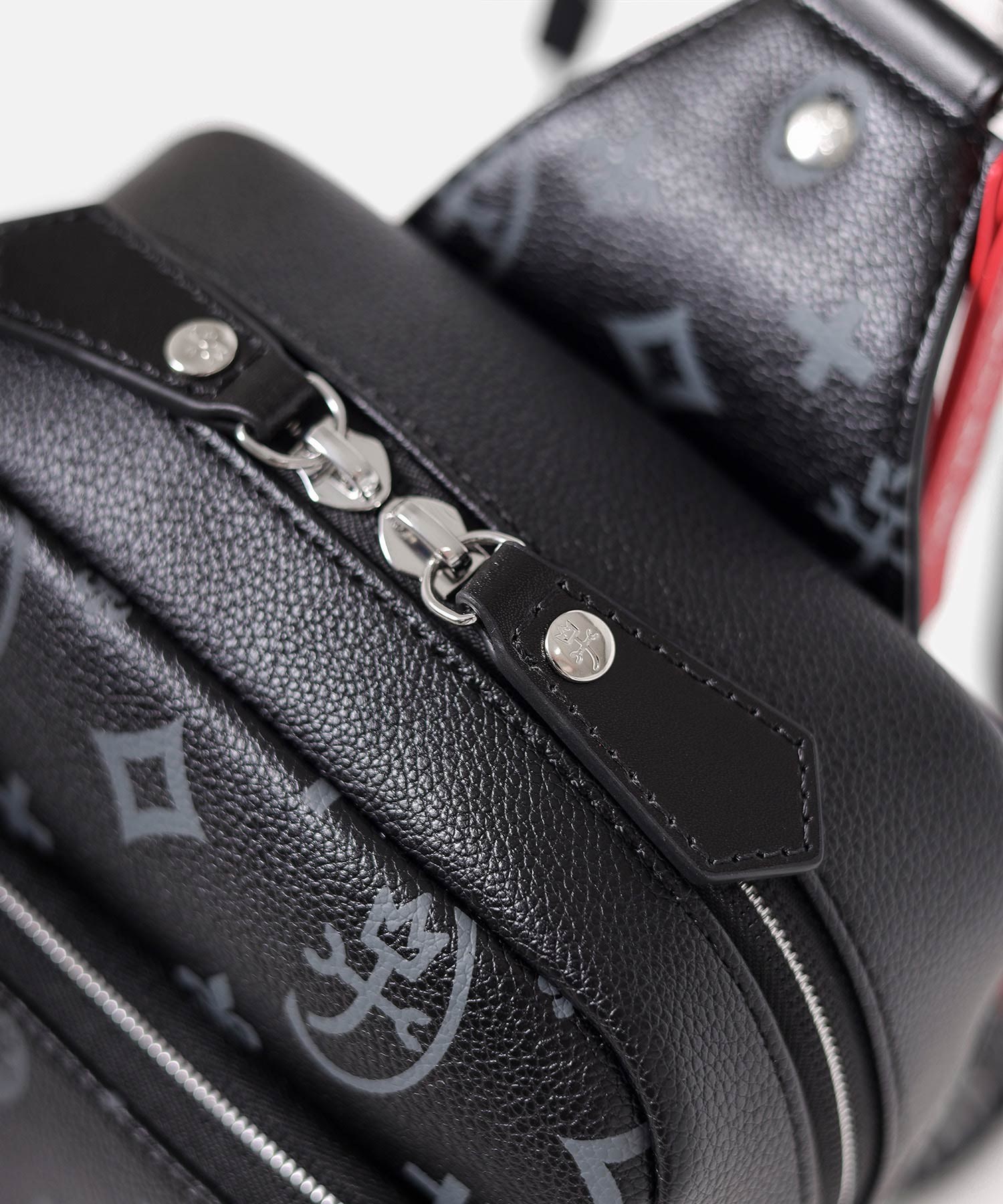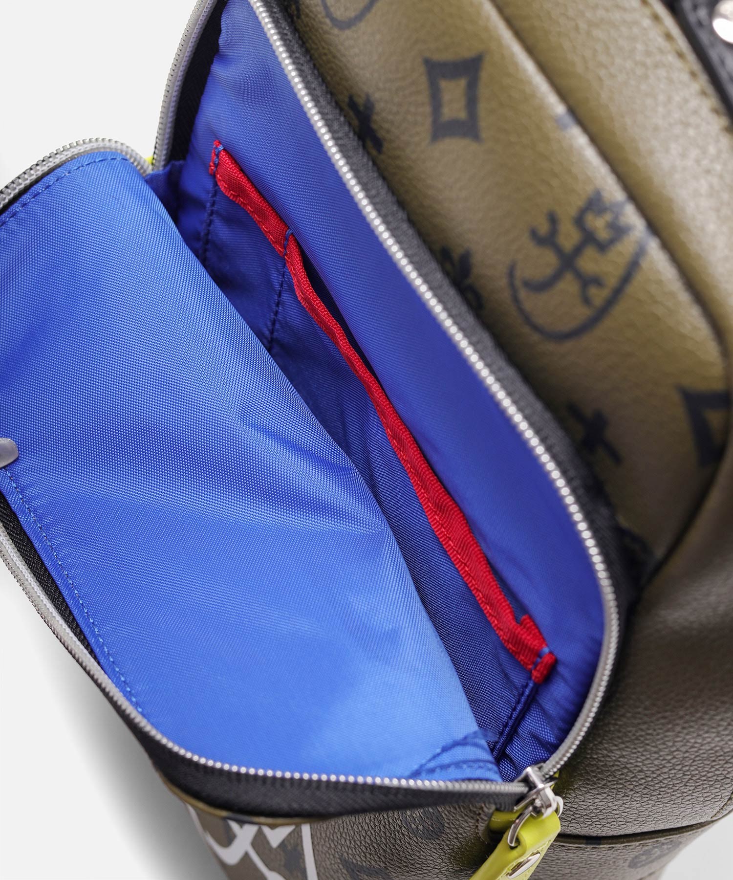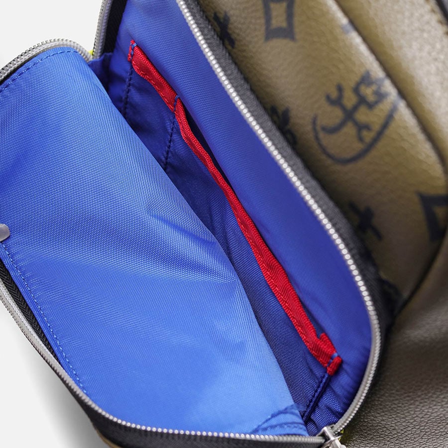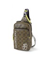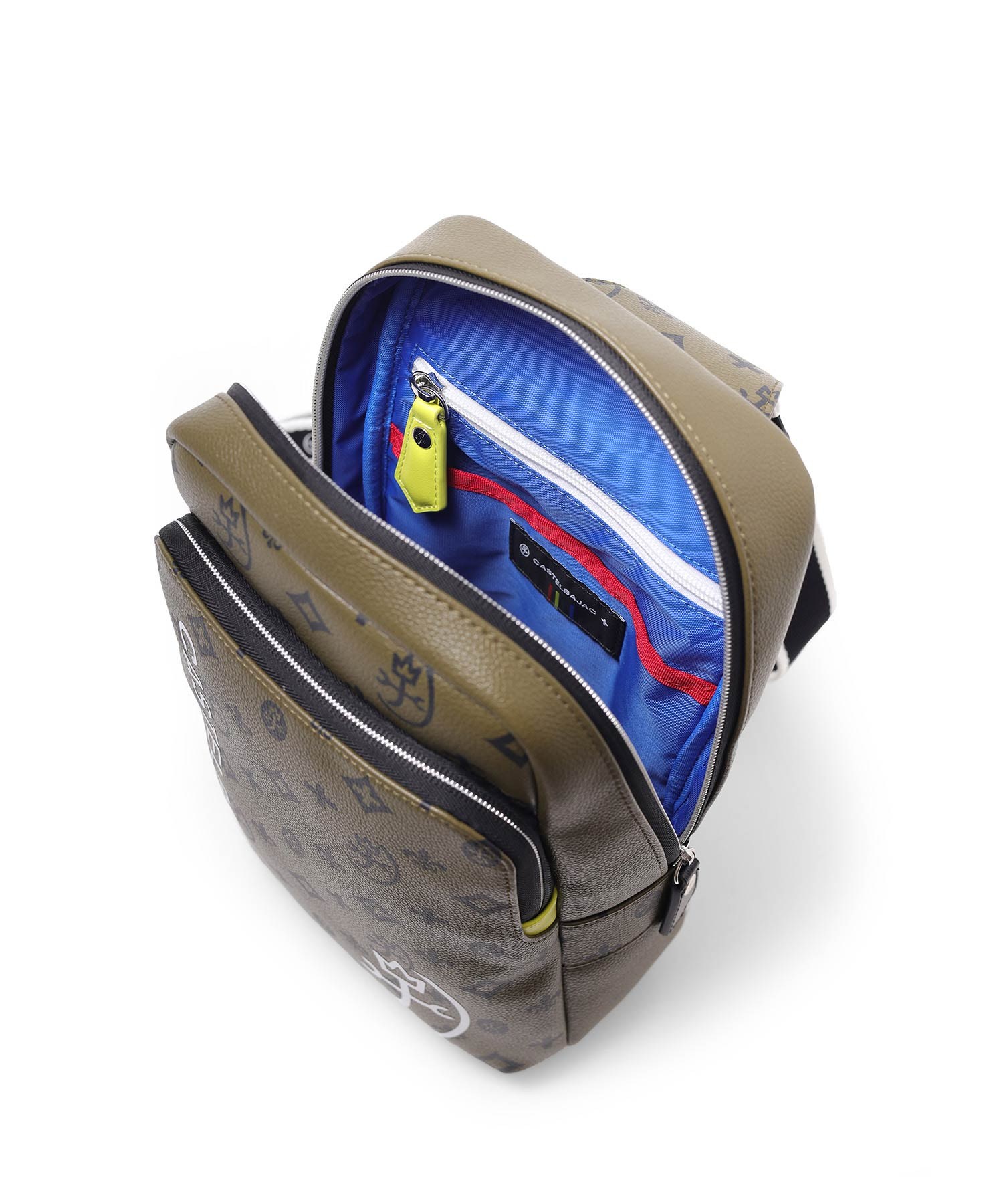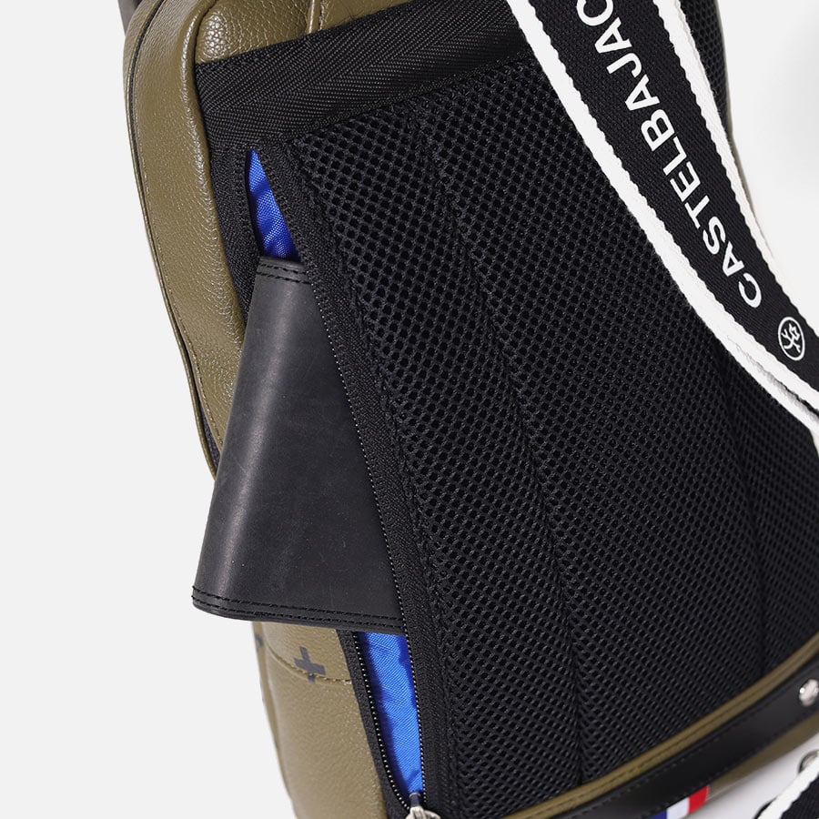 バッグの本体色と差し色にもなるアクセントカラーのコンビネーションが魅力のカステルバジャックのワンショルダーバッグ。本体素材はシボ感のある合成皮革を使用し、カバンの前面や背面にカステルバジャックのオリジナルモノグラム柄をプリントしました。付属のキーホルダーがアクセントとなっています。