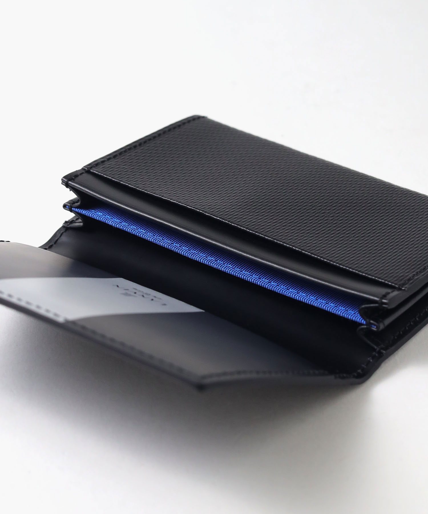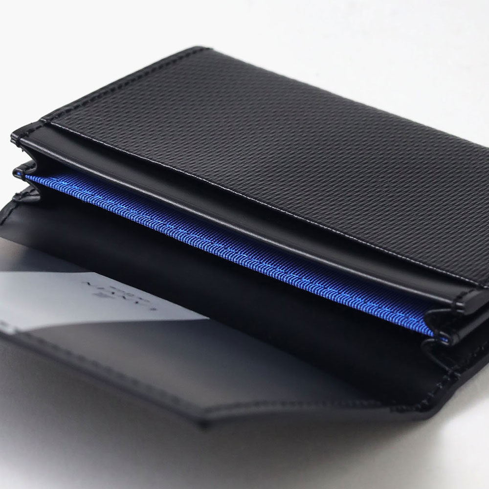 仕切り付きのメインルームは名刺を整理して収納でき、2つのカードポケットは名刺の仕分けやよく使うカードの収納に便利です。また、内装のシルバーラインがさりげないデザインポイントとなっています。