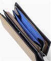 内側にはカード段が10、フリーポケットが4つあり、小銭入れは仕切り付きで中が見やすく、さらに小銭入れ内にカードポケットを2つ備えているためカード類も一緒に収納可能です。札入れは2室構造のため紙幣を分けて収納可能で、背面のカードポケットはICカードやクレジットカードの収納に便利です。