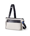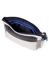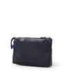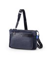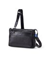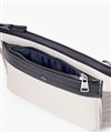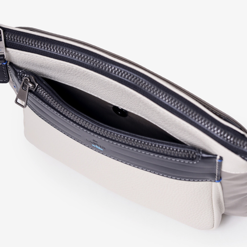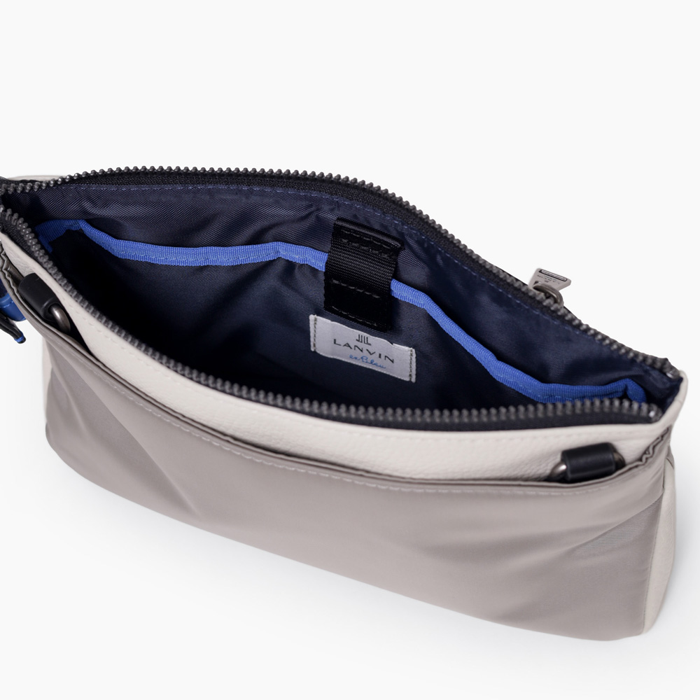 上品なテイストのカジュアルショルダーバッグに、3種類の素材を巧みにMIXしたLANVIN en Bleuのクラッチバッグ兼用ショルダーバッグ。ベルト状のストライプエンボス加工がブランドらしい洗練されたポイントとなっています。ショルダーベルトは取り外し可能で、シーンに合わせてクラッチバッグとしても利用できます。