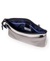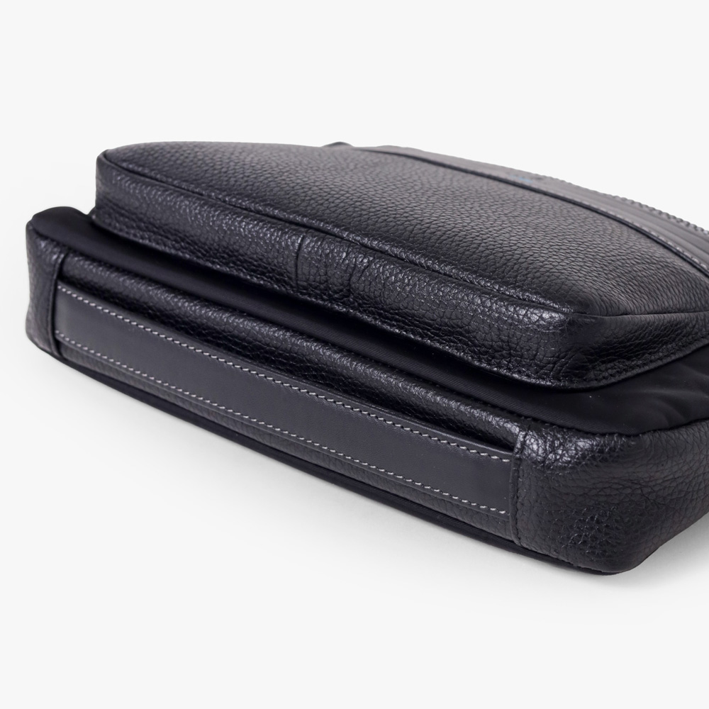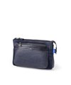 ファスナー下に配されたベルト状のストライプエンボス部分は、心材を入れたような独特な凹凸感を出し、洗練された印象を与えます。ファスナーには「METALUXE Tough」を使用し、ガラスファイバーを練り込んだ高強度化と、通常の金属ファスナーよりも軽量な仕上がりを実現。ブランドの象徴的なブルーカラーも、アクセントとして魅力を加えています。
