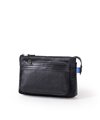 メインルームは、長財布が入るコンパクトなサイズ感です。内側には、オープンポケット、ファスナーポケット、オープンポケットが搭載。前面ポケットはファスナーポケットとホックポケットの2層式で、背面にもホックポケットがございます。また底部分には手を通すことができるハンドルが付いているため、クラッチバッグにした際にしっかりと手にフィットし安心してお持ちいただけます。
