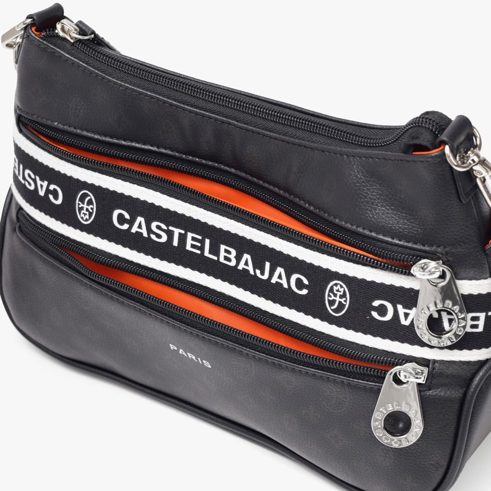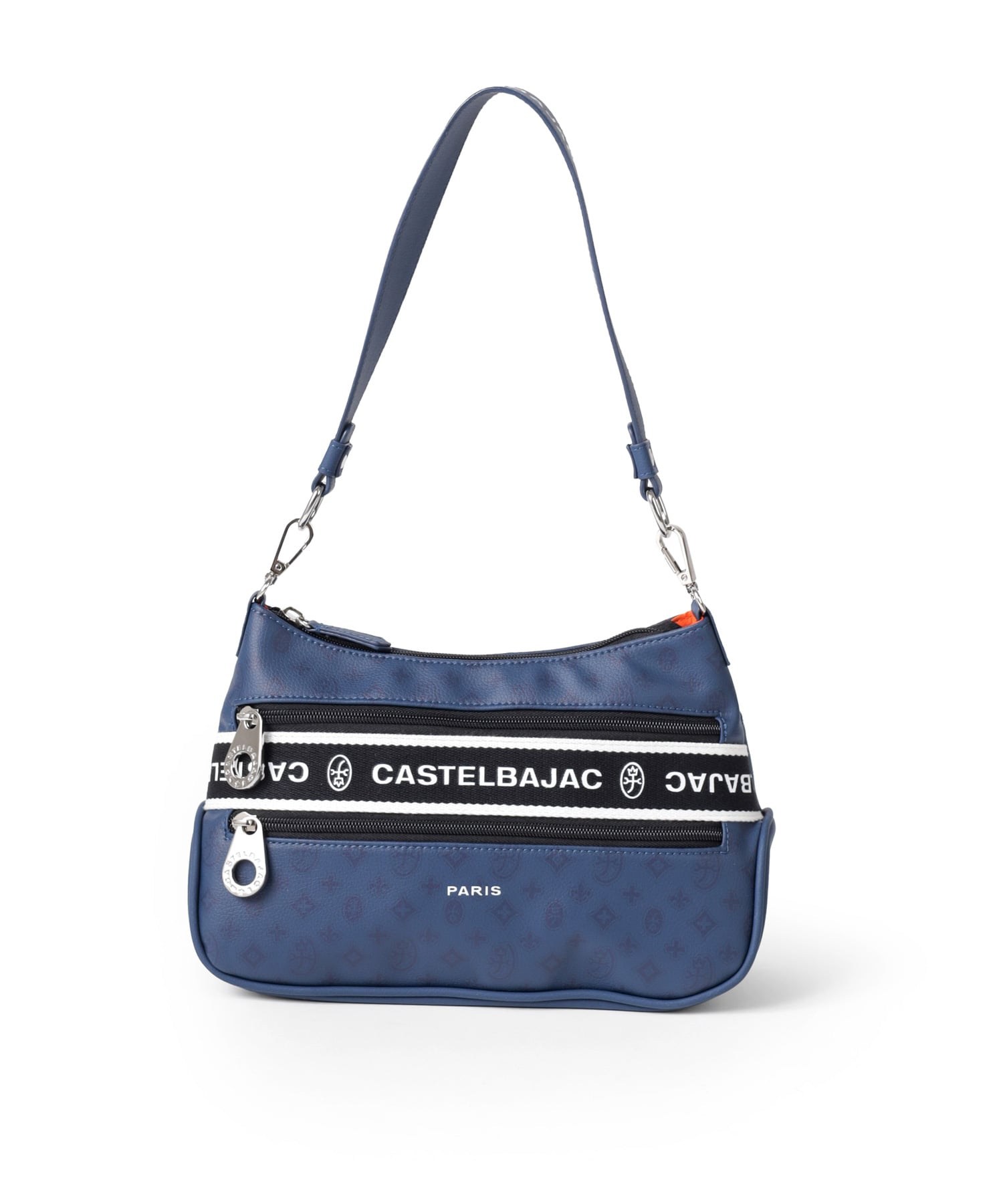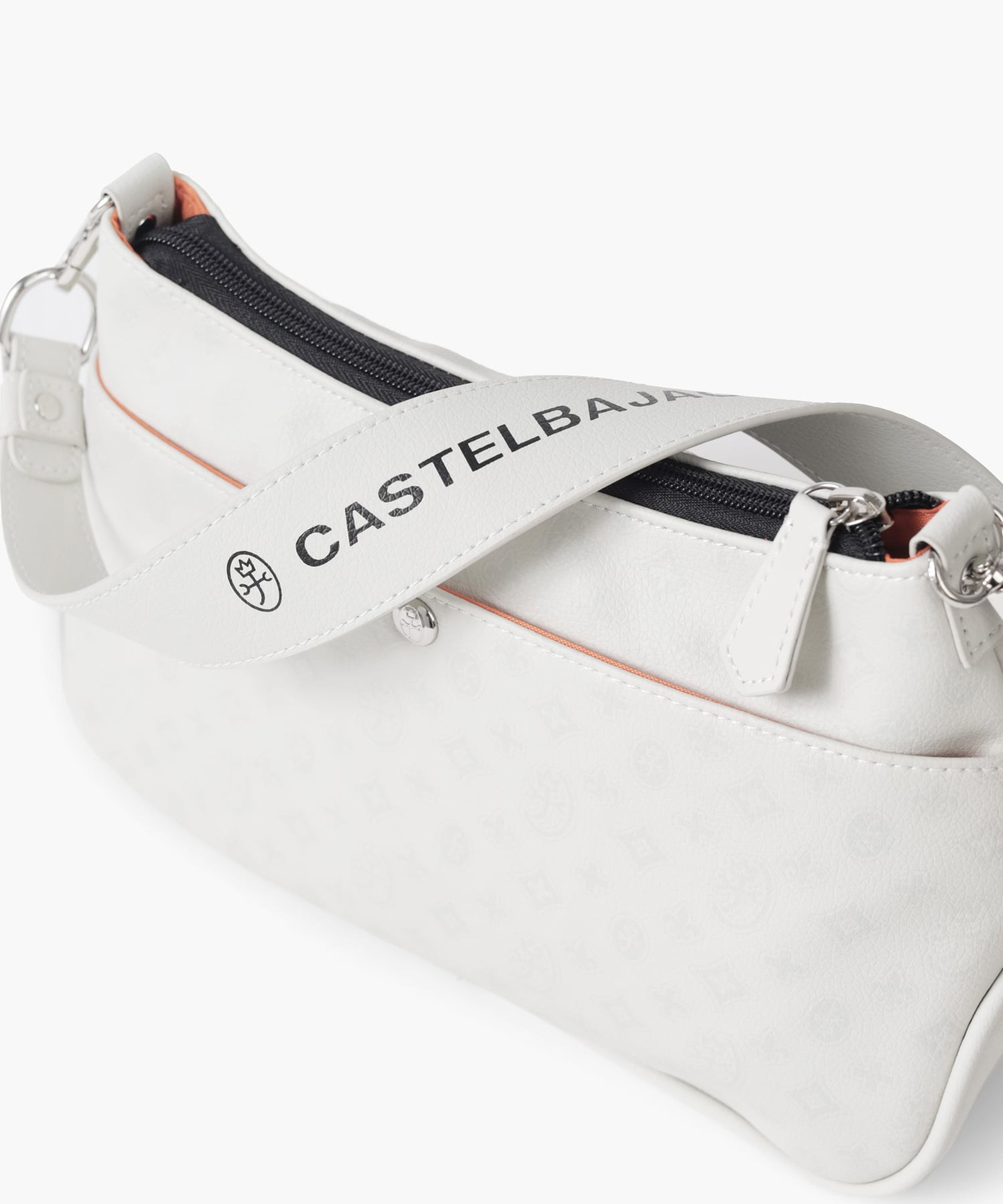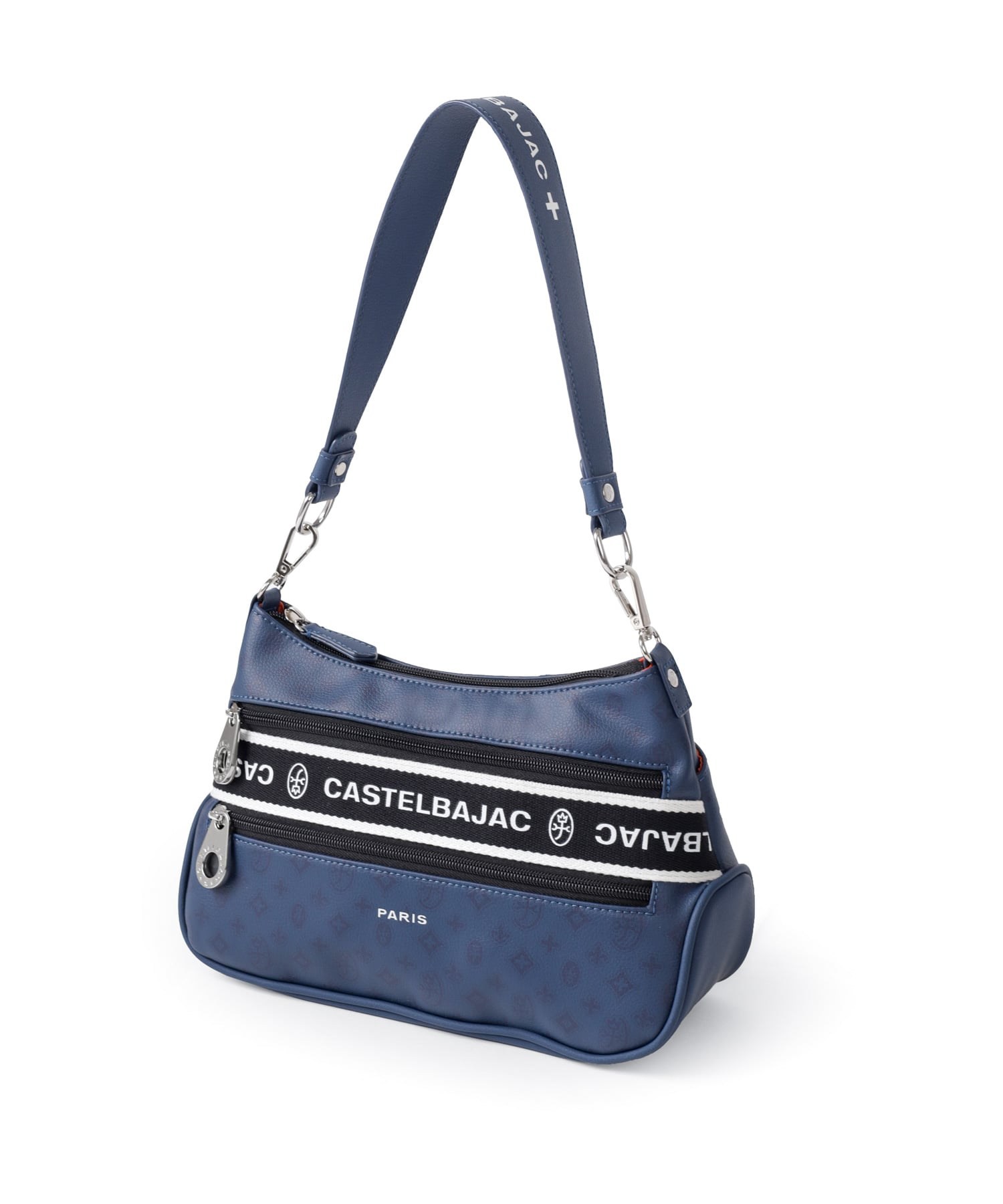 タウンからトラベルまで幅広く使える多機能なカステルバジャックのショルダーバッグ。取り外し可能なハンドルが付属し、ハンドバッグとしてもお使いいただける2WAY仕様です。このショルダーバッグの素材には、プリントにWコーティングを施し、奥深く透明感のある生地に仕上げています。耐久性と美しさを兼ね備え、あらゆるシーンでスタイリッシュにお使いいただけます。