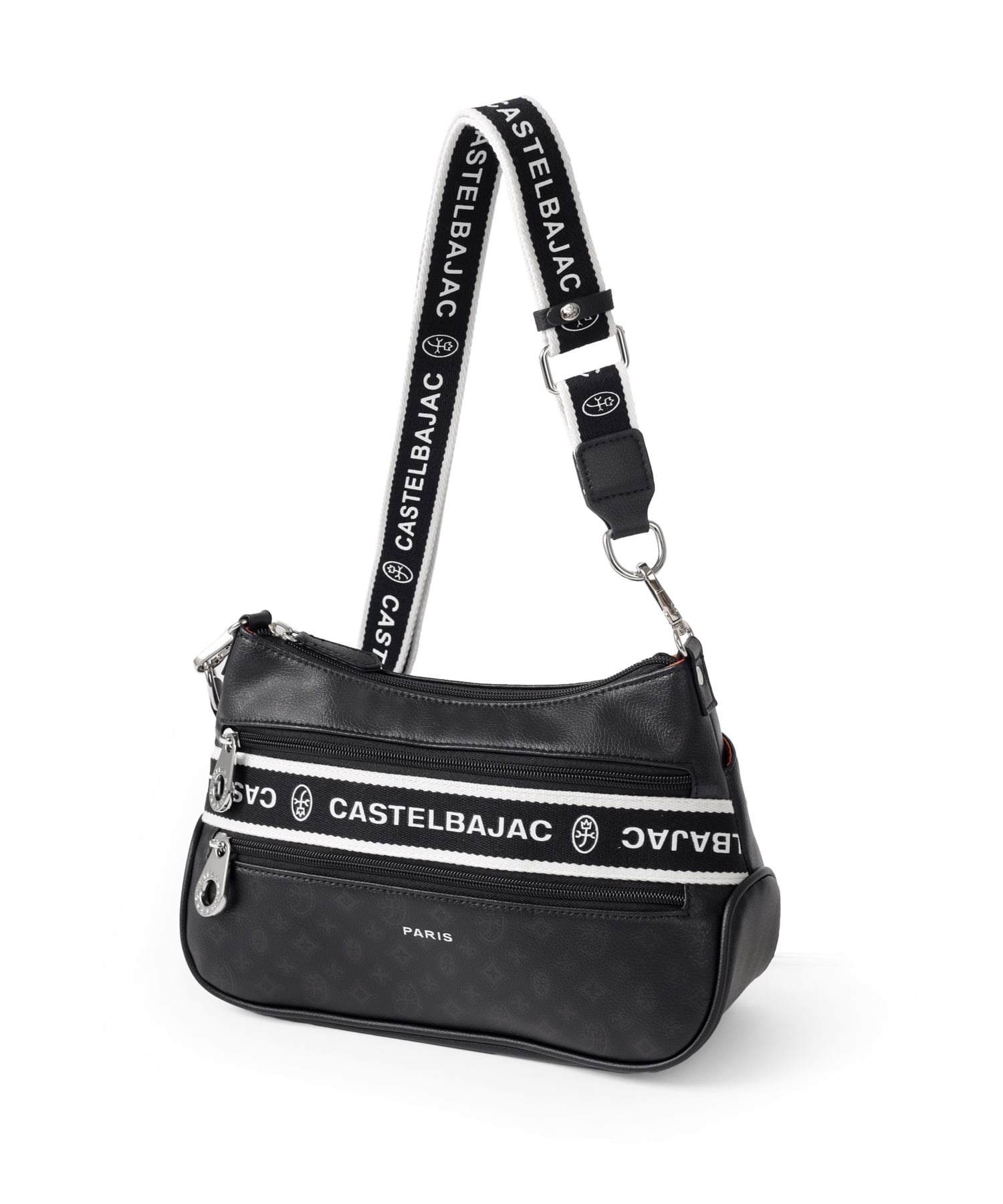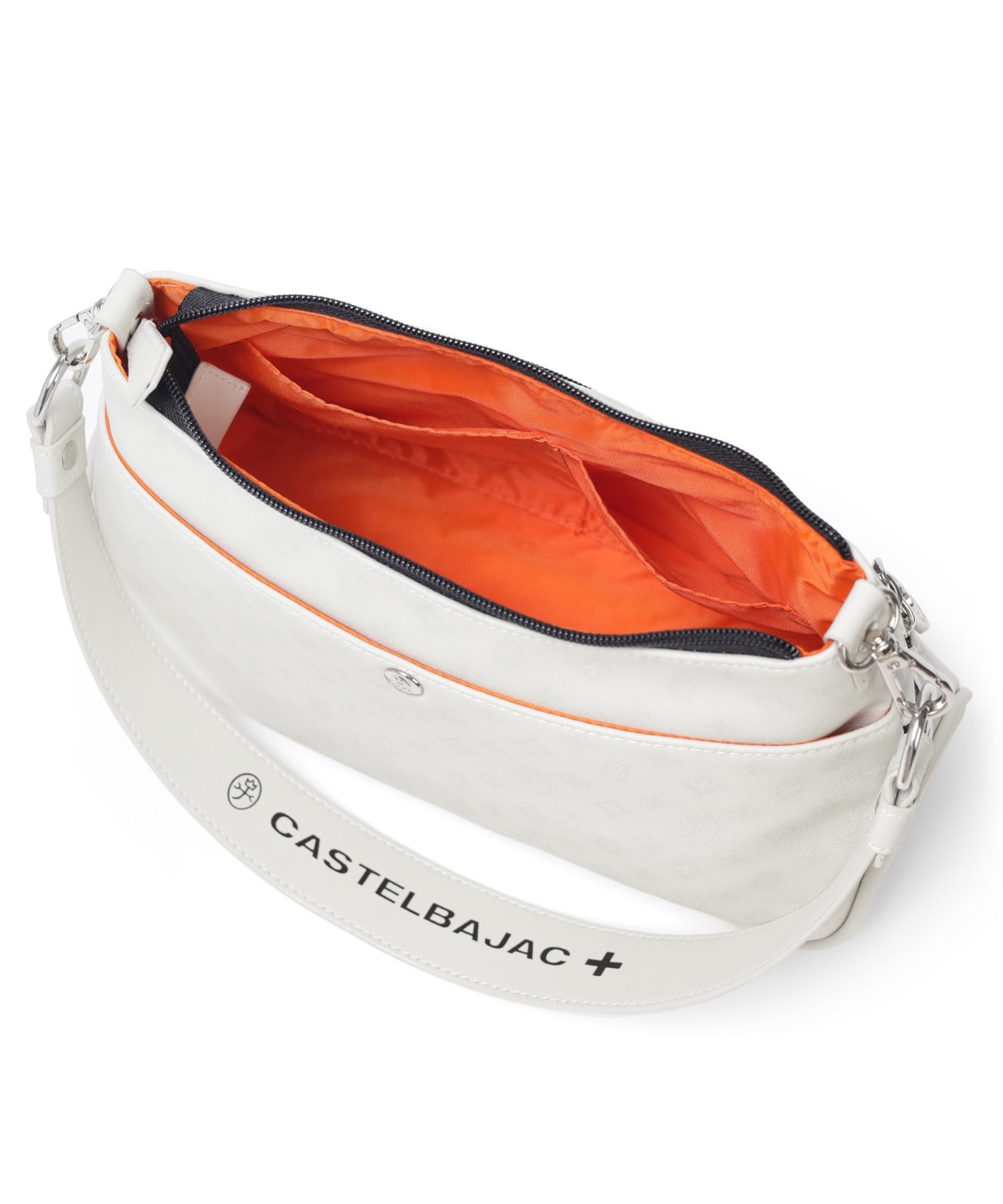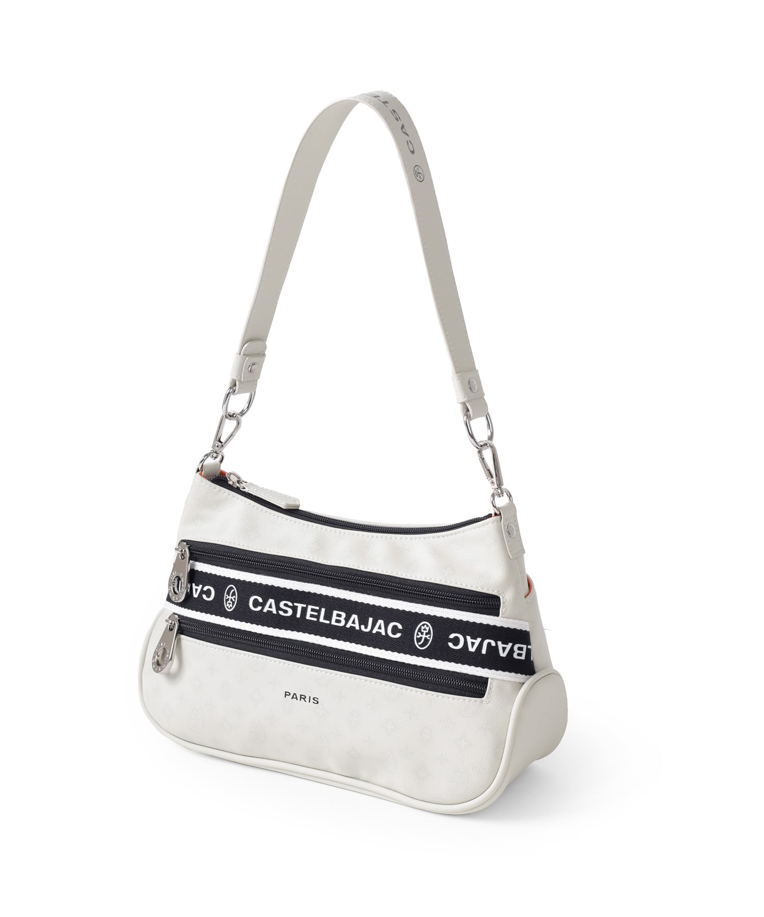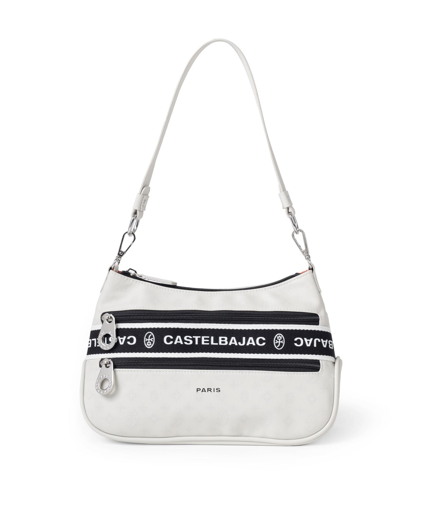 タウンからトラベルまで幅広く使える多機能なカステルバジャックのショルダーバッグ。取り外し可能なハンドルが付属し、ハンドバッグとしてもお使いいただける2WAY仕様です。このショルダーバッグの素材には、プリントにWコーティングを施し、奥深く透明感のある生地に仕上げています。耐久性と美しさを兼ね備え、あらゆるシーンでスタイリッシュにお使いいただけます。