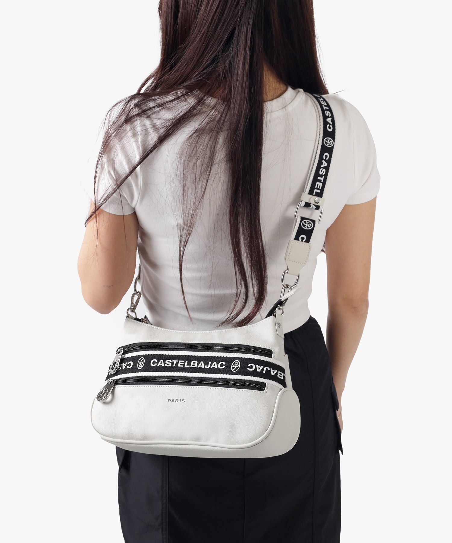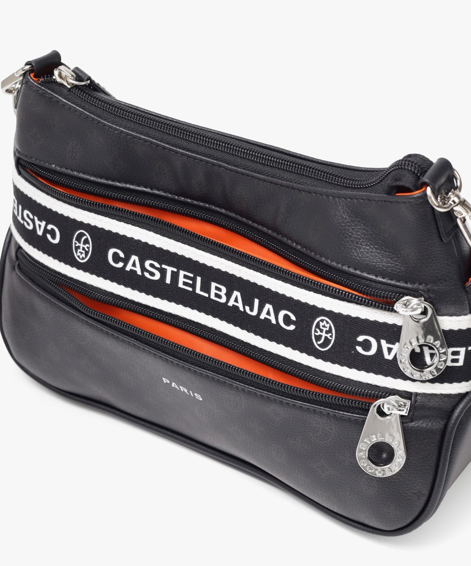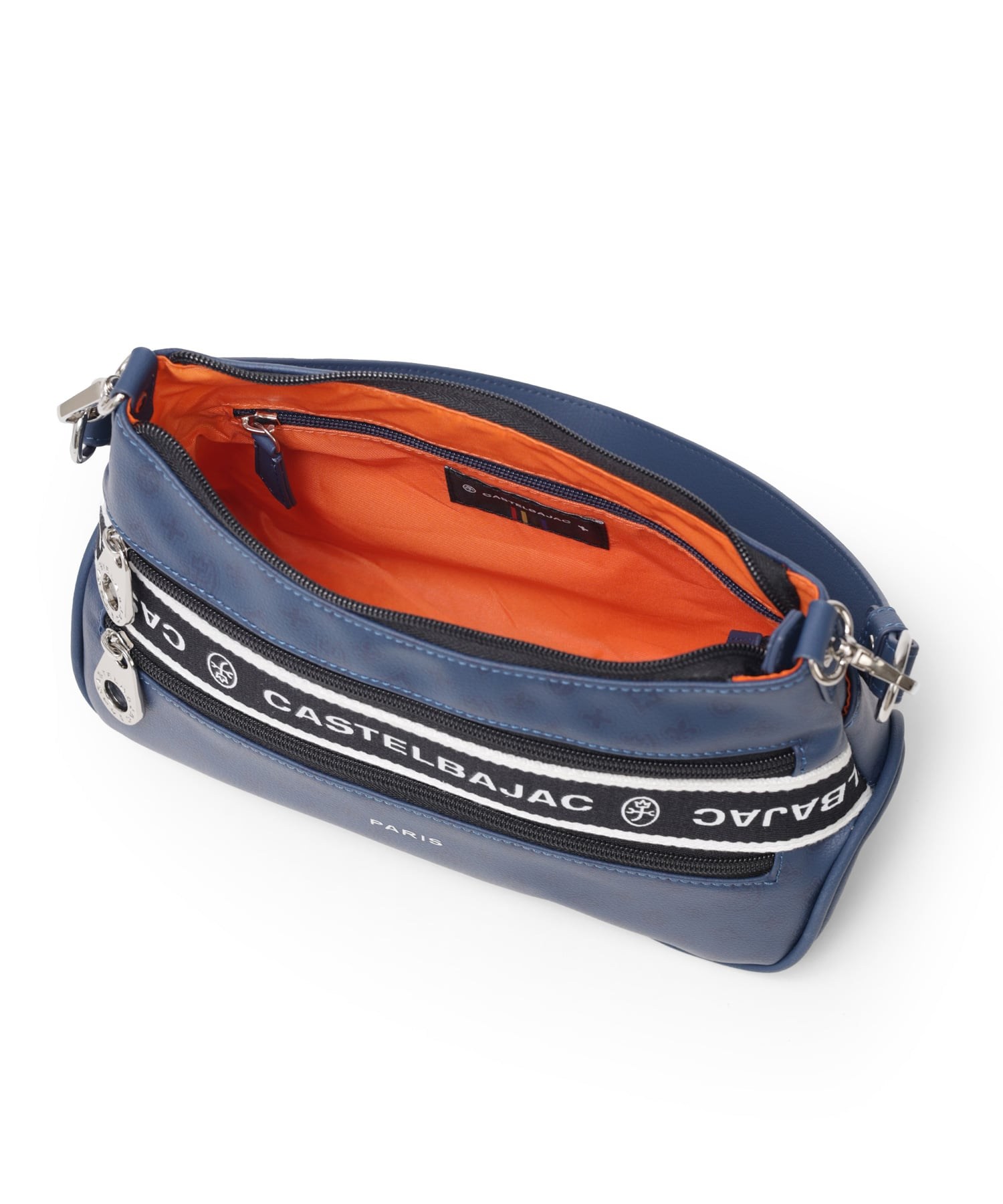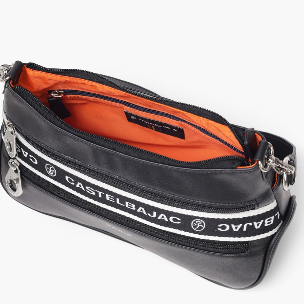 タウンからトラベルまで幅広く使える多機能なカステルバジャックのショルダーバッグ。取り外し可能なハンドルが付属し、ハンドバッグとしてもお使いいただける2WAY仕様です。このショルダーバッグの素材には、プリントにWコーティングを施し、奥深く透明感のある生地に仕上げています。耐久性と美しさを兼ね備え、あらゆるシーンでスタイリッシュにお使いいただけます。