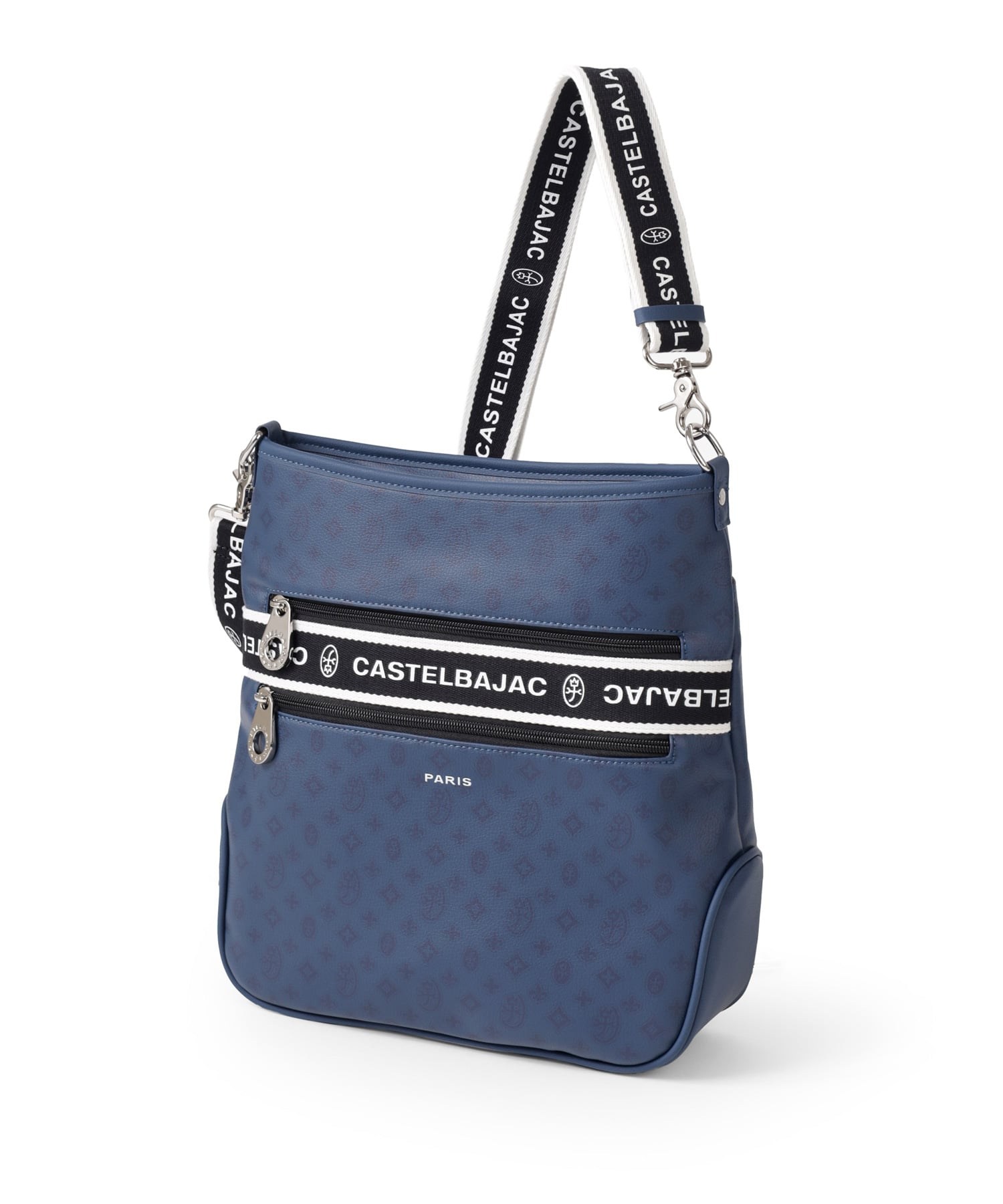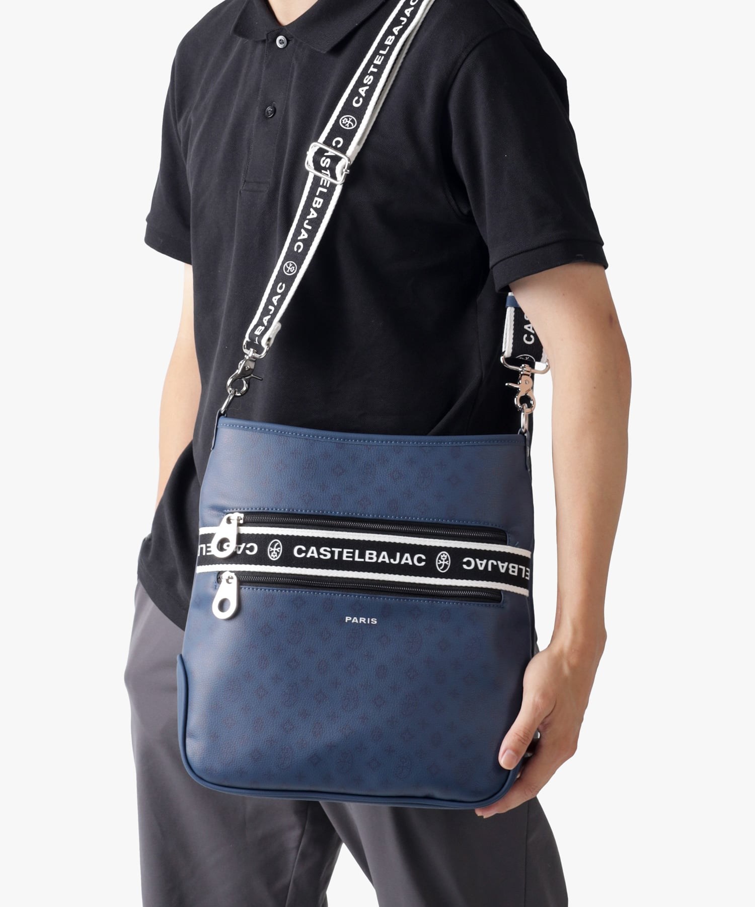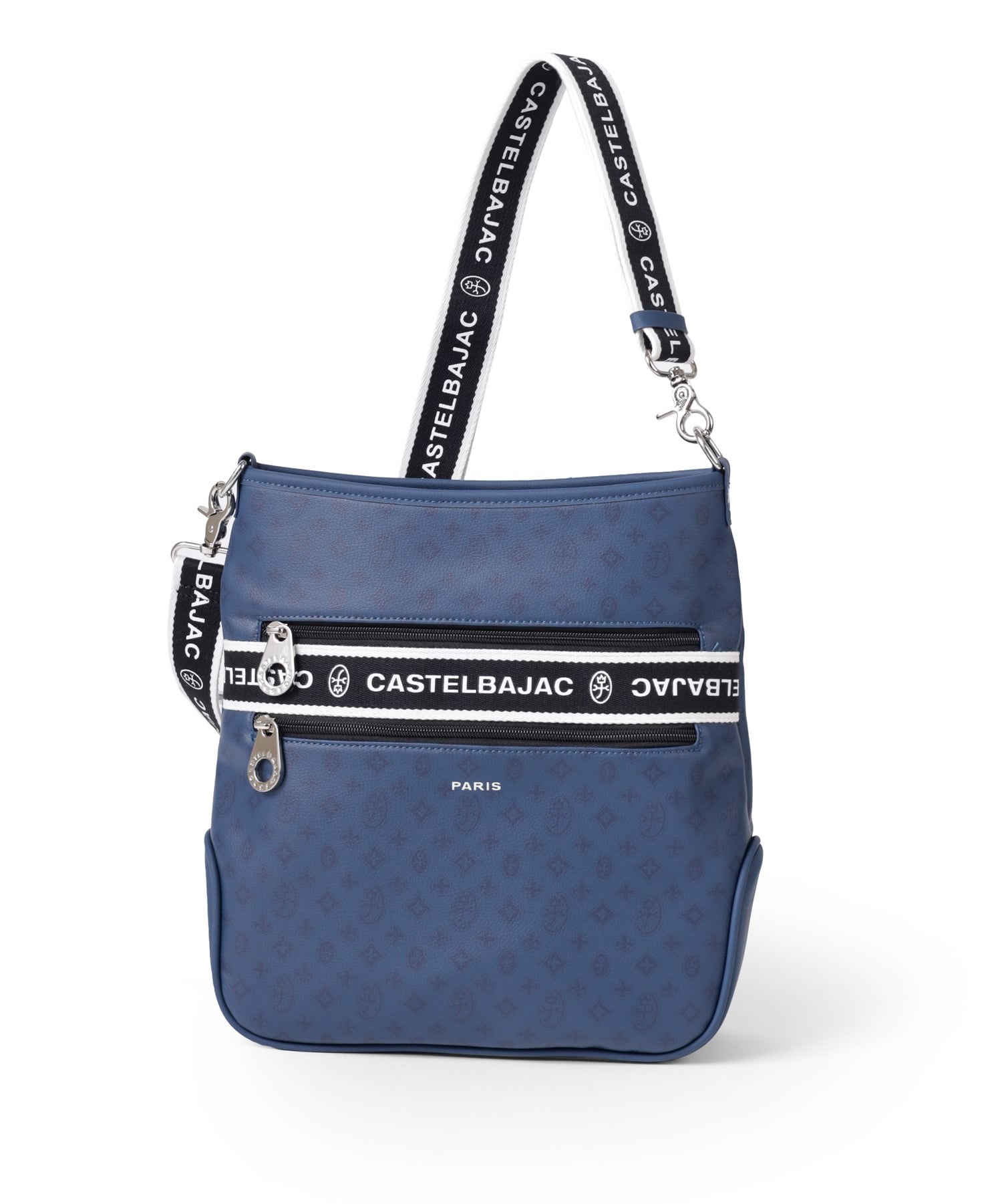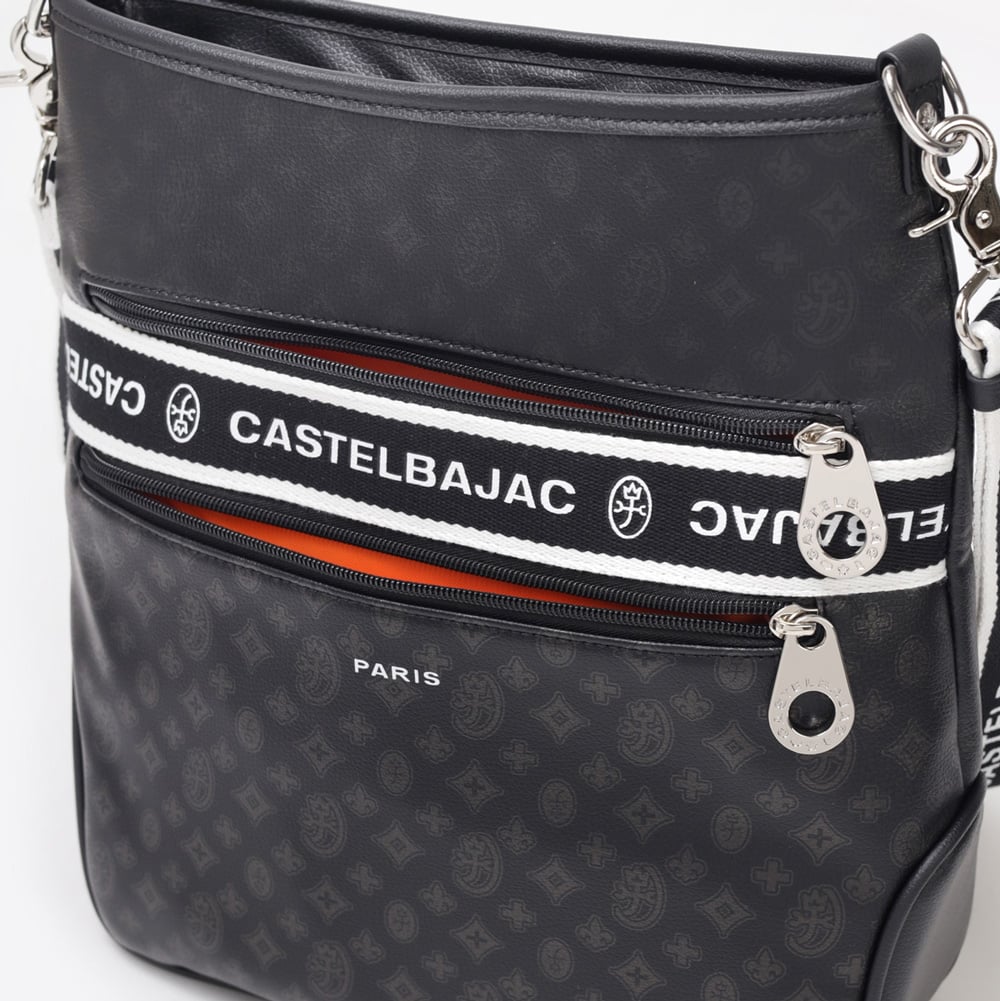 タウンからトラベルまで幅広く使える多機能なカステルバジャックのA4ジャストサイズのショルダーバッグ。このショルダーバッグの素材には、プリントにWコーティングを施し、奥深く透明感のある生地に仕上げています。耐久性と美しさを兼ね備え、あらゆるシーンでスタイリッシュにお使いいただけます。