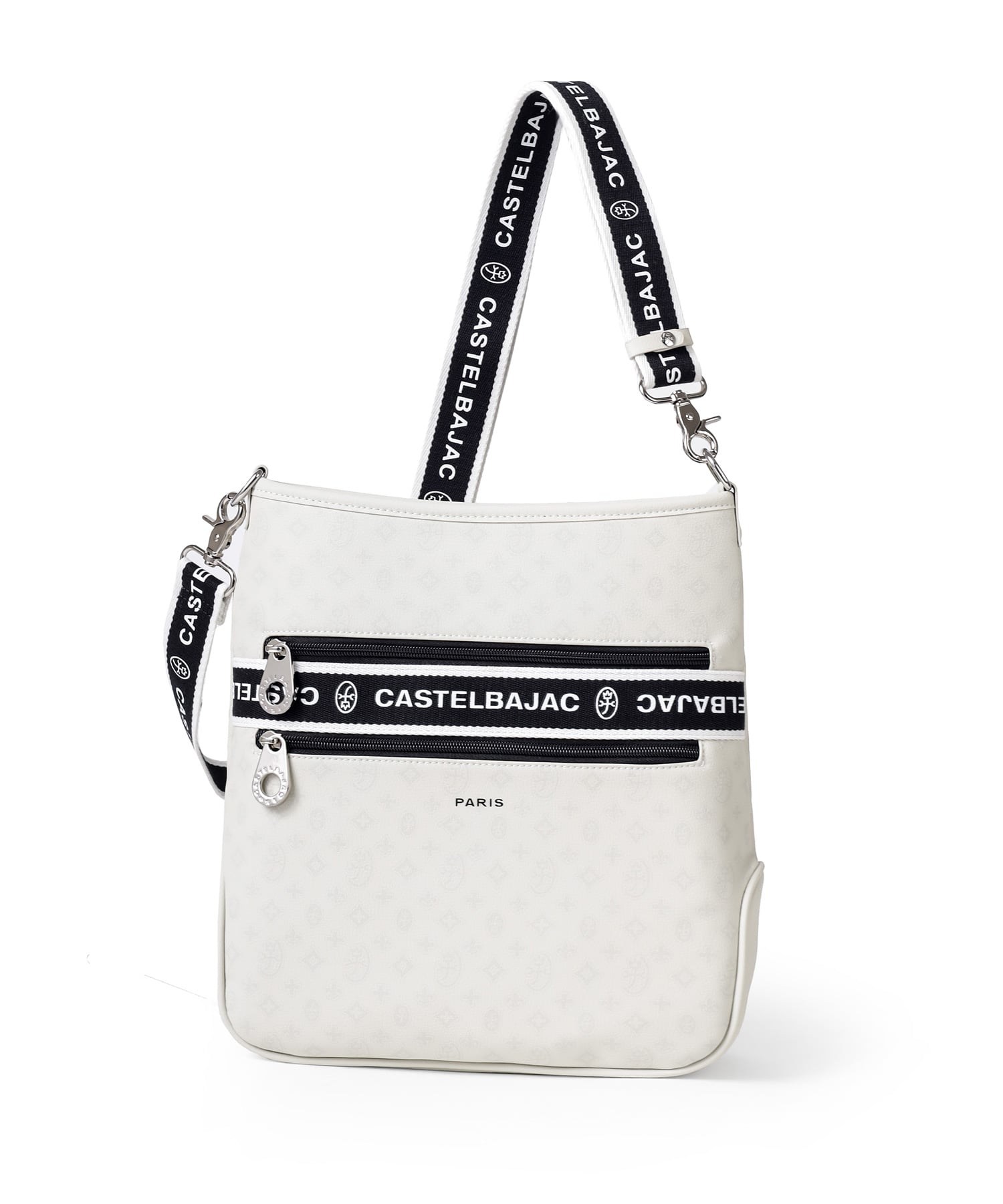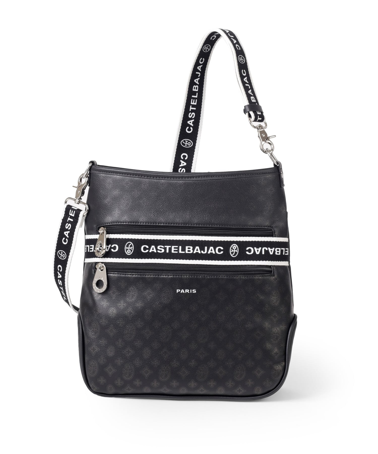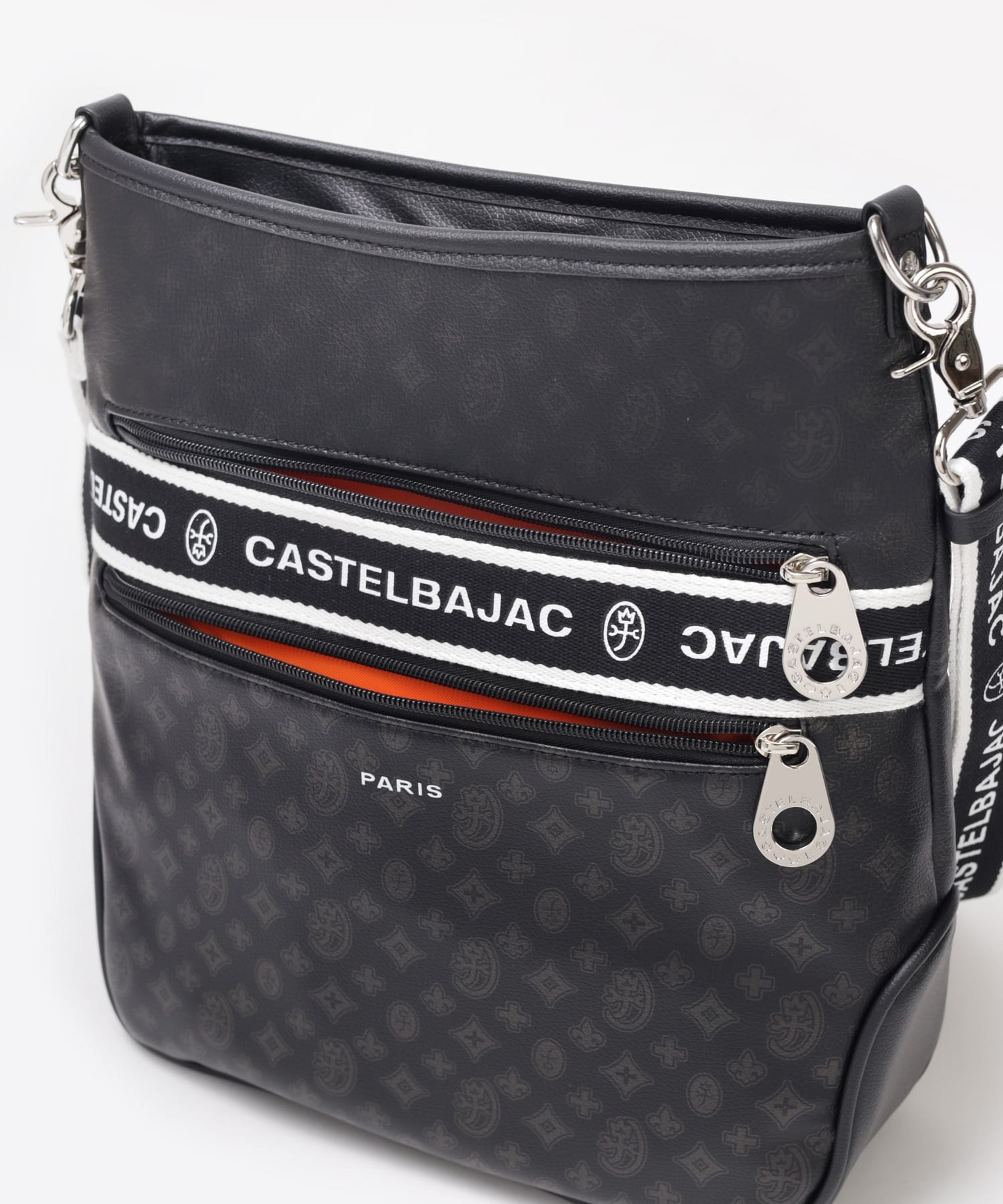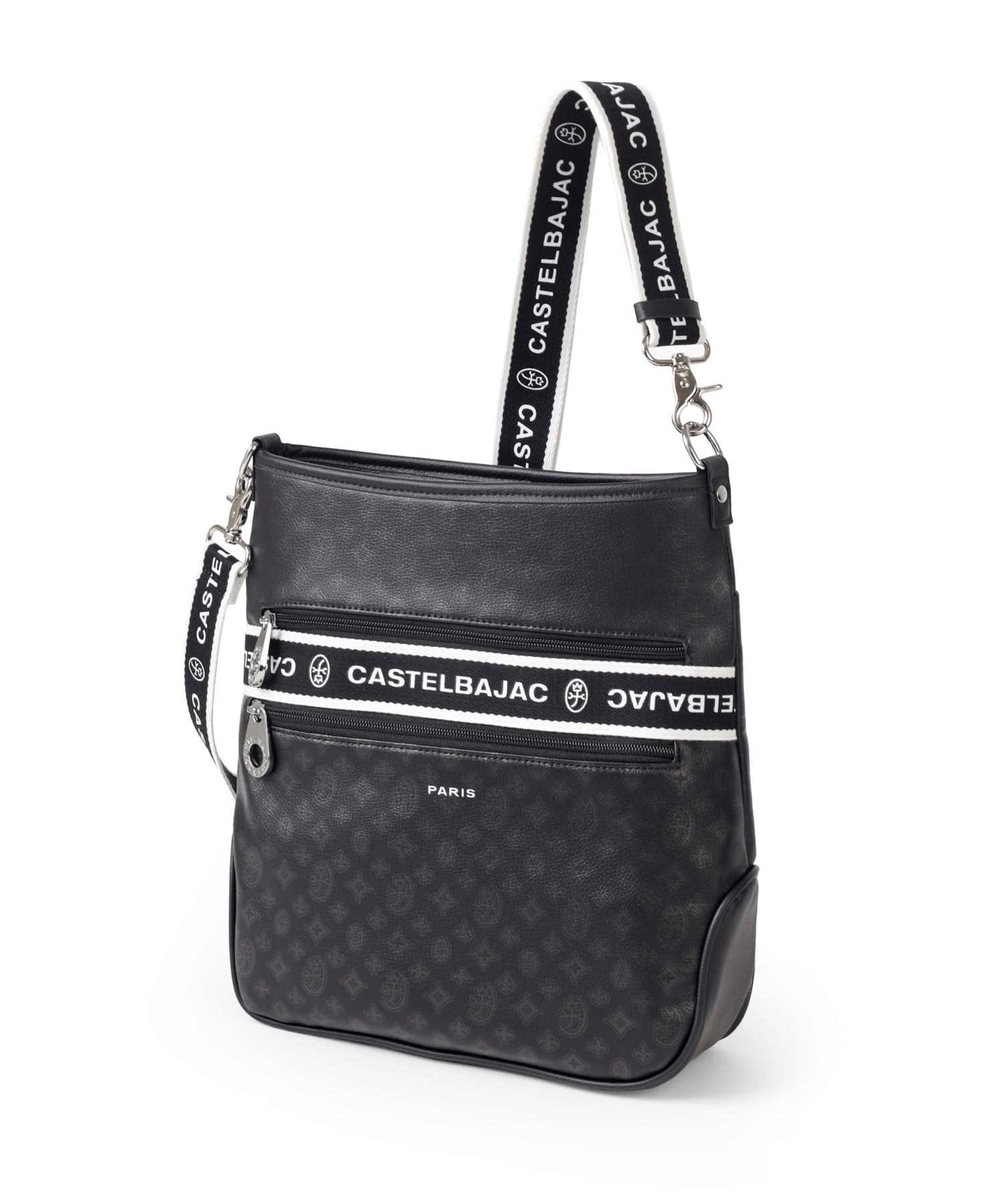 タウンからトラベルまで幅広く使える多機能なカステルバジャックのA4ジャストサイズのショルダーバッグ。このショルダーバッグの素材には、プリントにWコーティングを施し、奥深く透明感のある生地に仕上げています。耐久性と美しさを兼ね備え、あらゆるシーンでスタイリッシュにお使いいただけます。