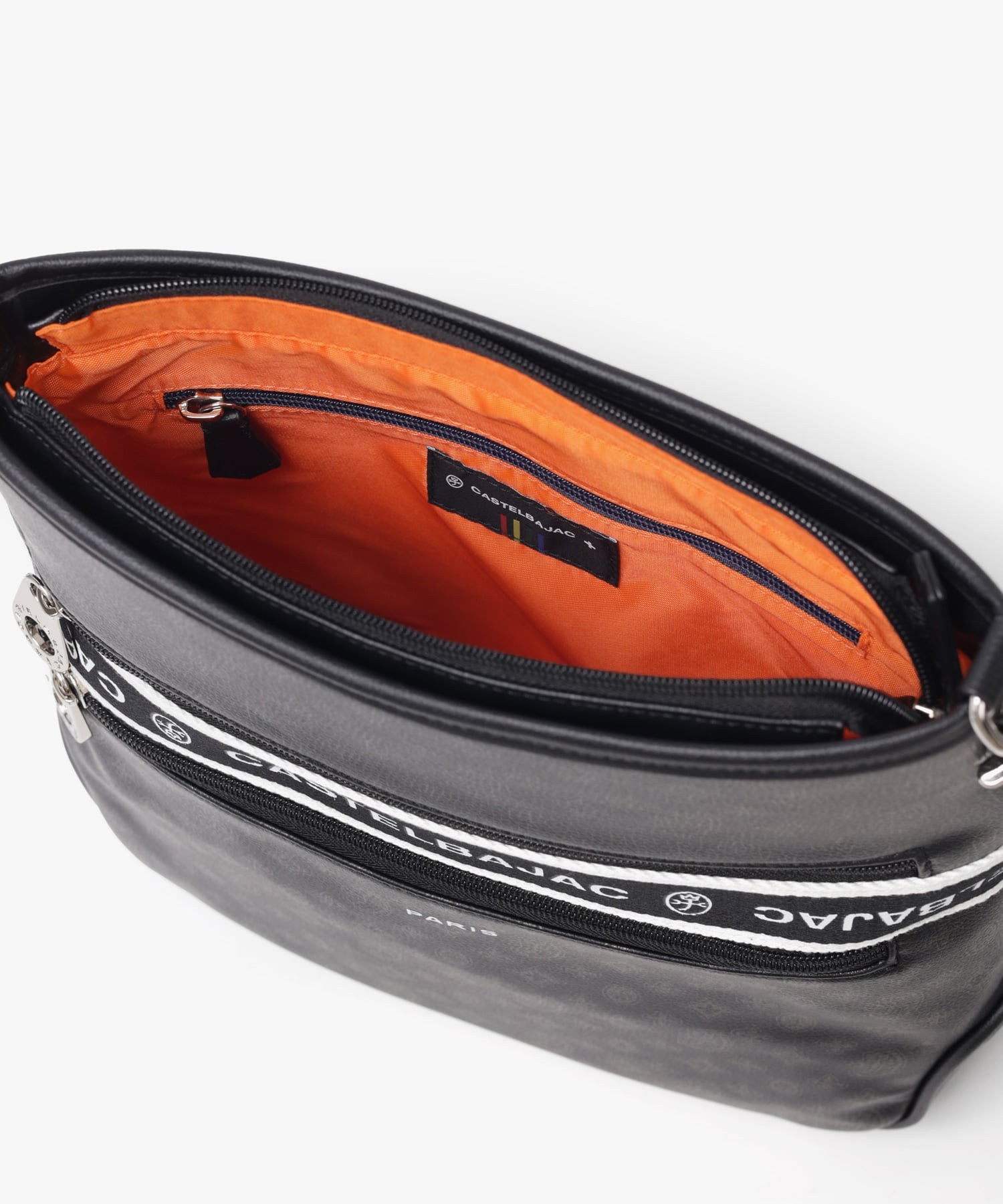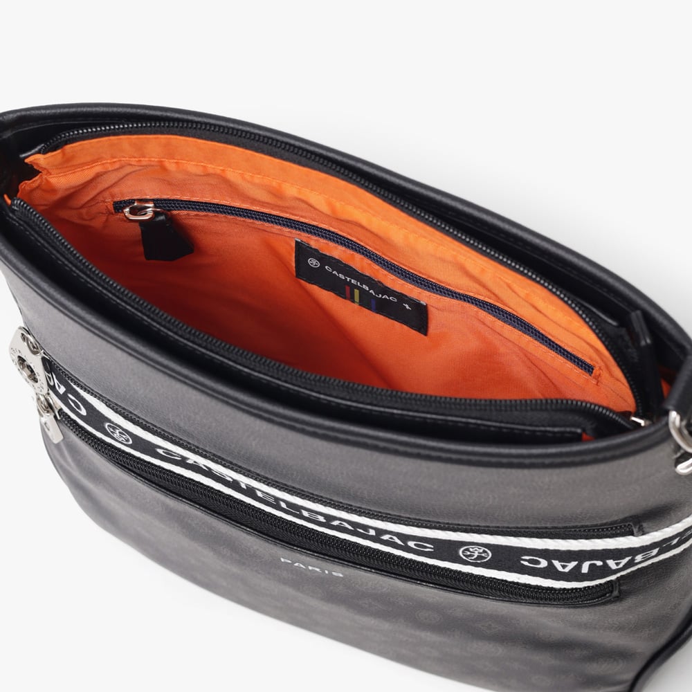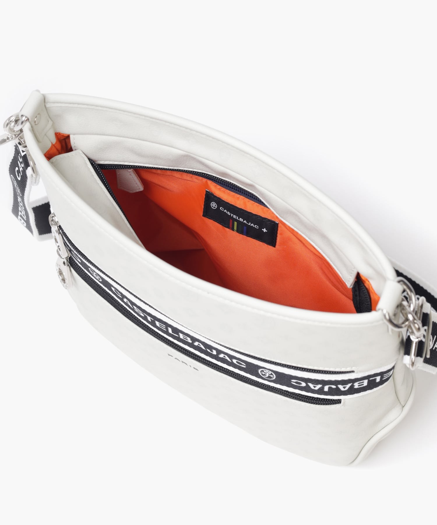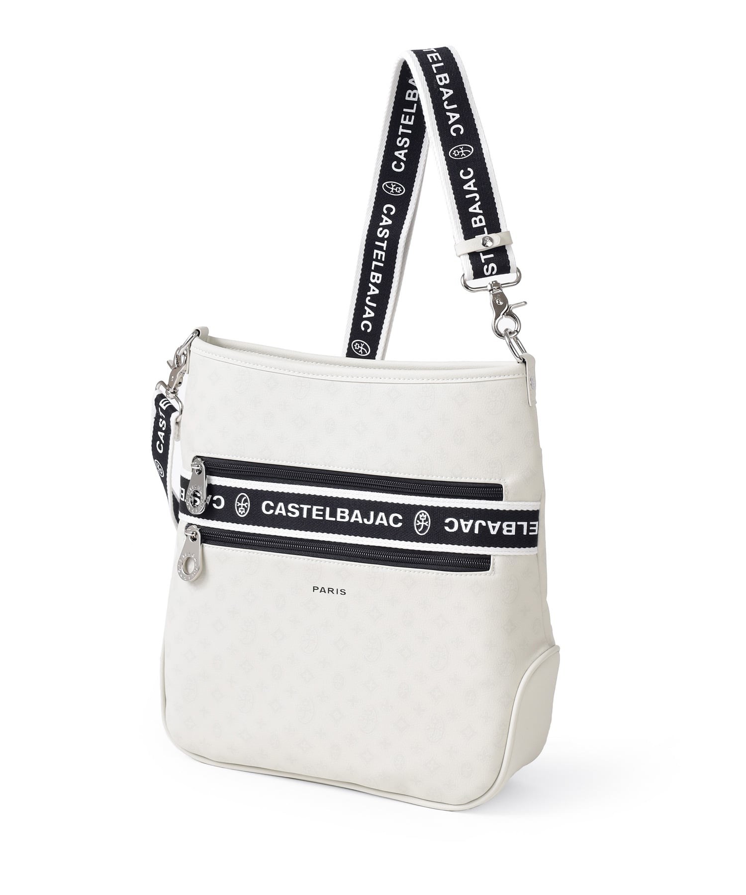 タウンからトラベルまで幅広く使える多機能なカステルバジャックのA4ジャストサイズのショルダーバッグ。このショルダーバッグの素材には、プリントにWコーティングを施し、奥深く透明感のある生地に仕上げています。耐久性と美しさを兼ね備え、あらゆるシーンでスタイリッシュにお使いいただけます。