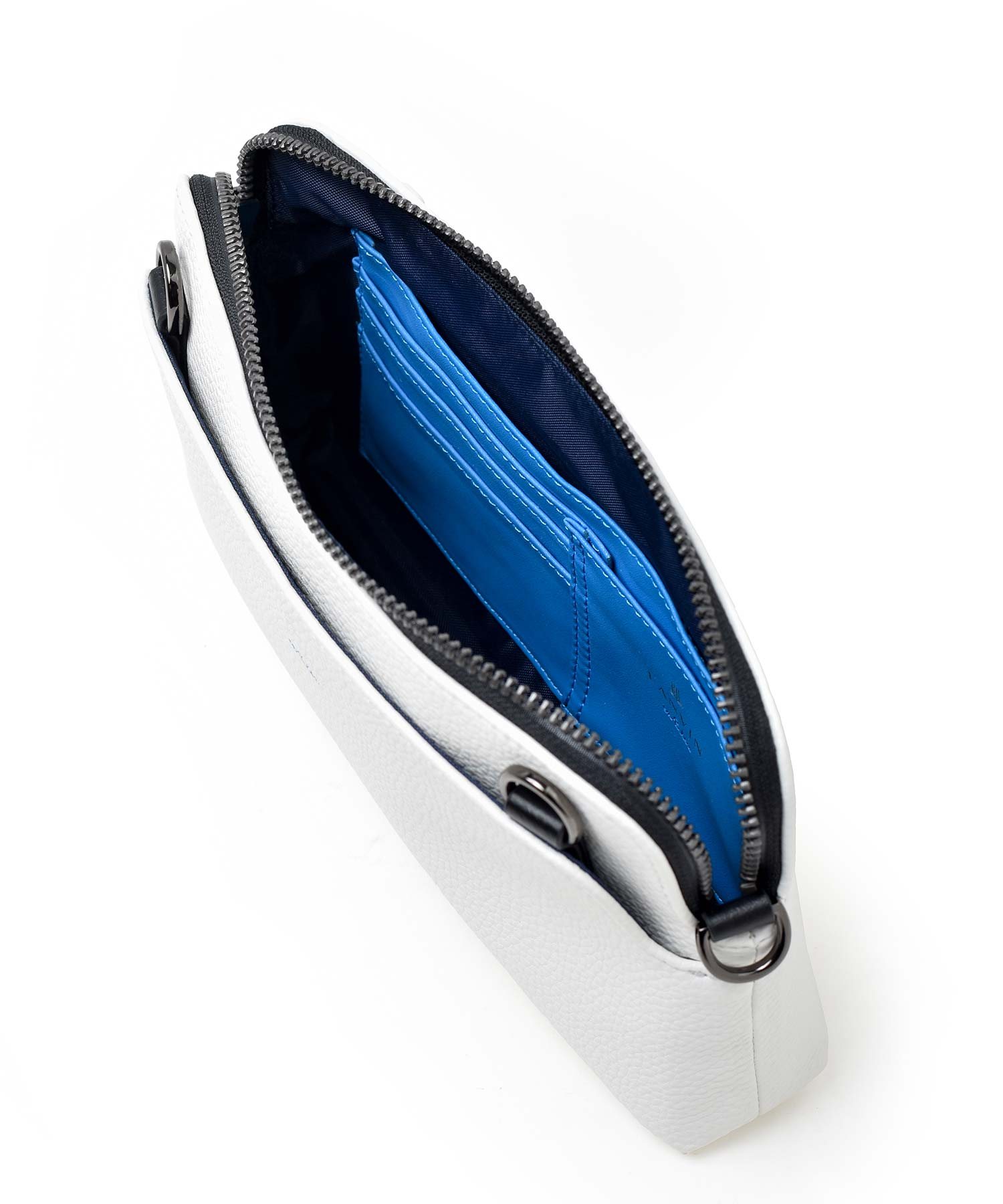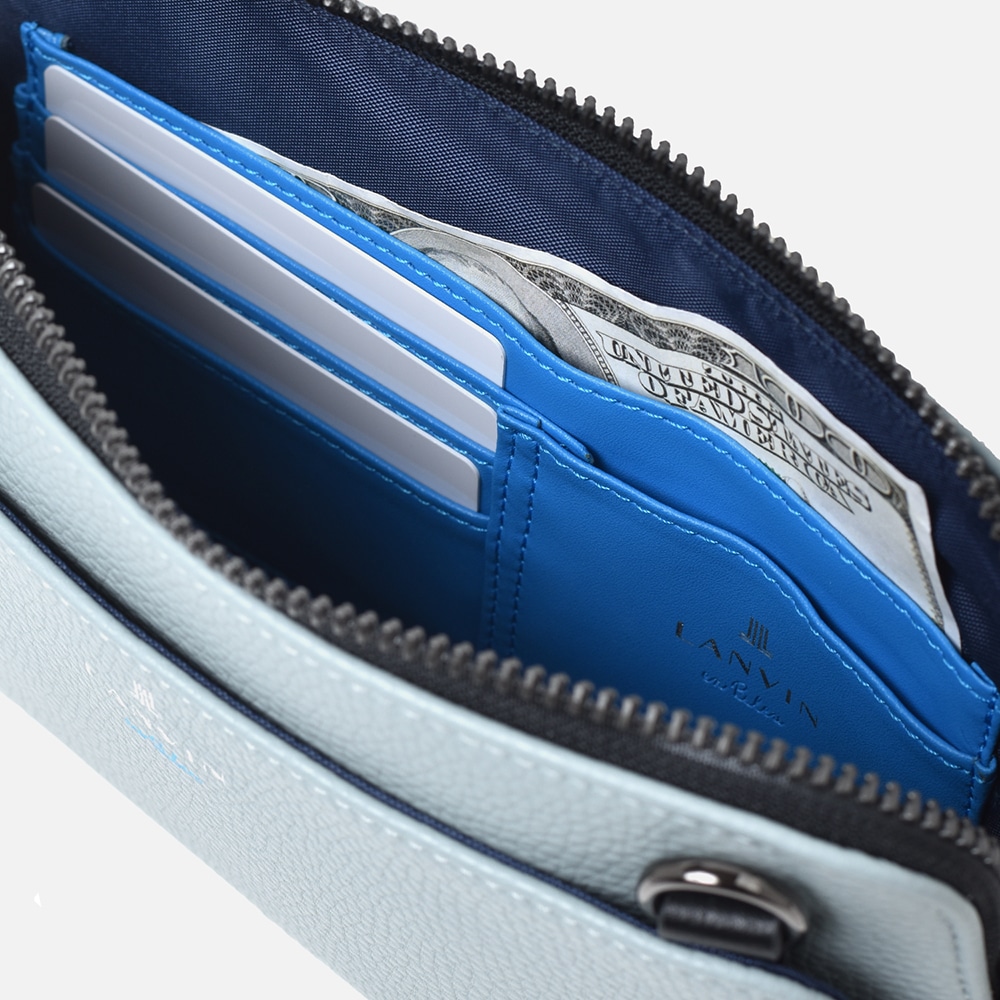 財布を持たないミニマリストのためのコンパクトなLANVIN en Bleuのショルダー兼用クラッチバッグ。 内装にカード段があり、カード収納が可能になっております。ブランドを象徴するJLマークを前面に表現しており、コンパクトながらモードなインパクトを演出しています。また、クラッチバッグ用持ち手とショルダーベルトを付け替えることによってクラッチバッグとショルダーバッグの2種類の鞄に使い分けることも可能です。