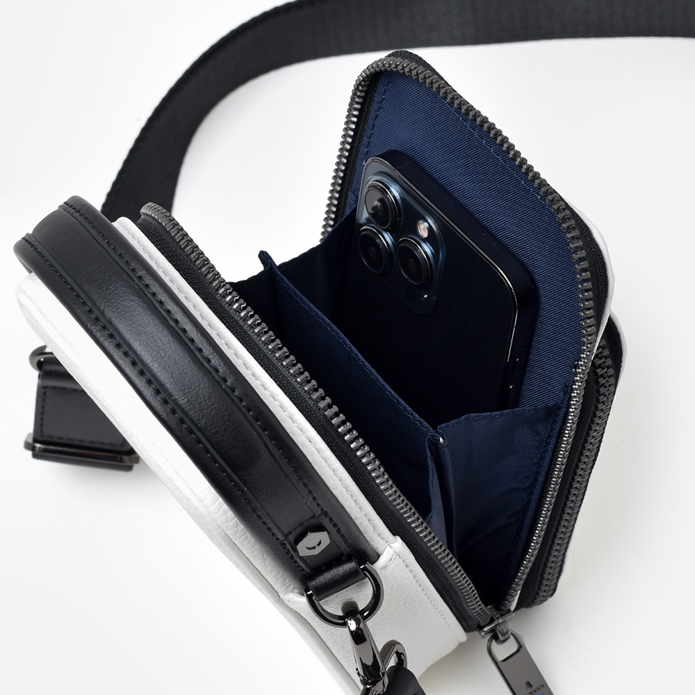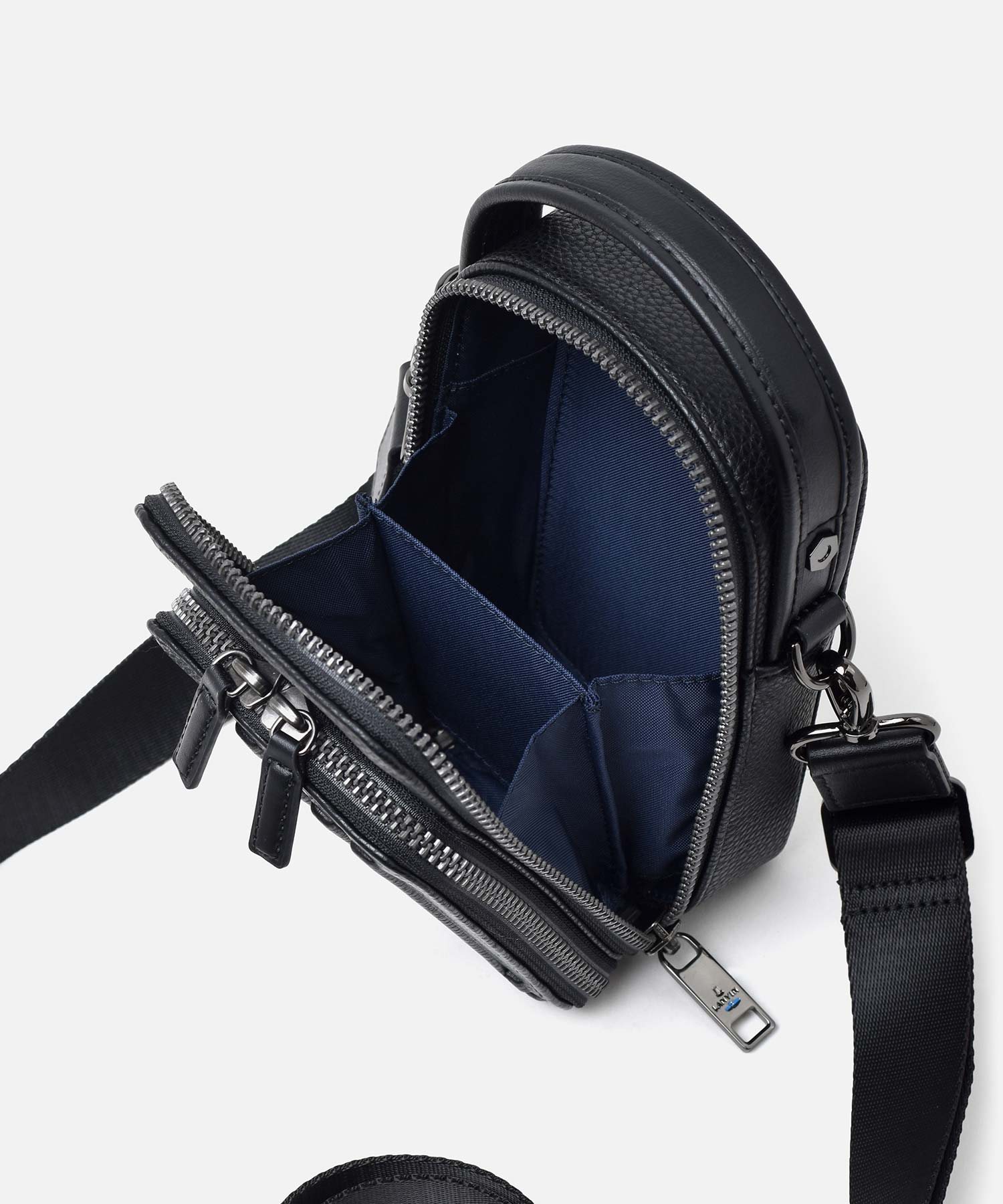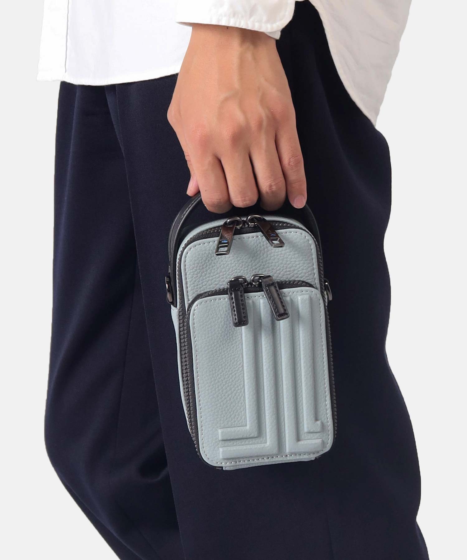 財布を持たないミニマリストのためのコンパクトなLANVIN en Bleuの2WAYスマホショルダーバッグ。内装にカード段があり、カード収納が可能になっております。ブランドを象徴するJLマークを前面に表現しており、コンパクトながらモードなインパクトを演出しています。また、ショルダーベルトを取り外すことによってハンドバッグとしてもお使いいただくことも可能です。