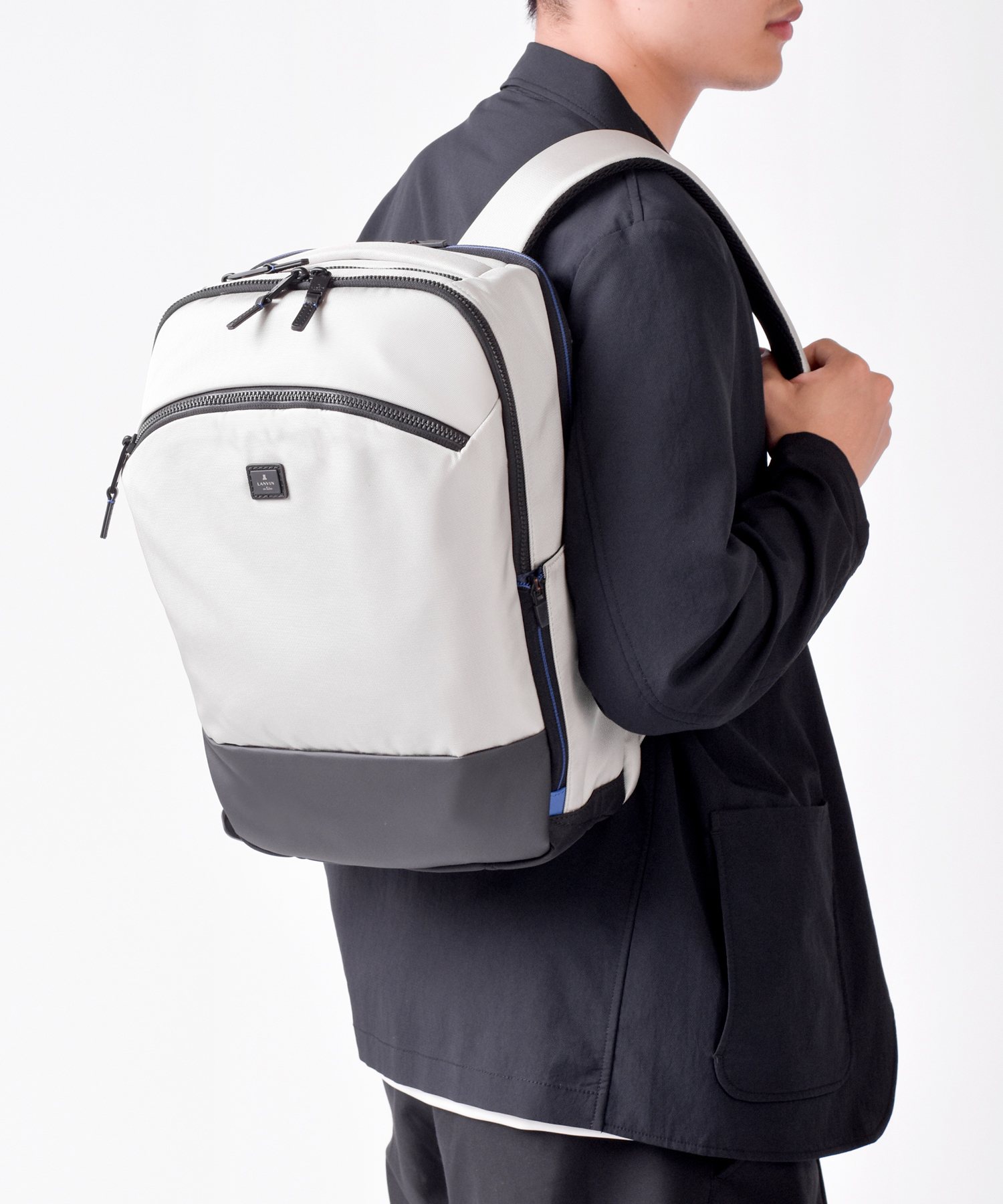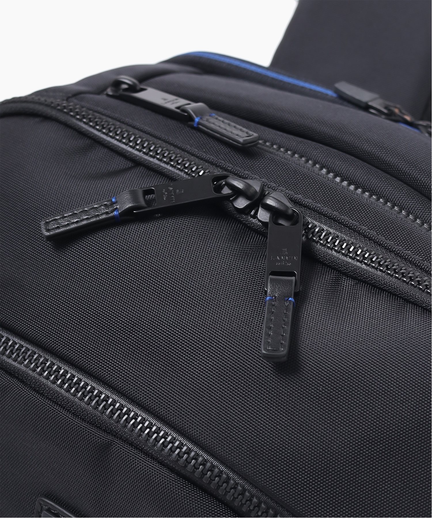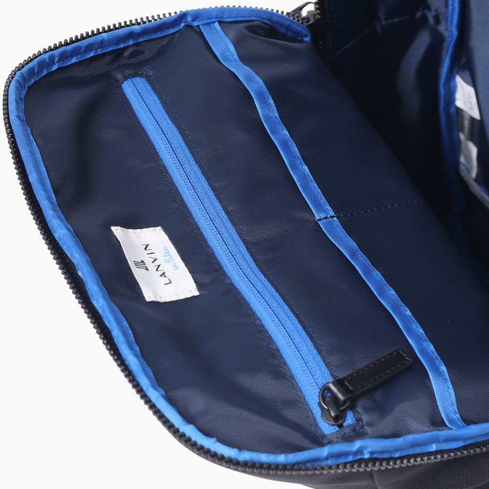 立体的なシルエットを作り出す裁断ながらもビジネスシーンでも使いやすいよう、収納ポケット類を豊富にすることで機能面にもこだわった、ランバンオンブルーのA4サイズのリュックです