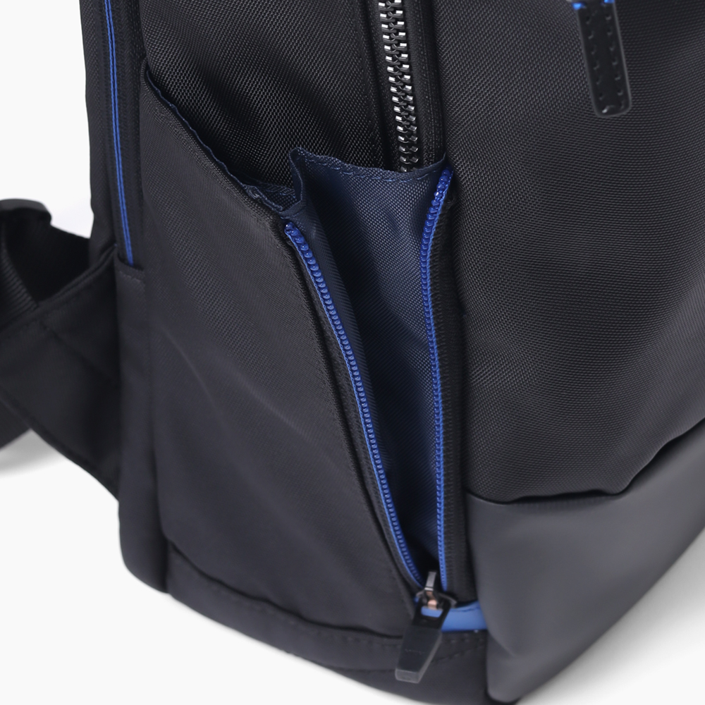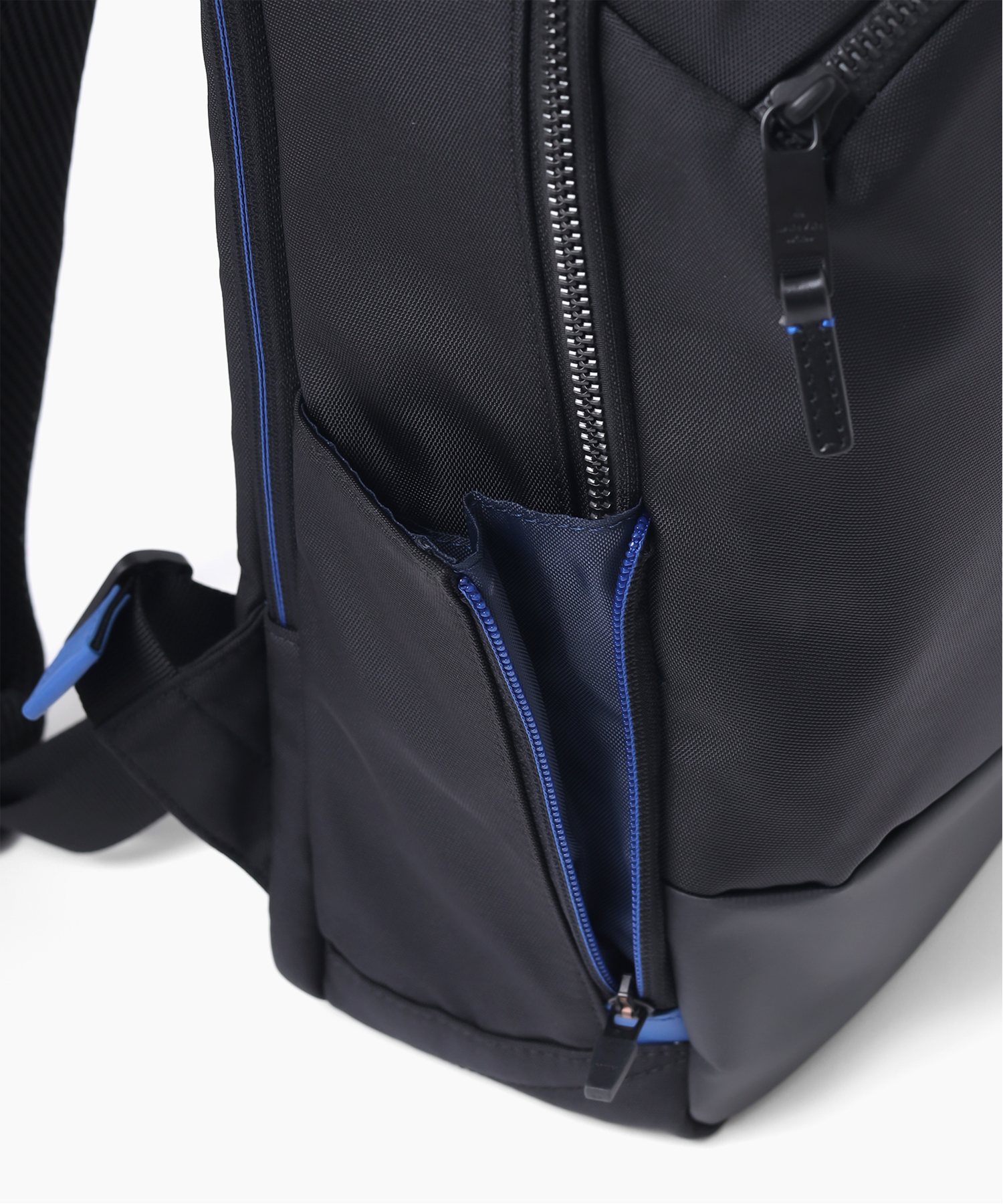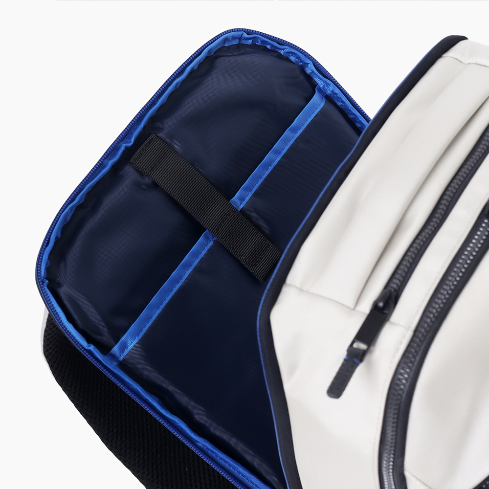 内装にはA4ファイルがすっぽり収まるサイズ感で、ボトルや手帳、長財布などビジネスシーンで持ち歩くアイテムも十分入る、収納性のあるリュックです。後室にはPCの収納に最適なクッションポケットが備わっております。ポケットサイズは幅25cmx高さ30cmで、13.3インチのPCを収納することができます。