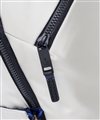 プリファファスナーを使用しています。蛍光ブルーにブラックカラーのプリントを施して、ラインを表現したランバンオンブルーらしいオリジナルファスナーです。
