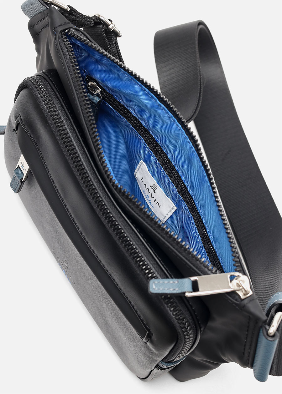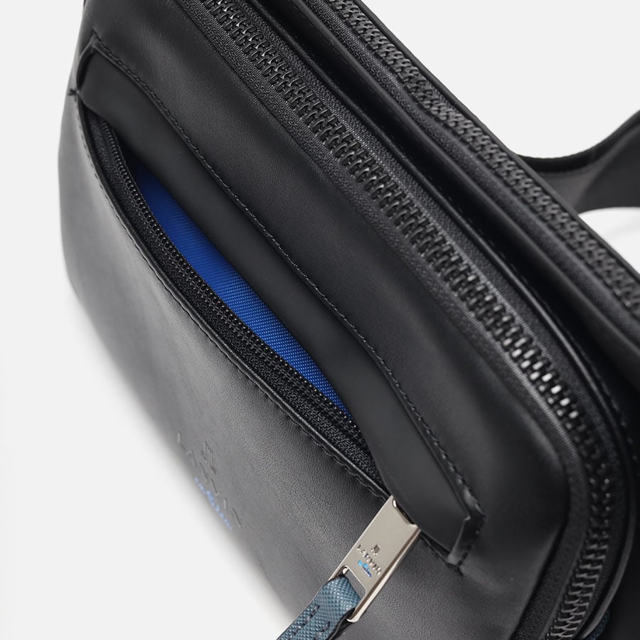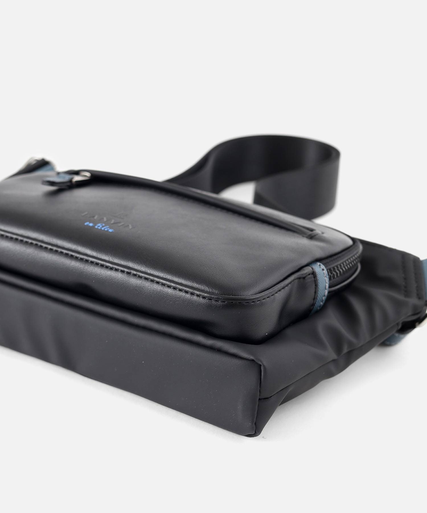 3素材MIXでブランドらしい遊び心を表現したランバンオンブルーのカジュアルミニショルダーバッグ。ブルーカラーのポイント使いが、シンプルながらもデザインにアクセントを加えています。コンパクトながらも貴重品や日用品が収まるお出かけにちょうど良いミニショルダーバッグです。
