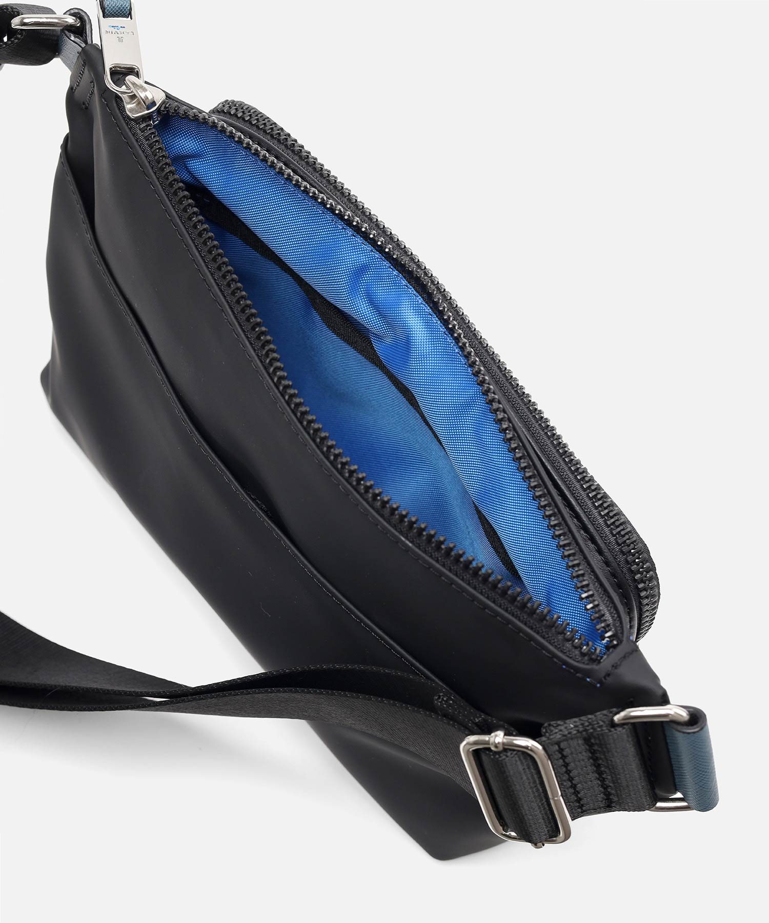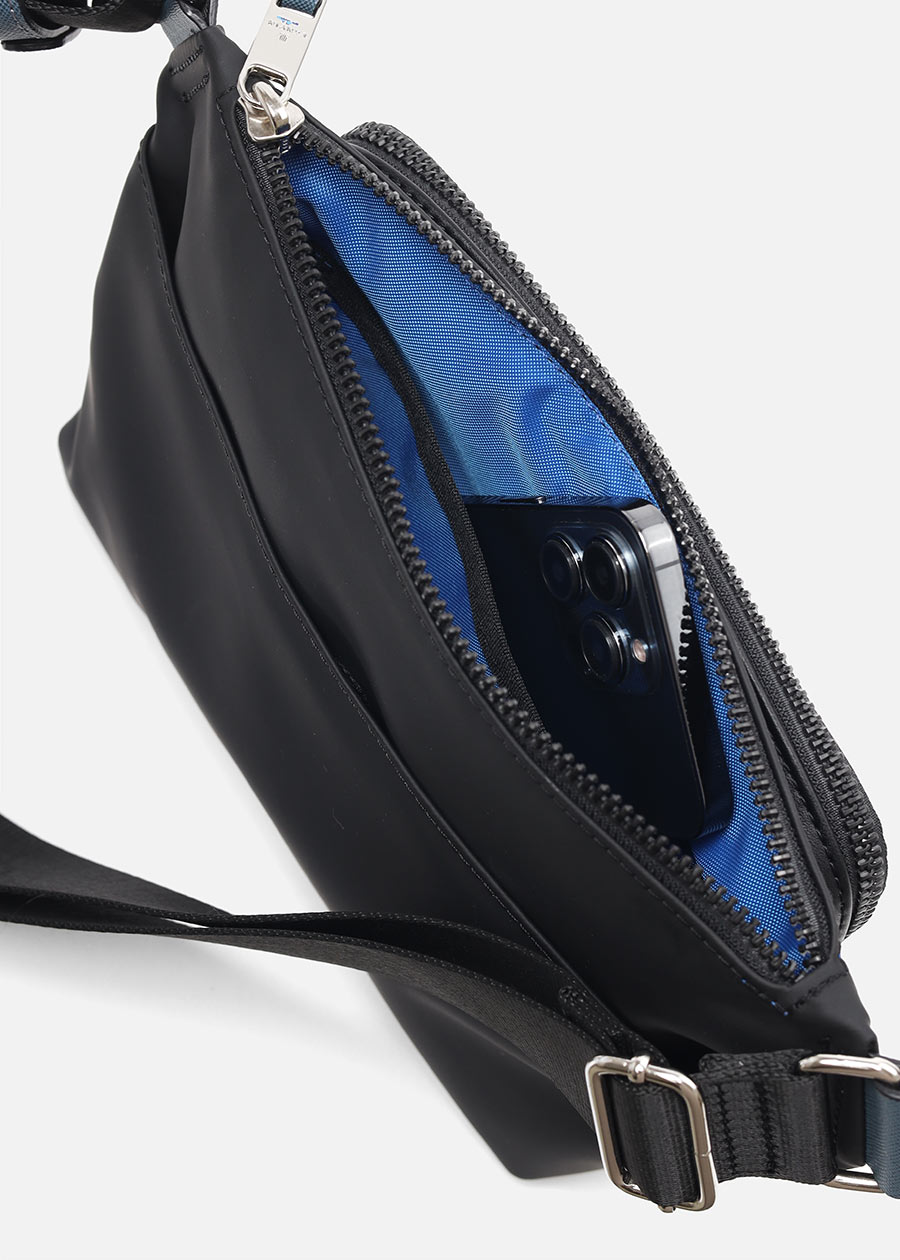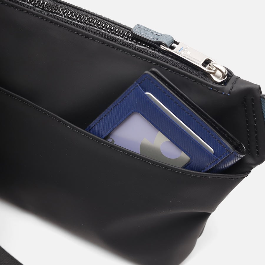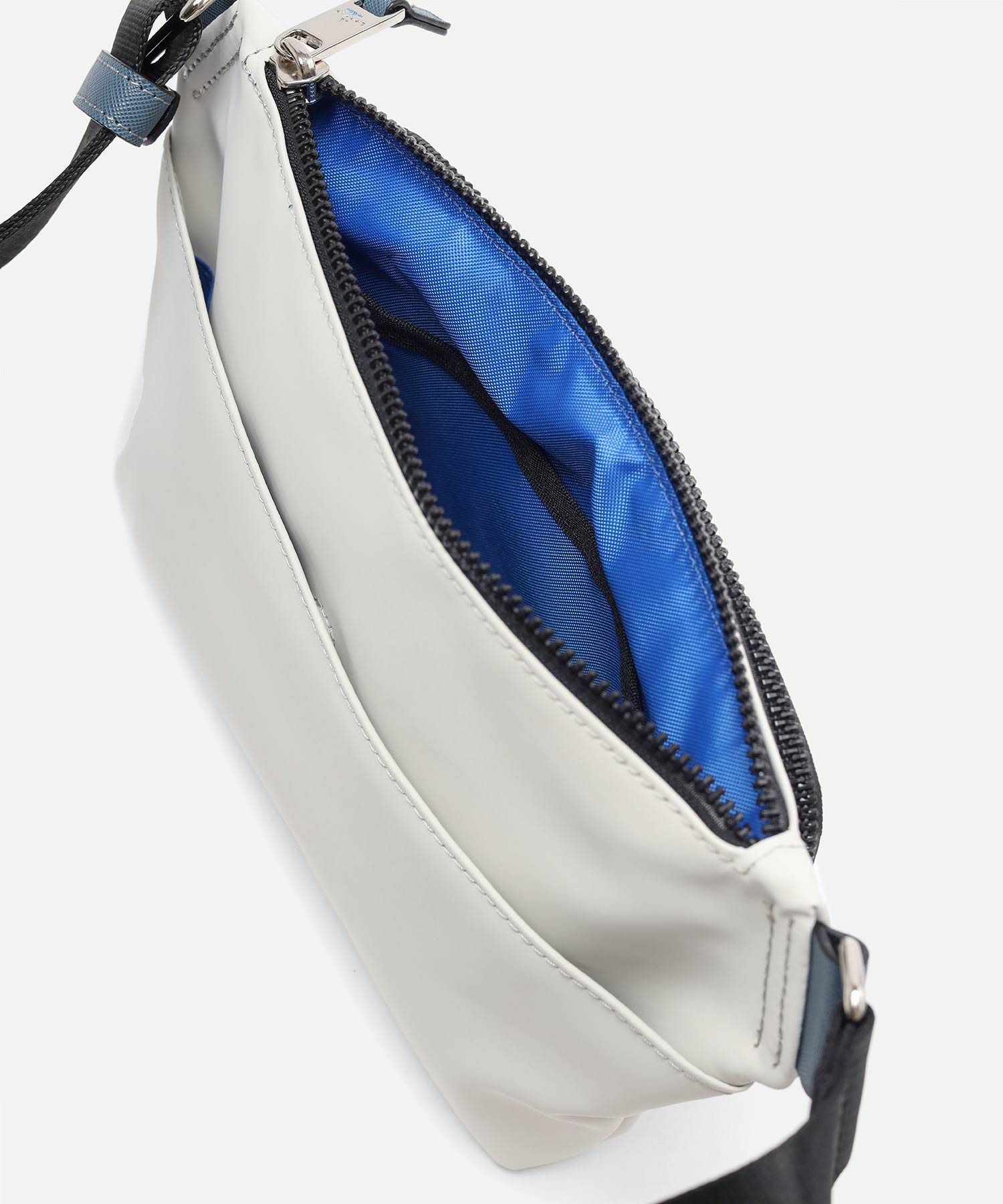 3素材MIXでブランドらしい遊び心を表現したランバンオンブルーのカジュアルミニショルダーバッグ。ブルーカラーのポイント使いが、シンプルながらもデザインにアクセントを加えています。コンパクトながらも貴重品や日用品が収まるお出かけにちょうど良いミニショルダーバッグです。