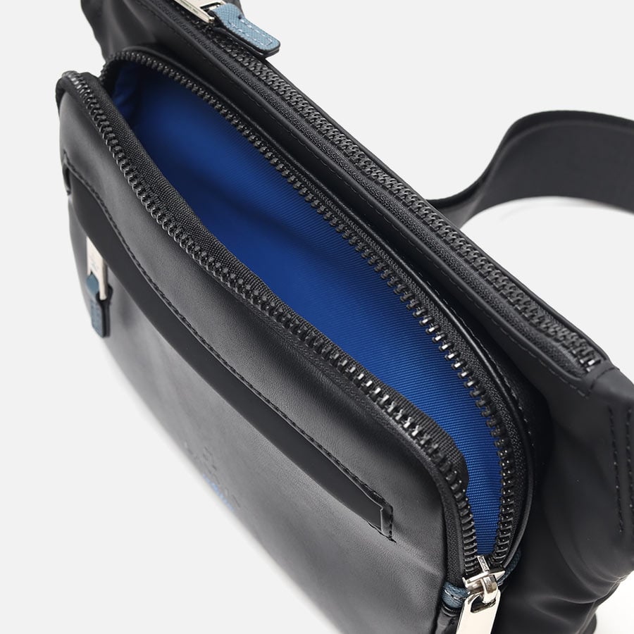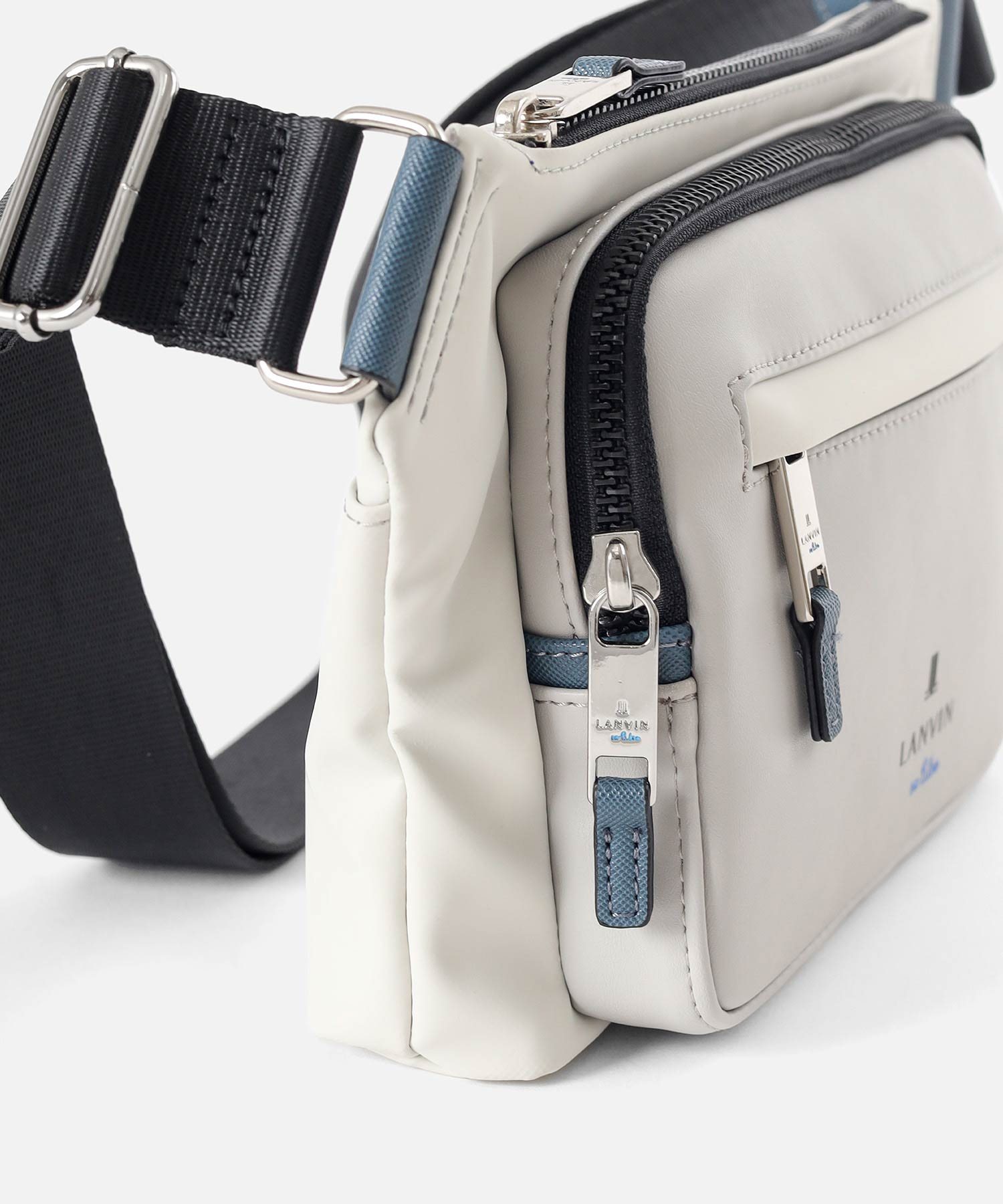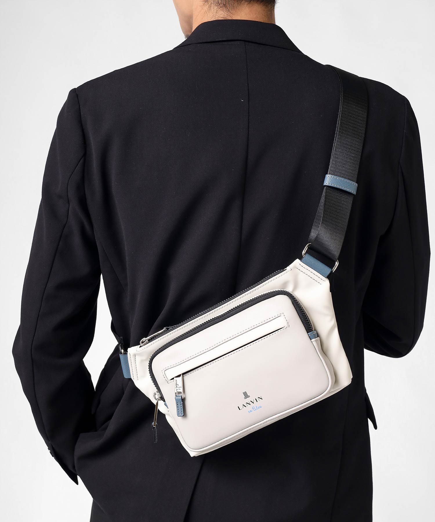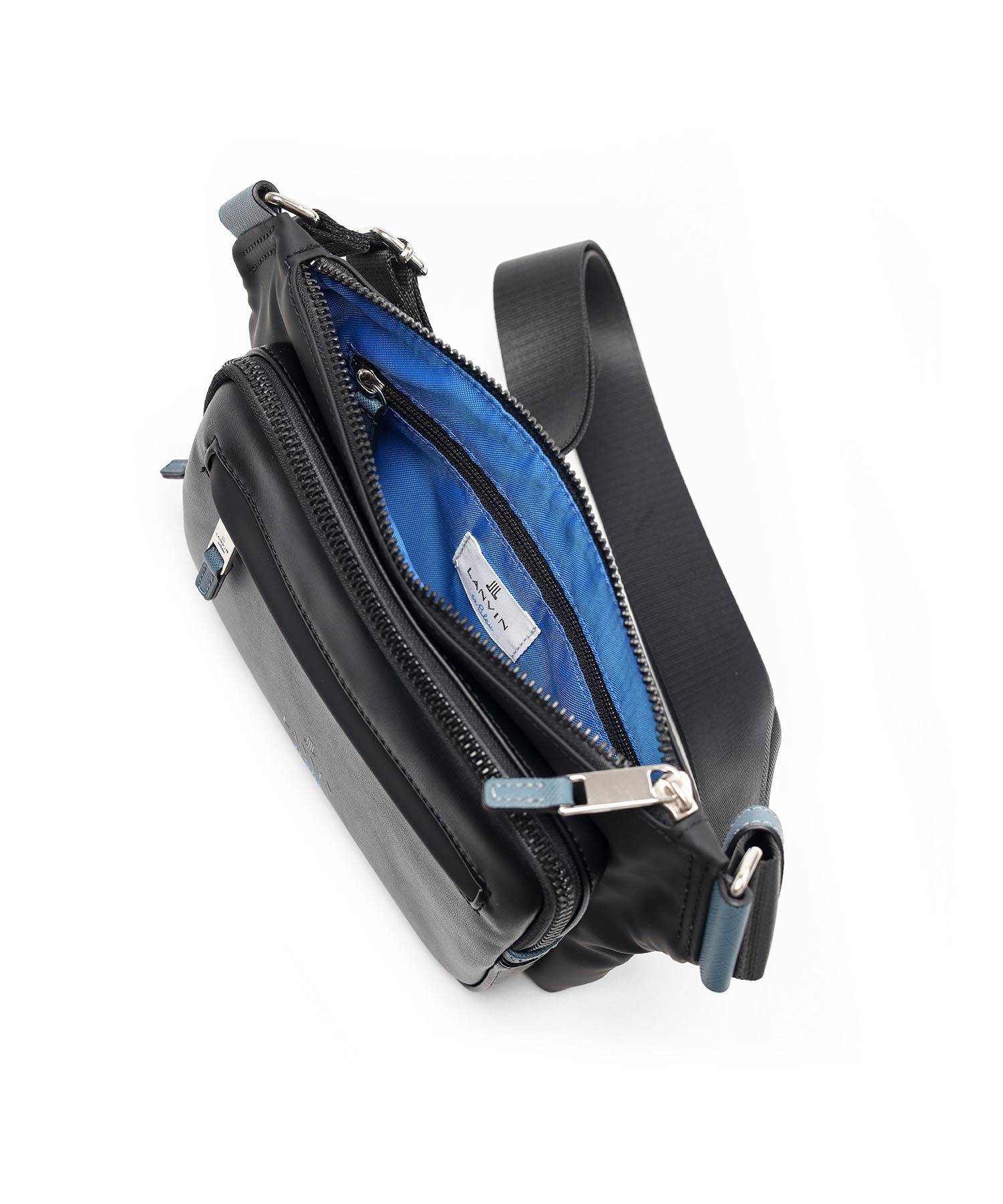 3素材MIXでブランドらしい遊び心を表現したランバンオンブルーのカジュアルミニショルダーバッグ。ブルーカラーのポイント使いが、シンプルながらもデザインにアクセントを加えています。上品さもある素材感で、カジュアル・ジャケパンどちらのスタイルにもお使いいただけます。コンパクトながらも貴重品や日用品が収まるお出かけにちょうど良いミニショルダーバッグです。